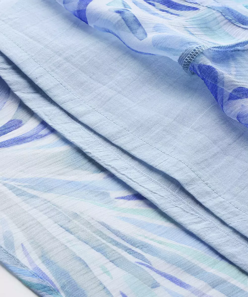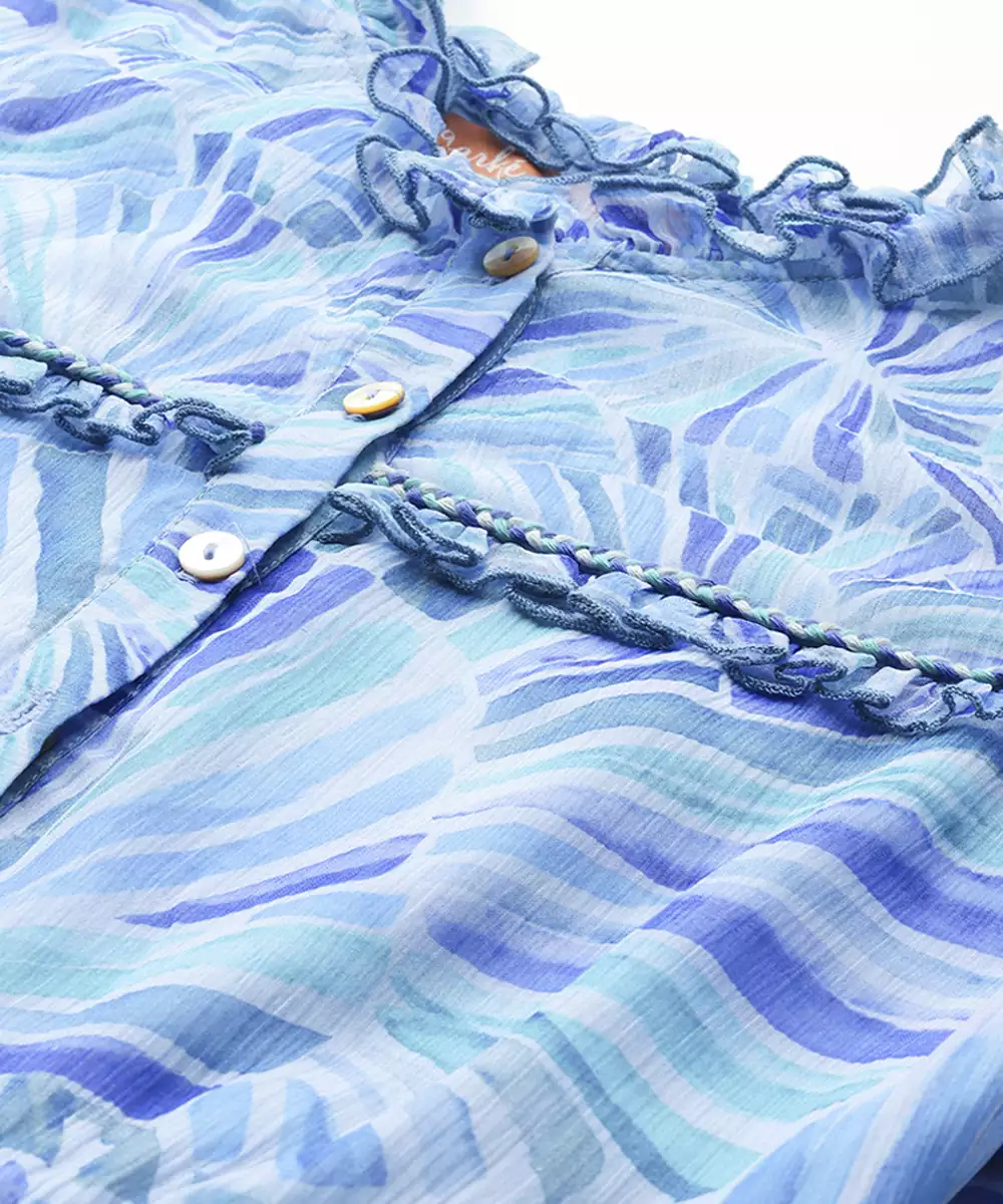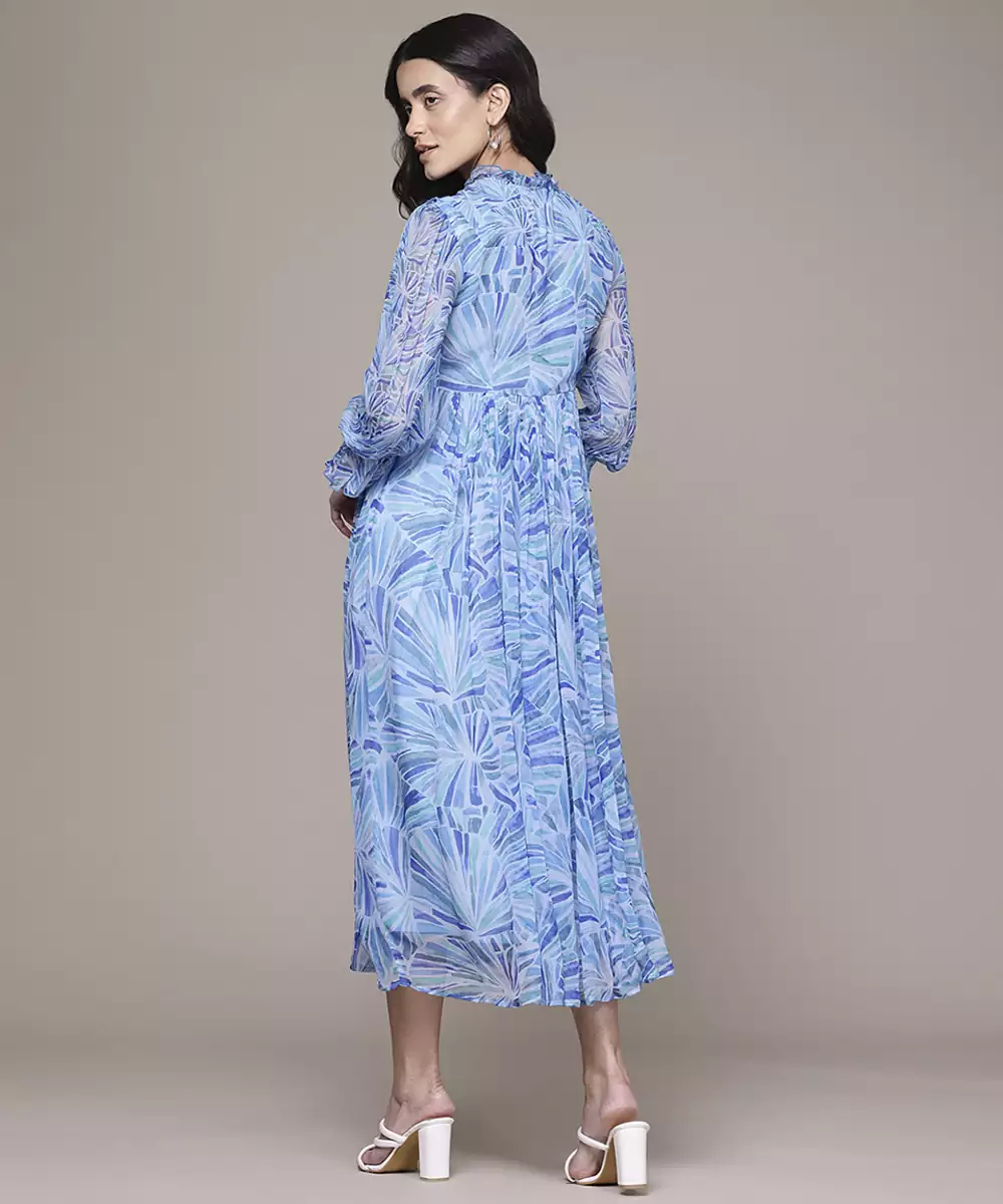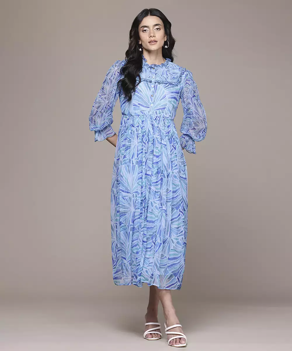 Blue Chiffon Dress With Printed Pattern Design