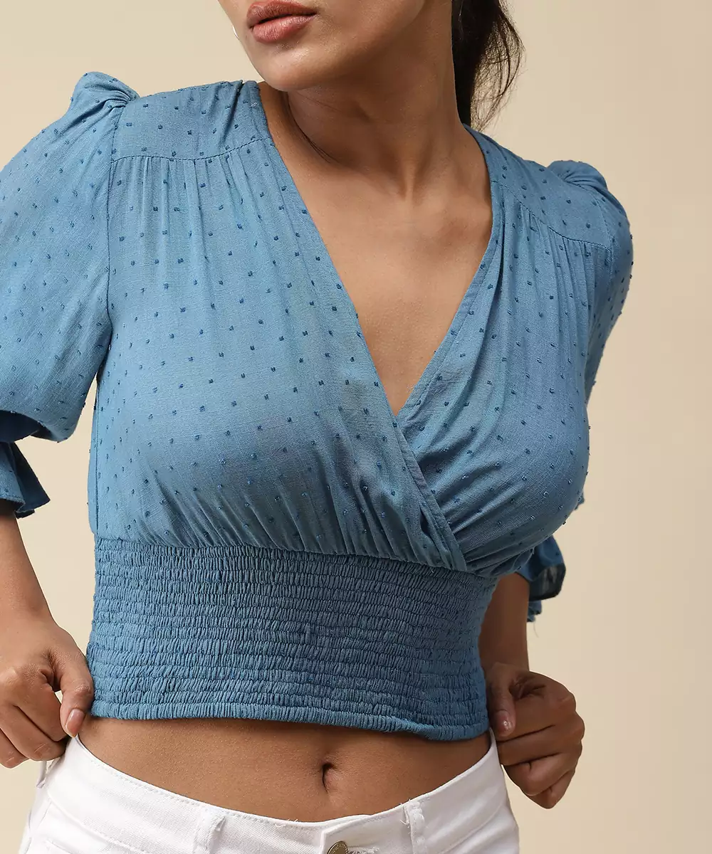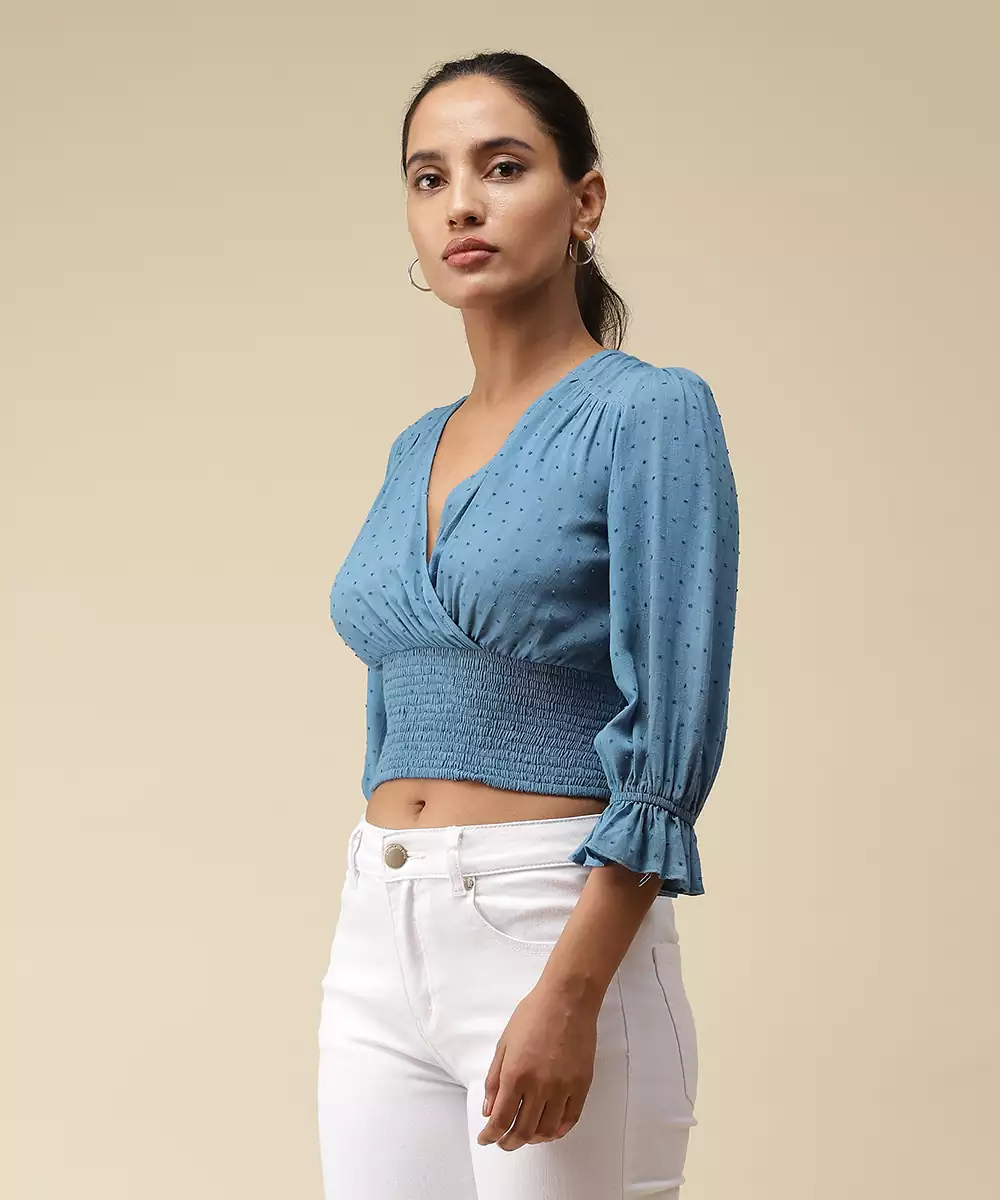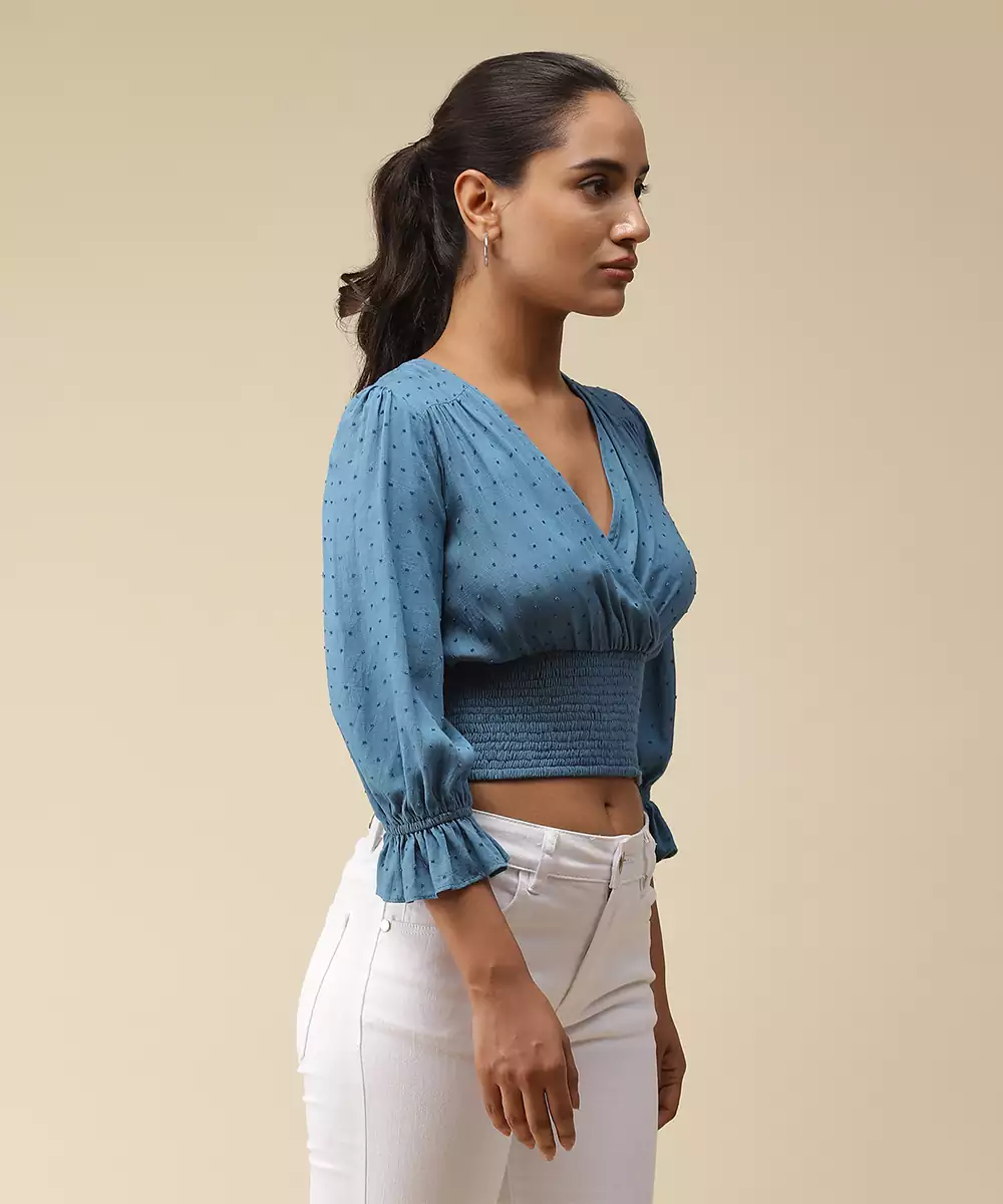 Peach Blouse With Peach And Navy Blue Ombre Saree