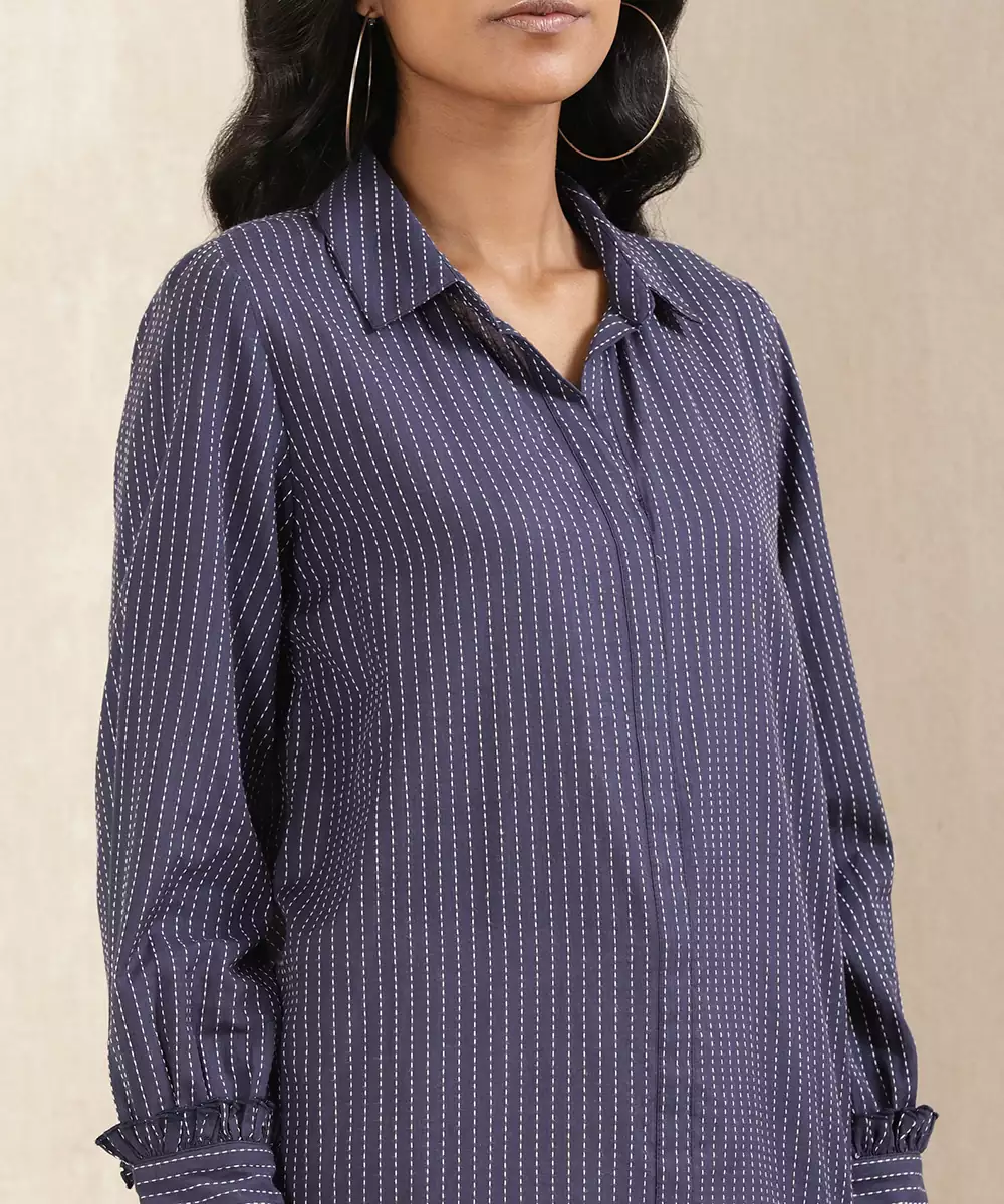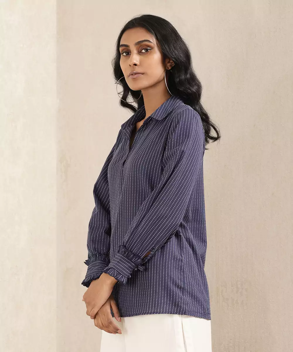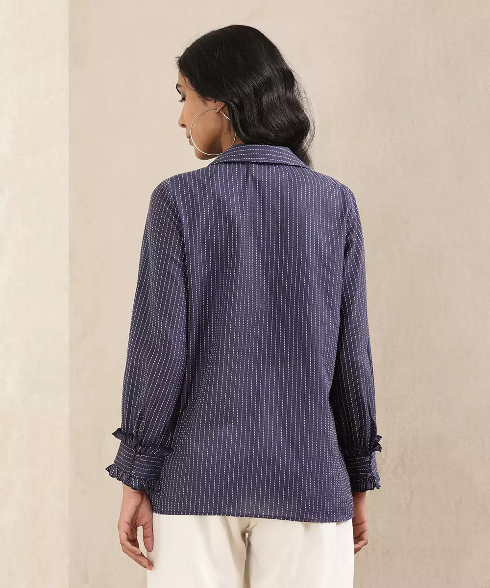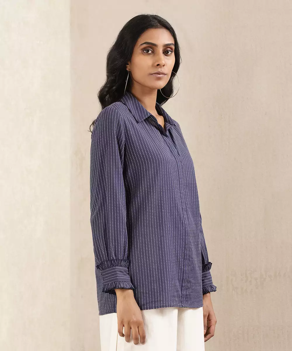 Cream Pure Linen Embroidered Thread Deer Shirt