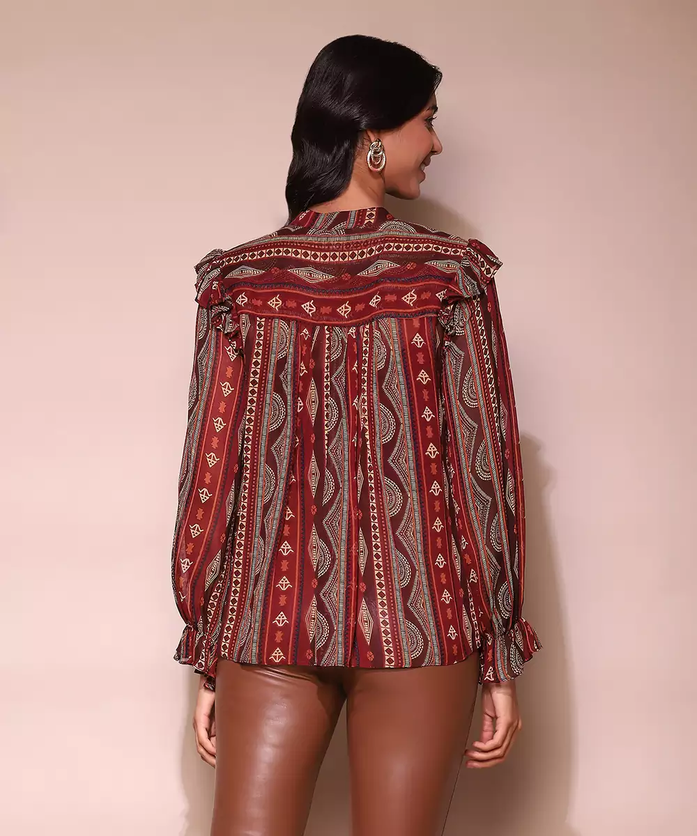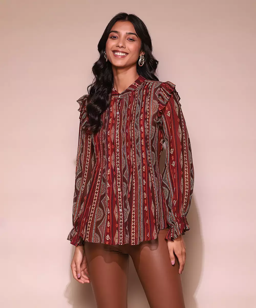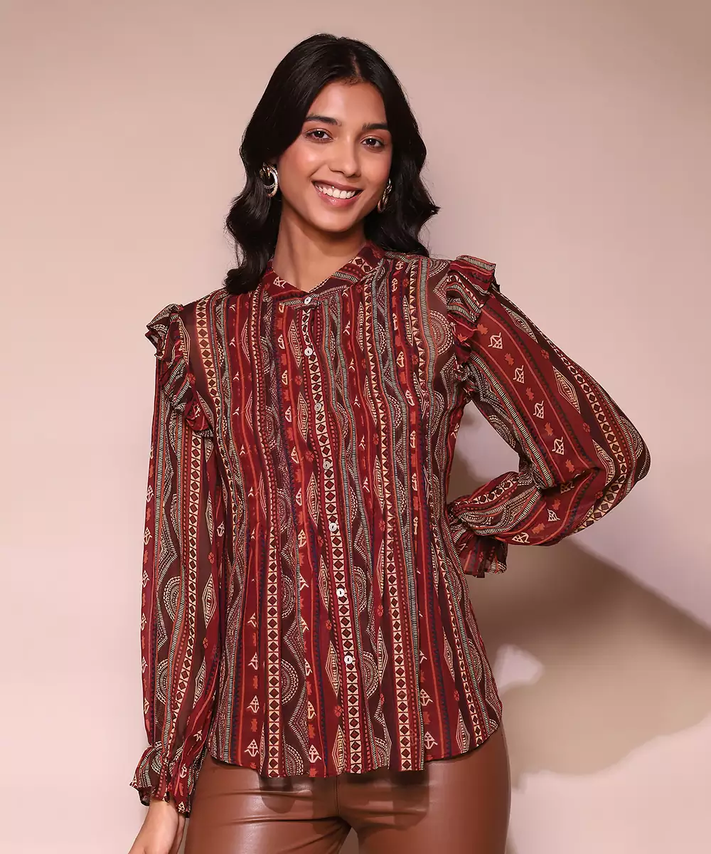 Featuring Brown Printed Shirt Blouse With Inner.