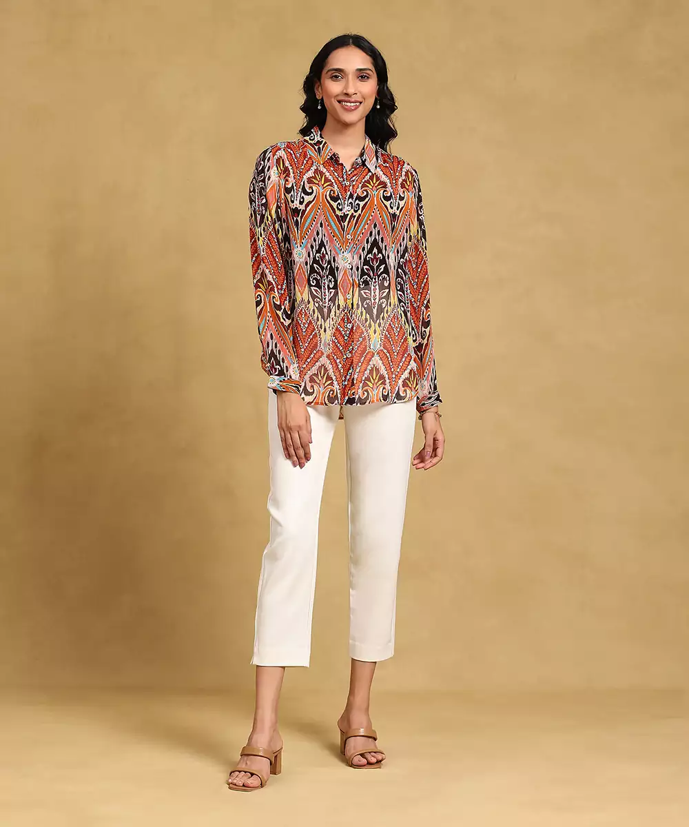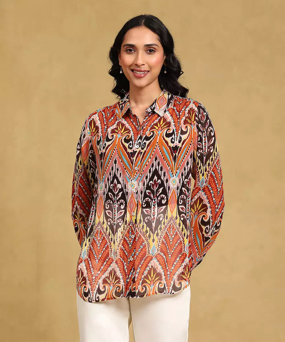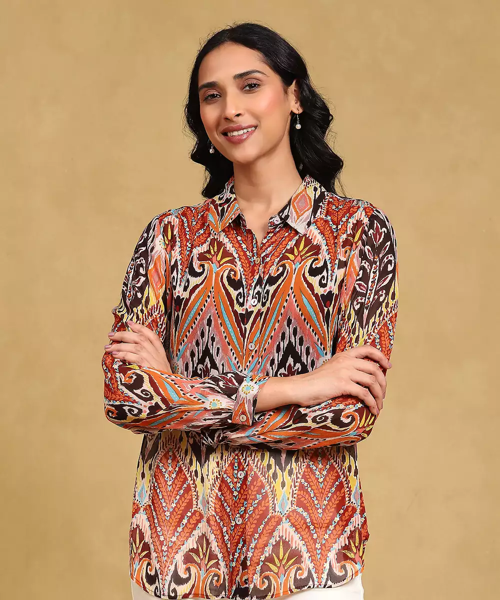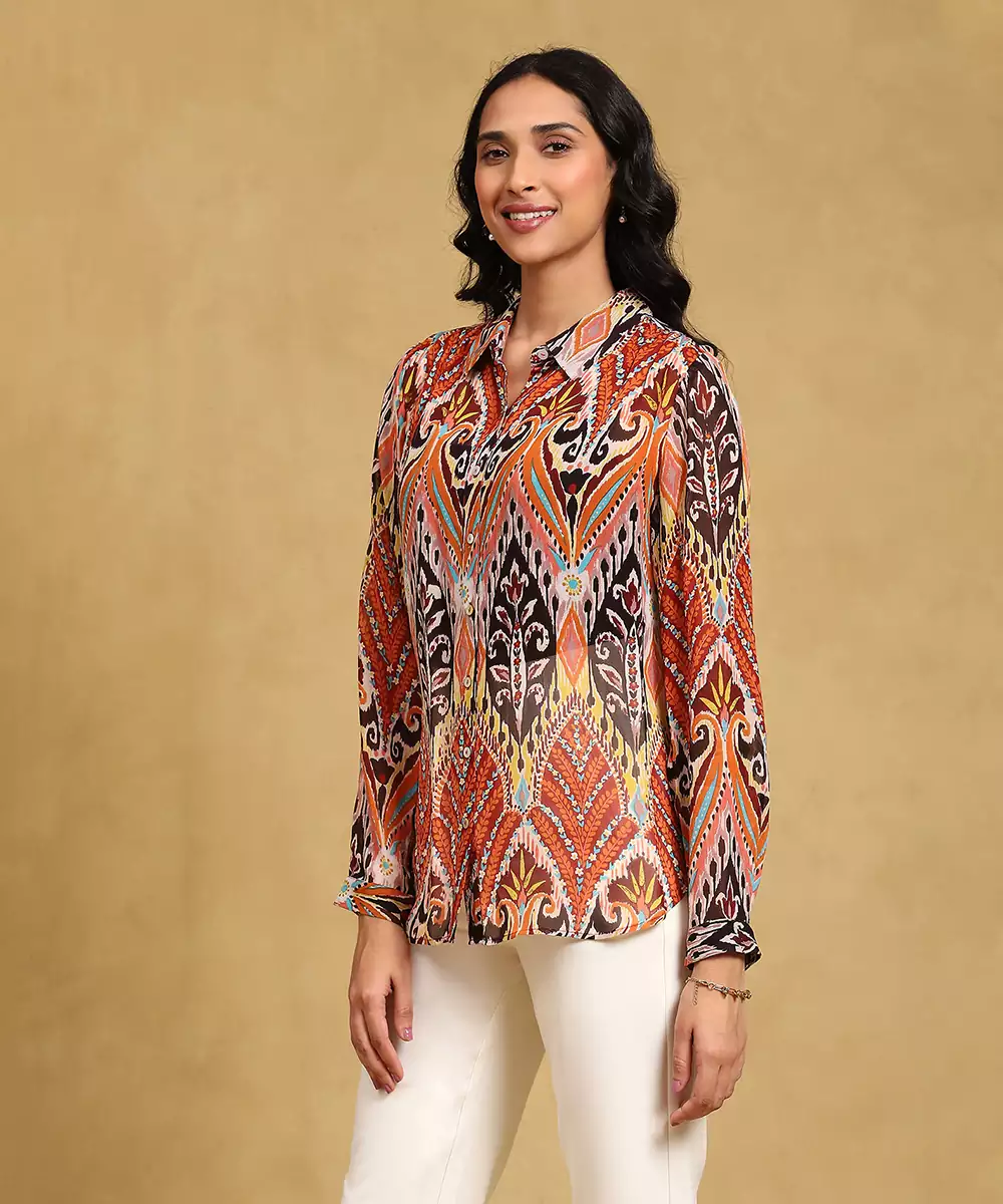 Featuring Brown Printed Shirt . Colour : Brown Fabric : Georgette Components : 1 (Shirt) Work : Printed