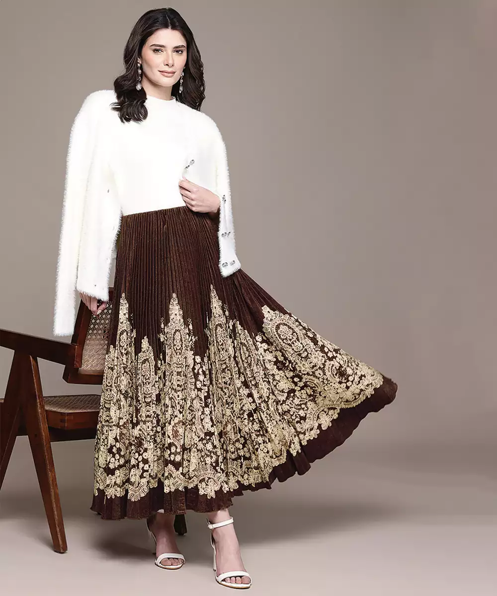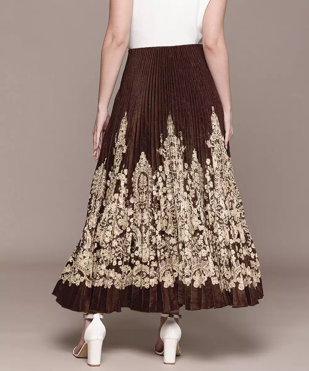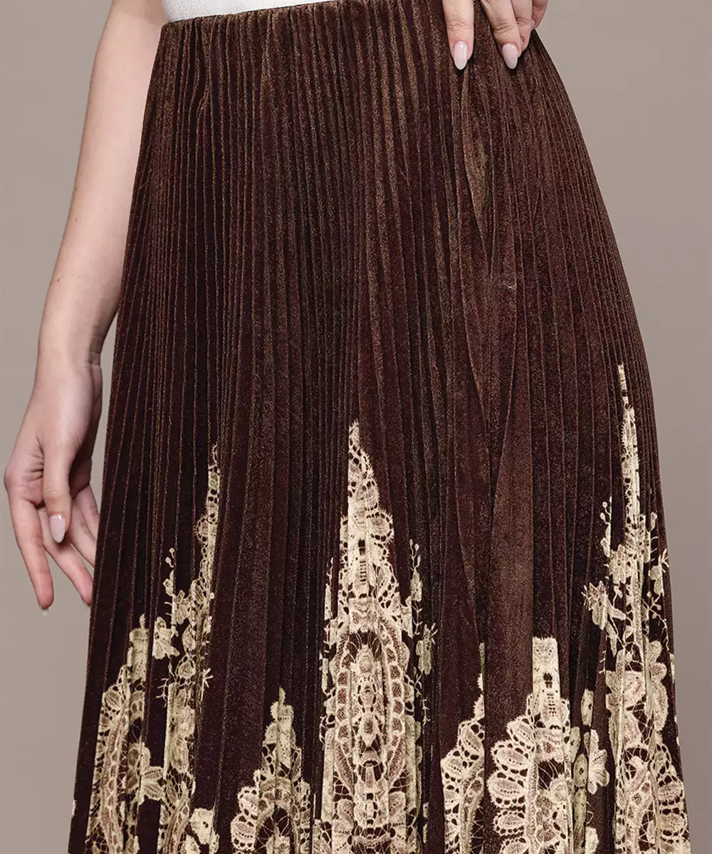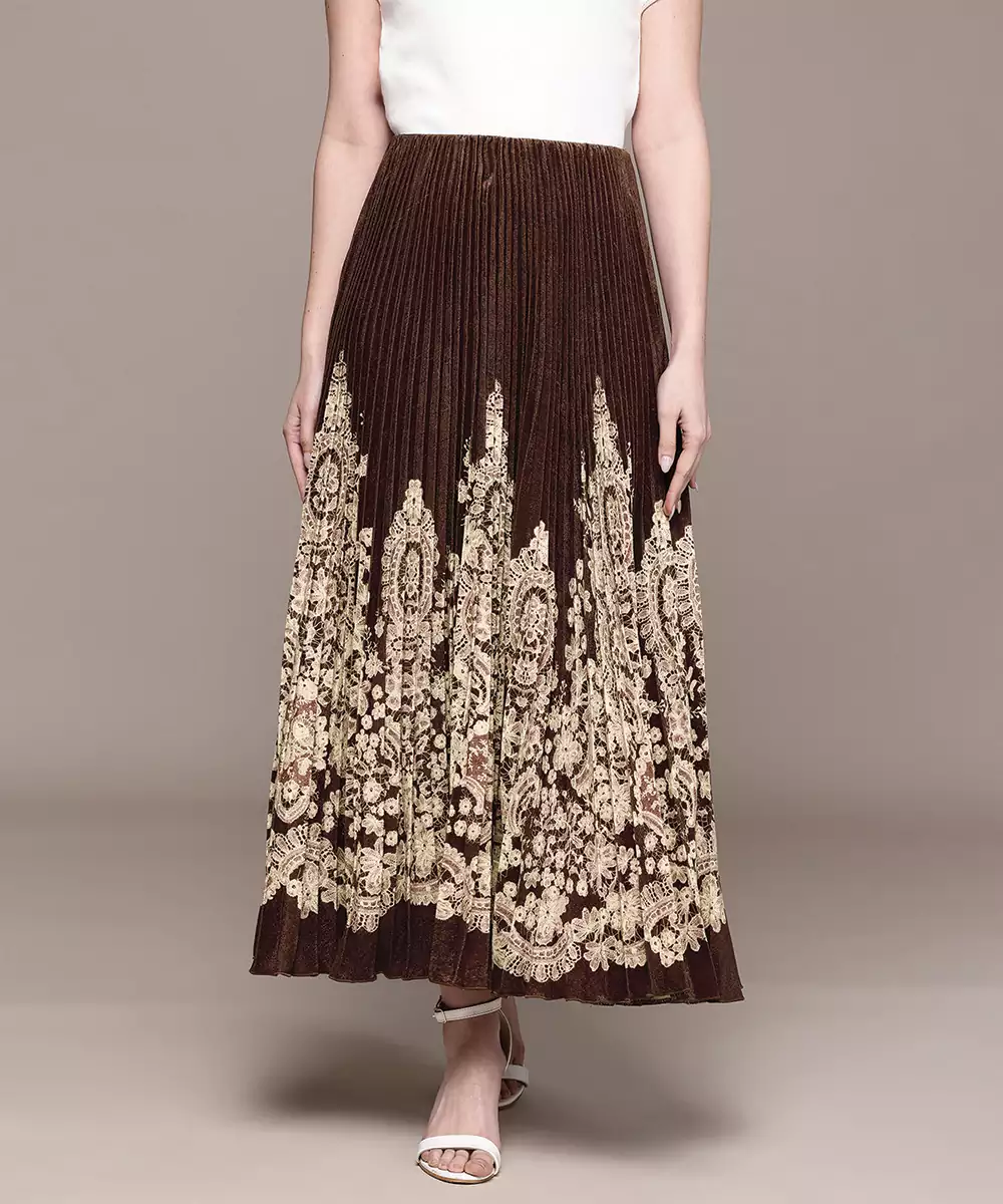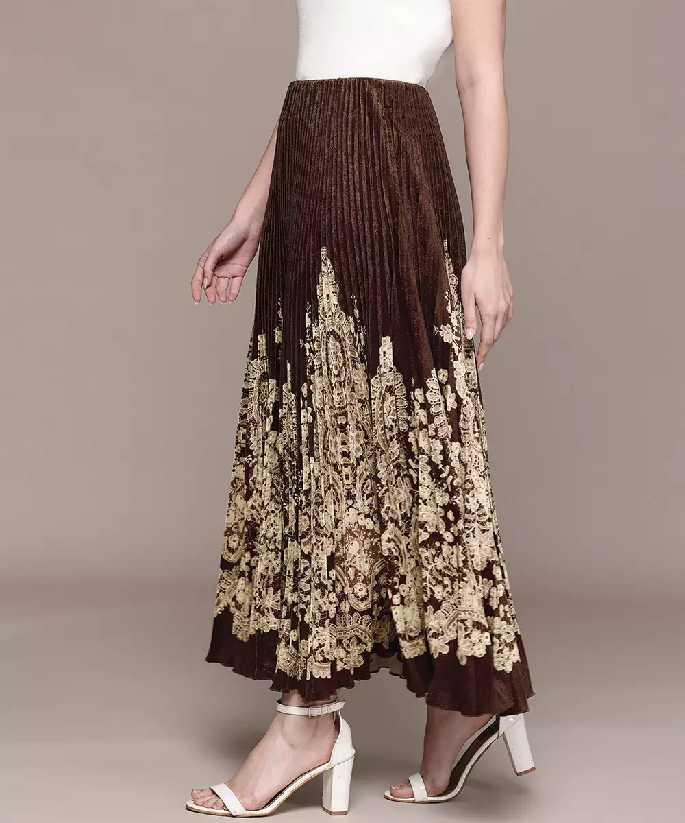 This Brown Printed Viscose Skirt Features Elegant Patterns On A Smooth, Lightweight Base. The Fluid Silhouette Ensures Comfort And Ease Of Movement, Making It Ideal For Casual Outings Or Daywear. A Versatile Piece That Pairs Effortlessly With Tops Or Kurtas, Adding A Warm And Stylish Touch To Your Everyday Wardrobe.