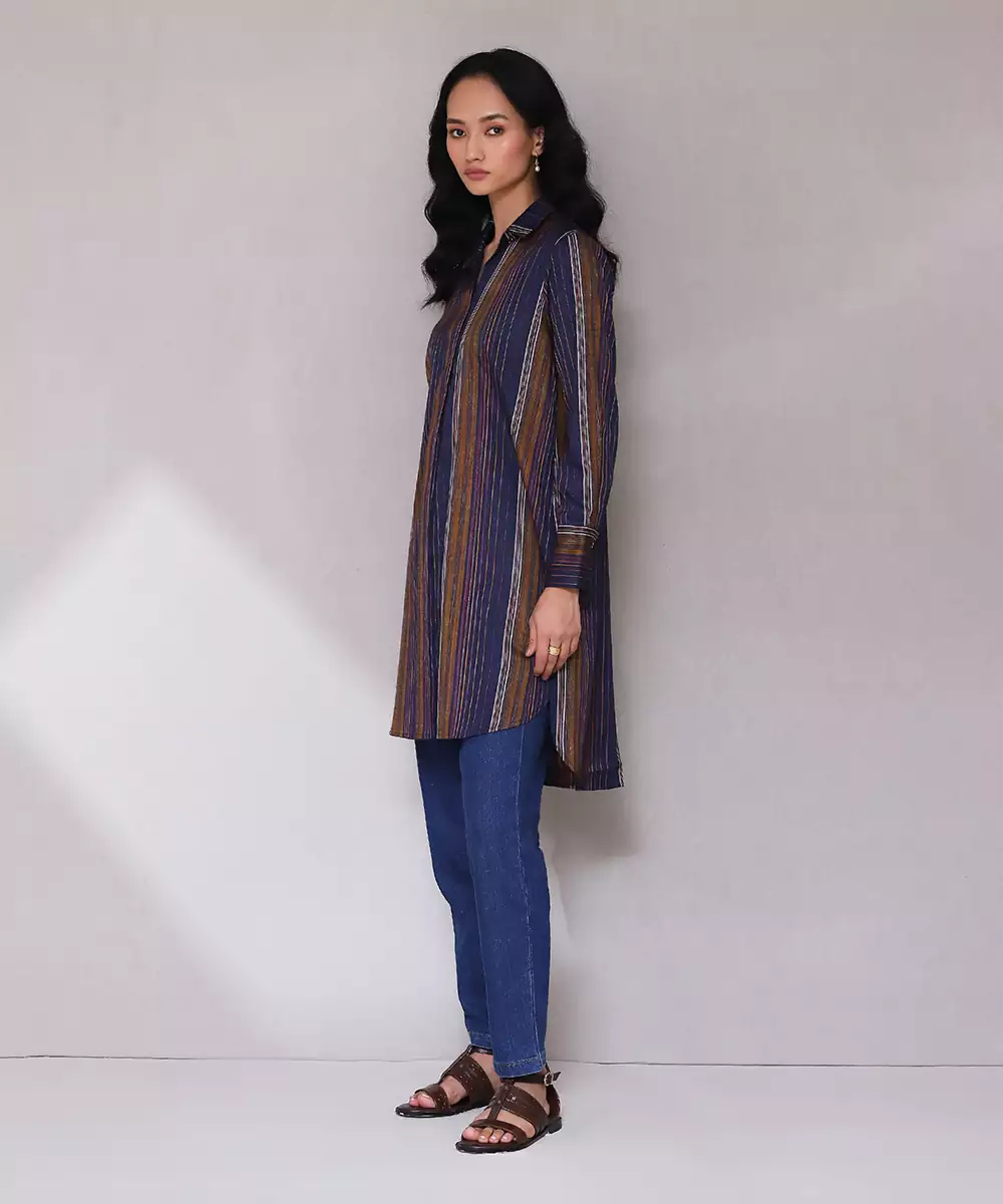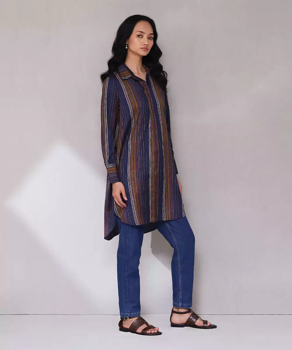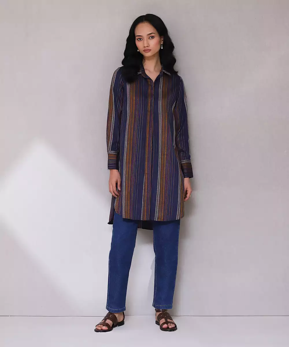 Cream Pure Linen Embroidered Thread Deer Shirt