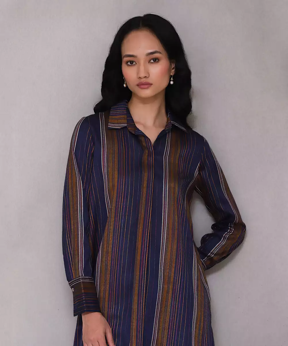 Peach Blouse With Peach And Navy Blue Ombre Saree