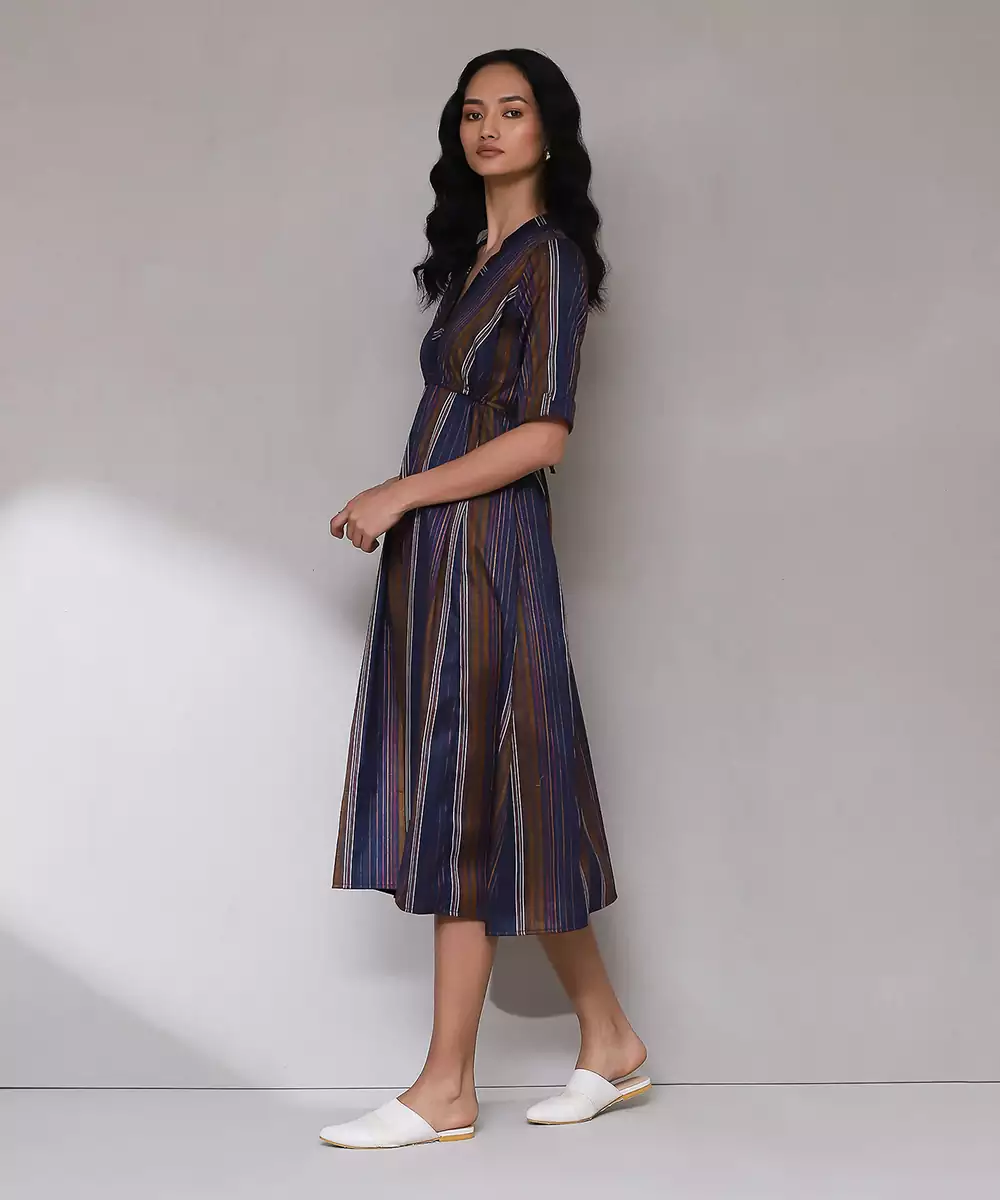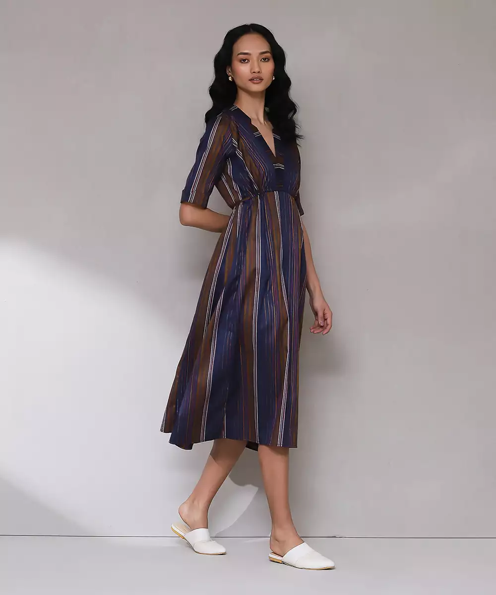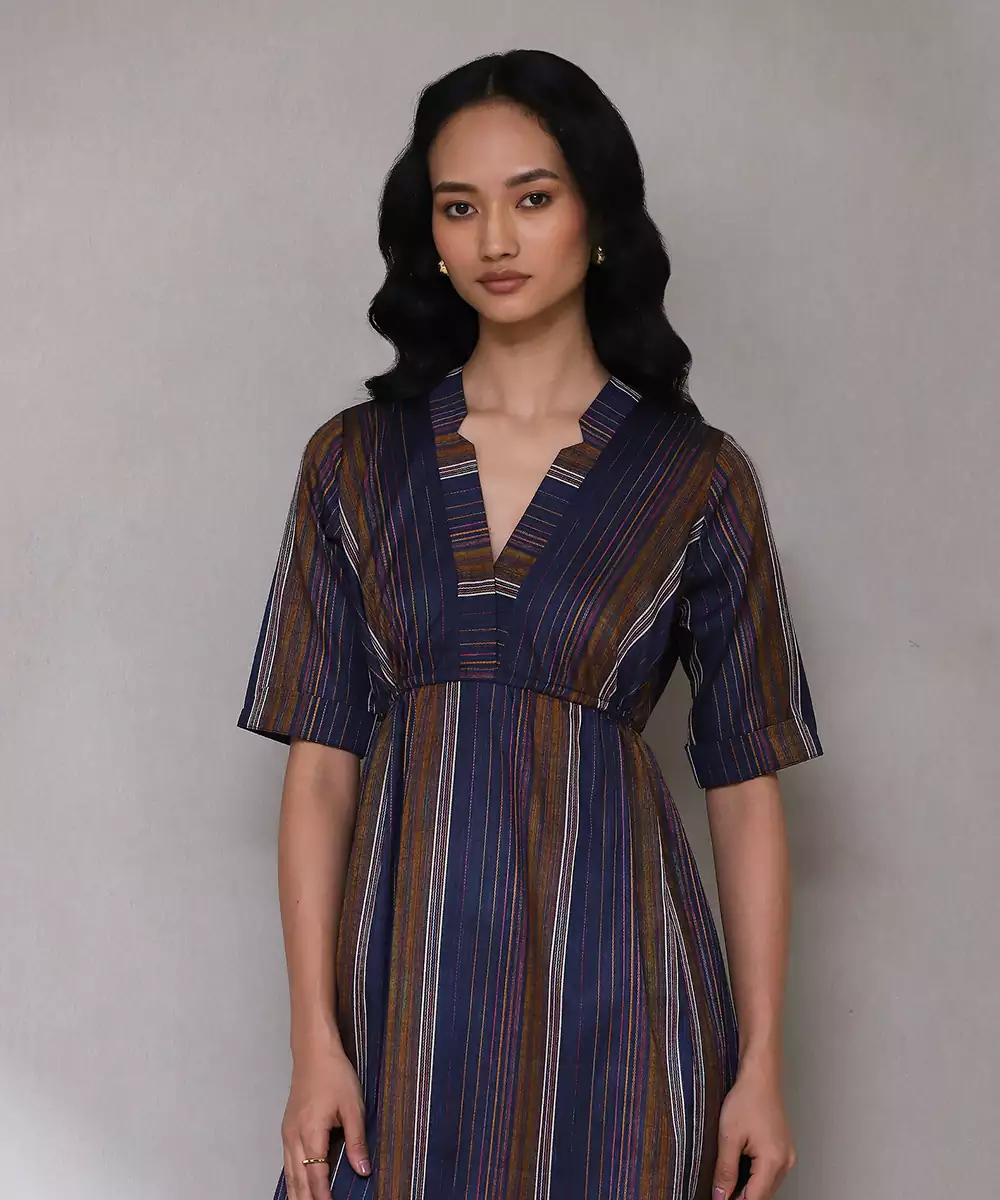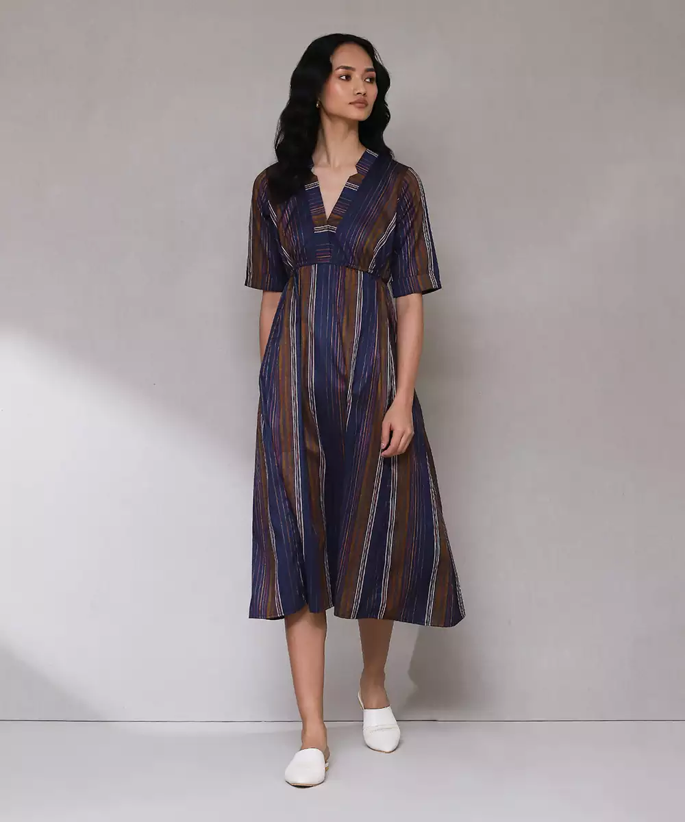 Featuring Dark Blue Yarn Dyed Long Dress.