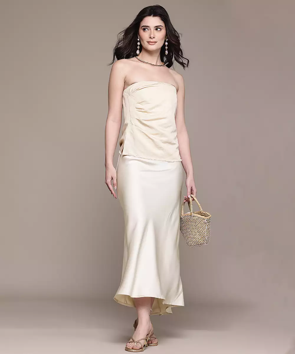 This Ecru White Viscose Skirt Showcases A Soft, Neutral Tone With A Clean And Elegant Design. The Lightweight Fabric Ensures Comfort, While The Versatile Silhouette Makes It Easy To Style For Various Occasions. A Timeless Wardrobe Essential That Adds A Refined And Graceful Touch To Your Look.