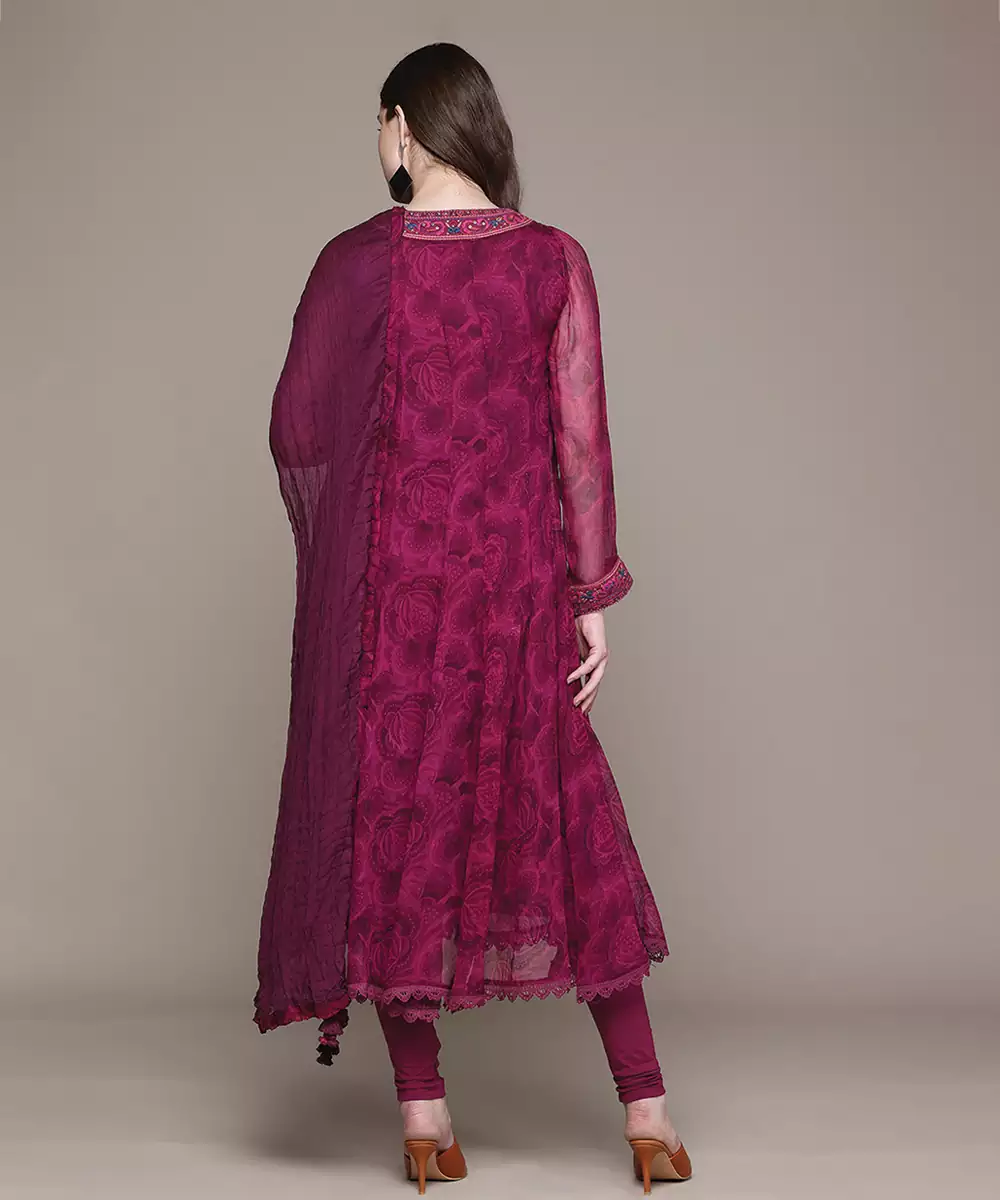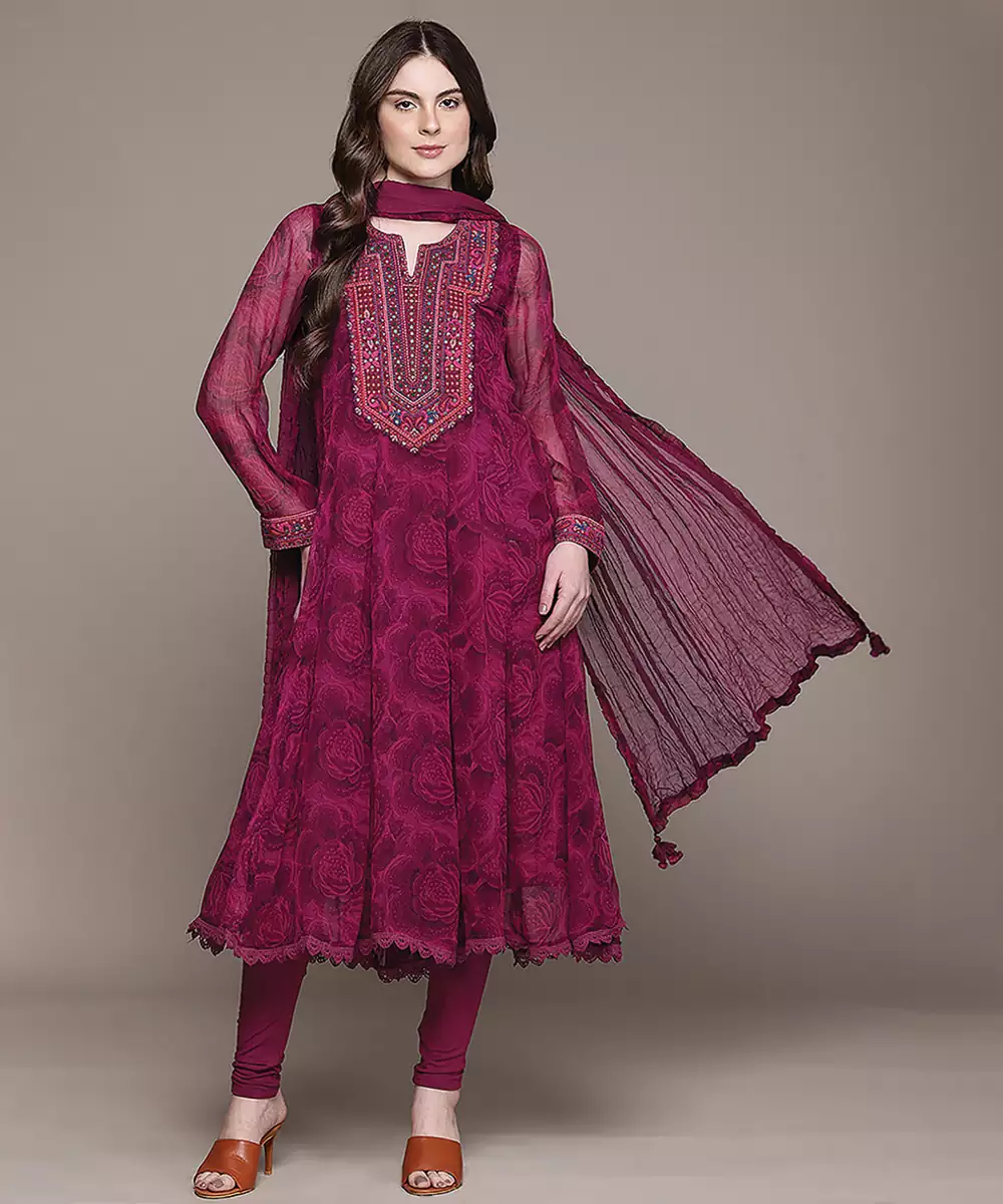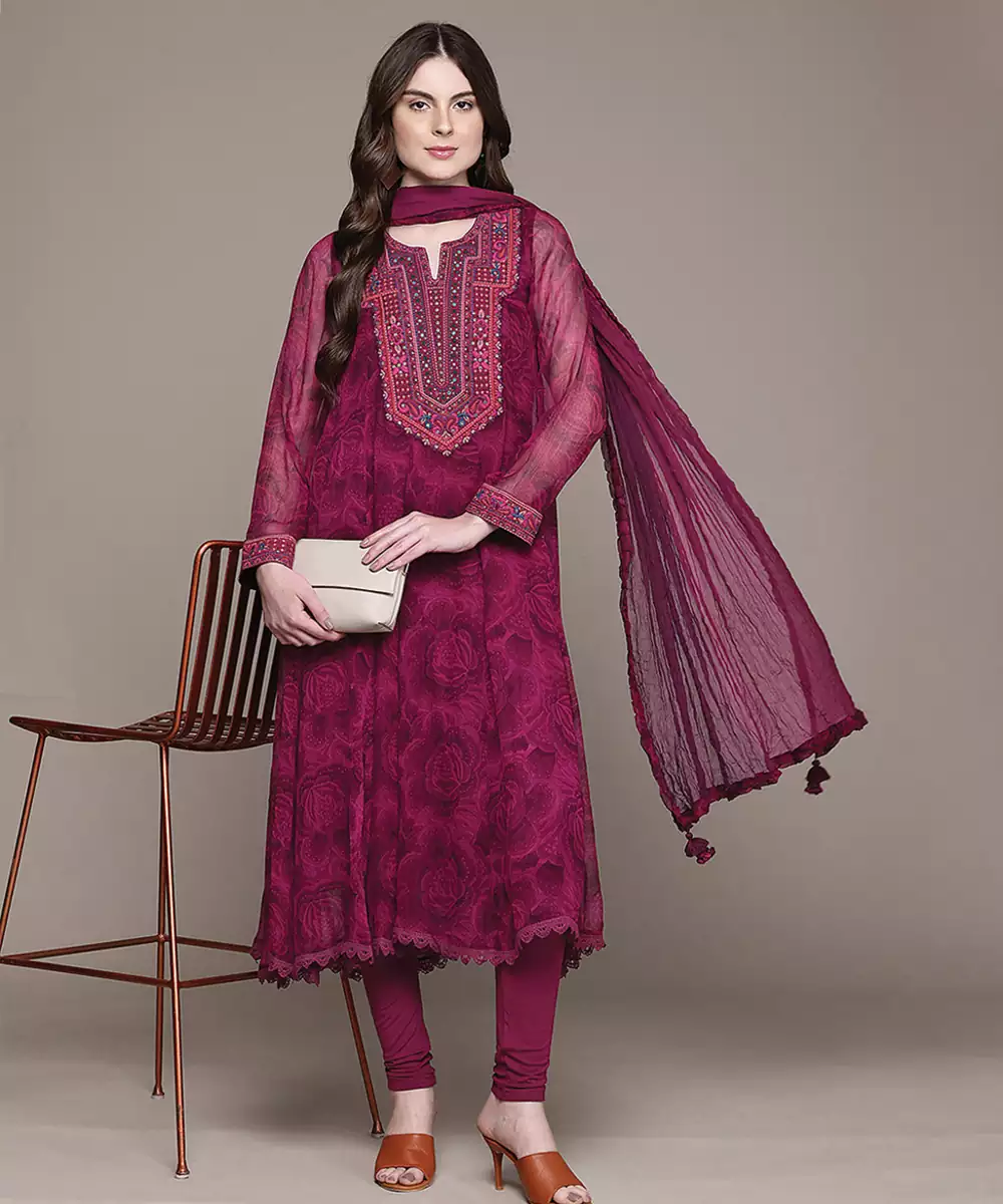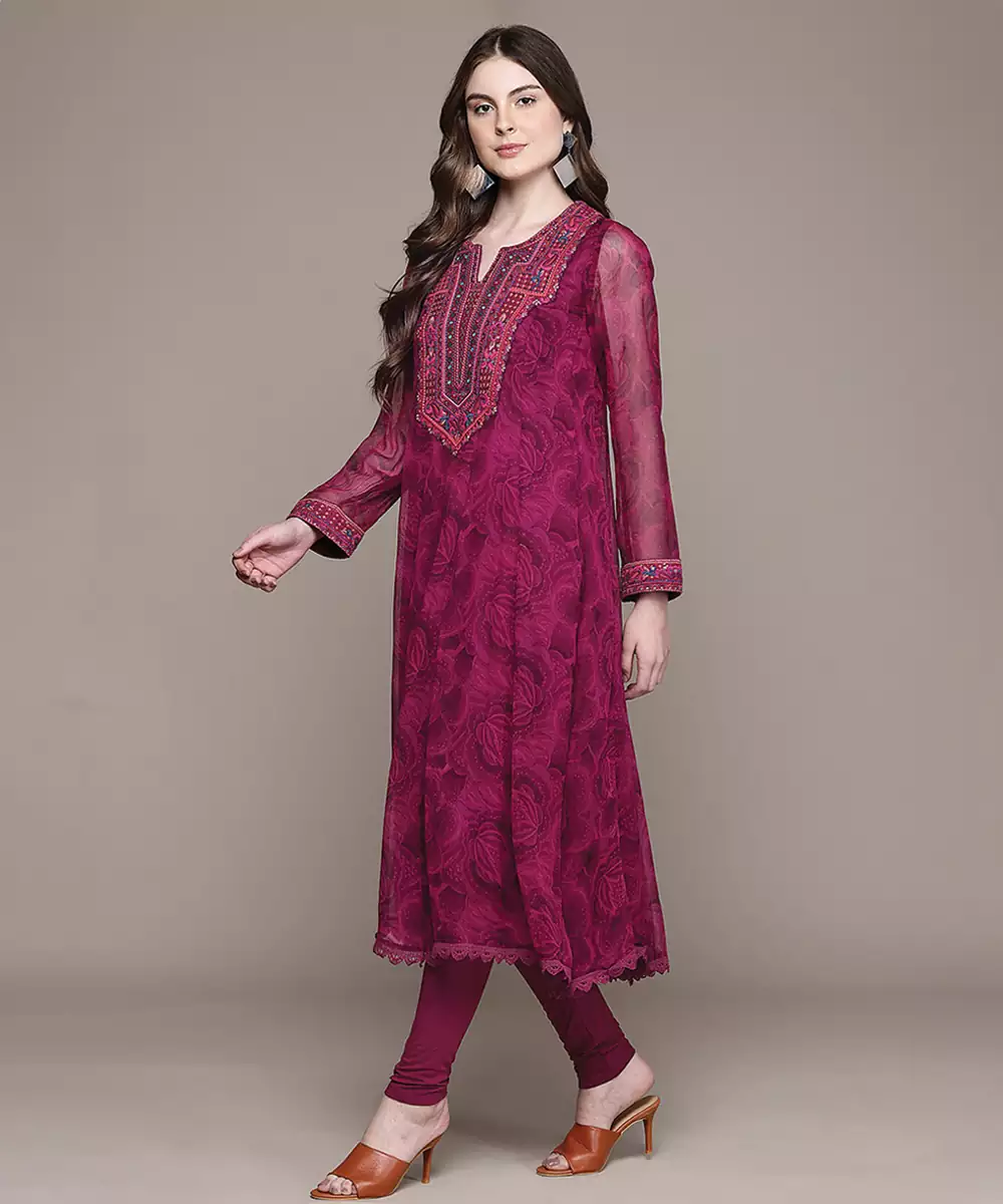 Fuchsia Printed Viscose Kurta Set