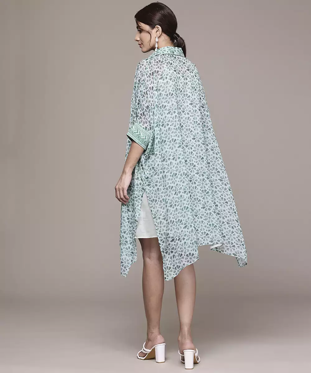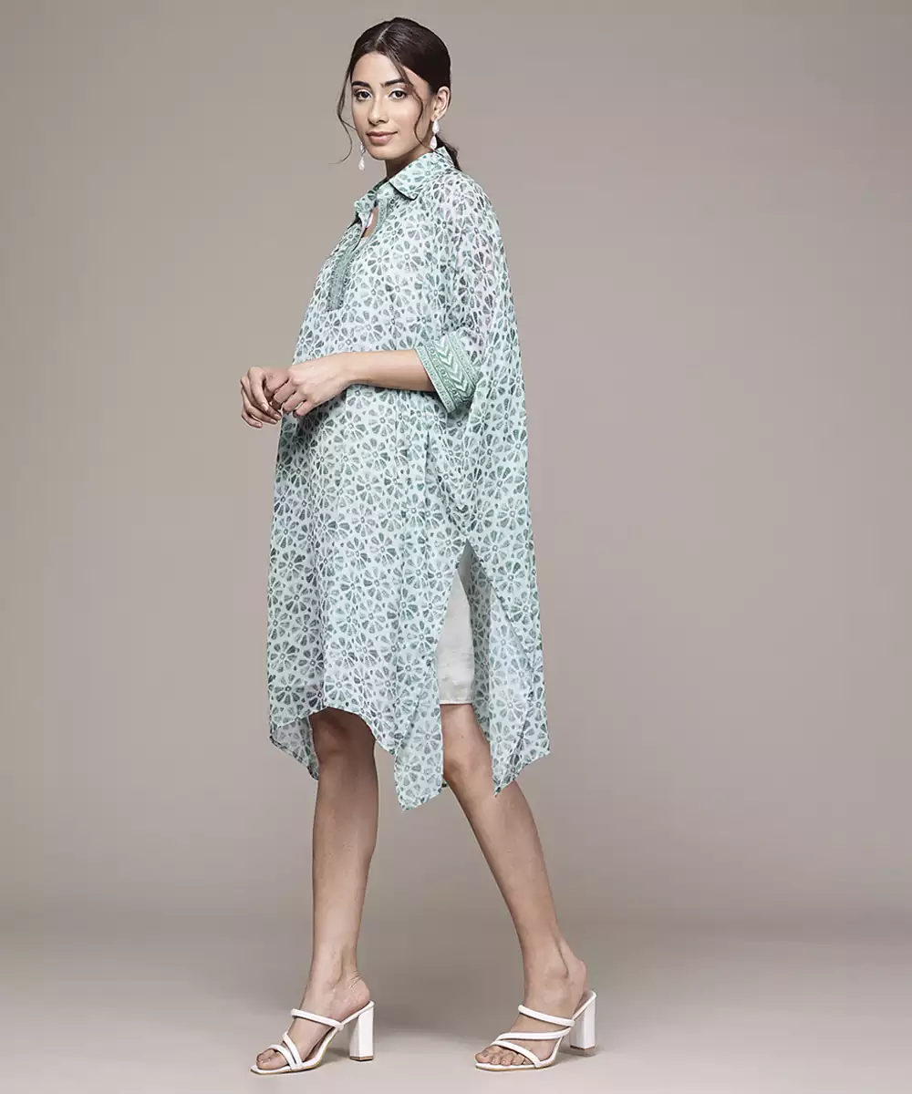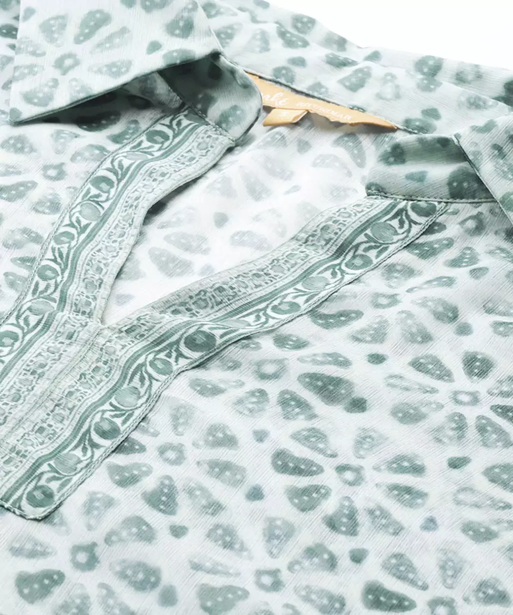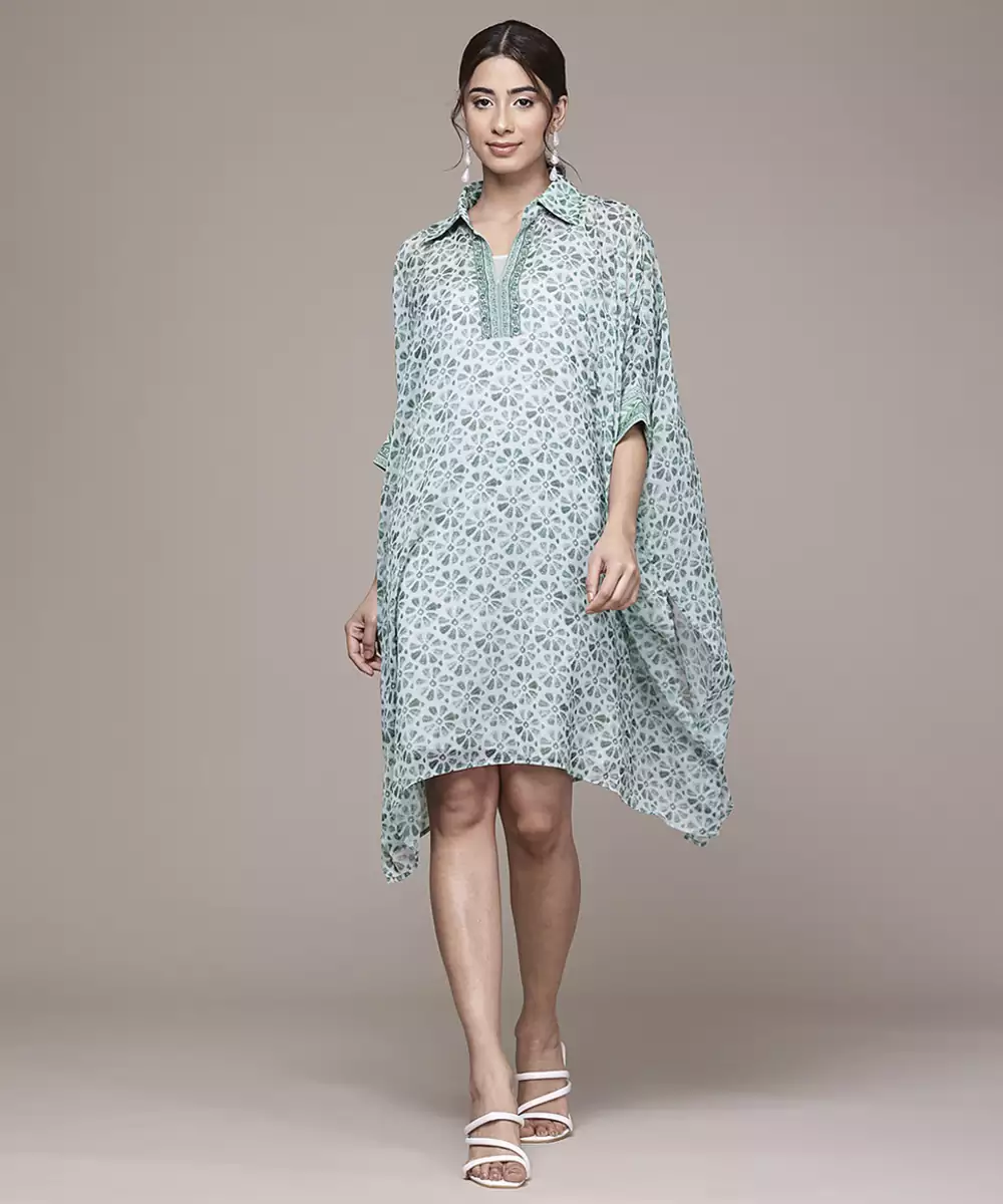 Green Chiffon Kaftan With Printed Work Design