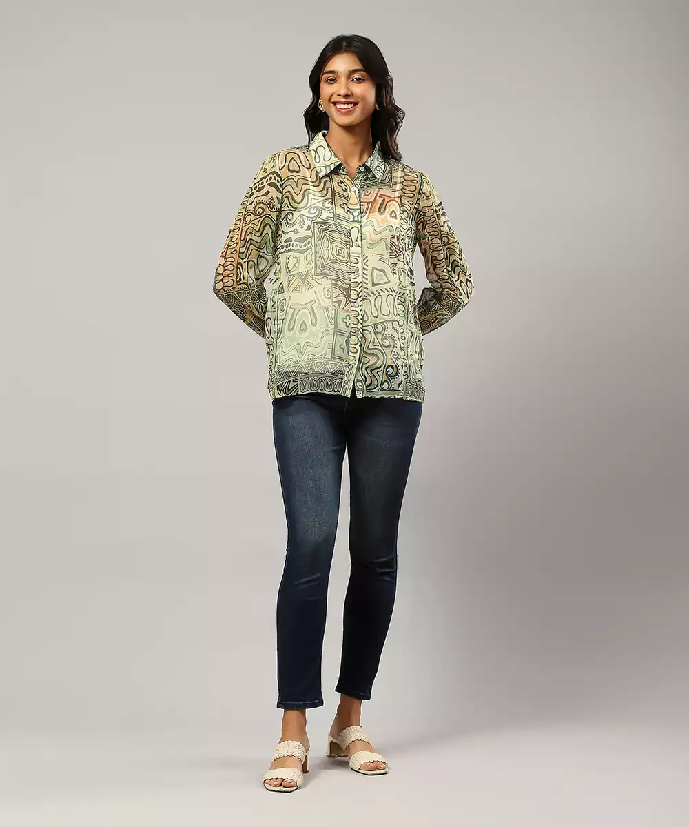 Featuring Green Printed Shirt With Inner. Colour : Green Fabric : Chiffon Components : 2 (Shirt,Inner) Work : Printed