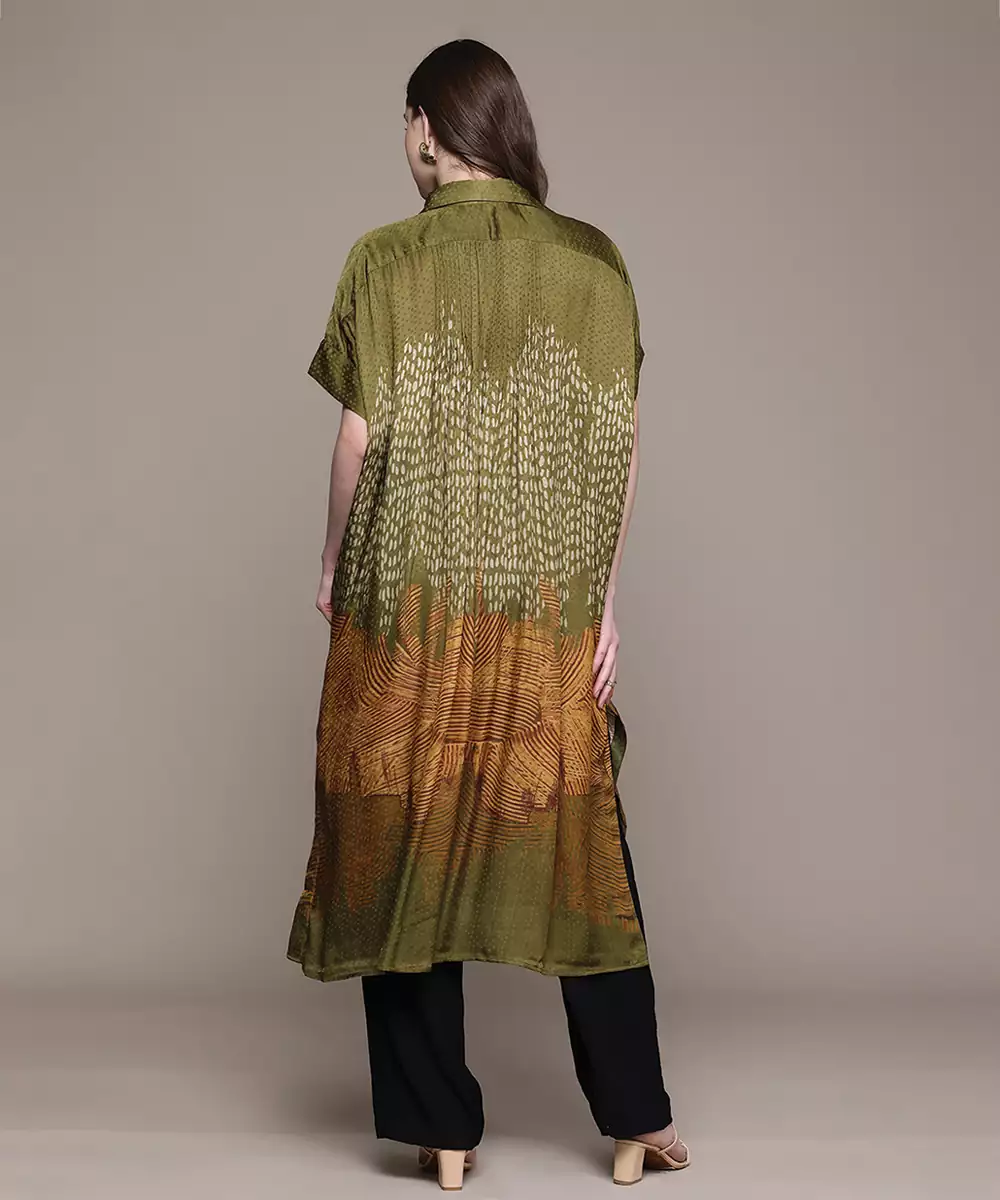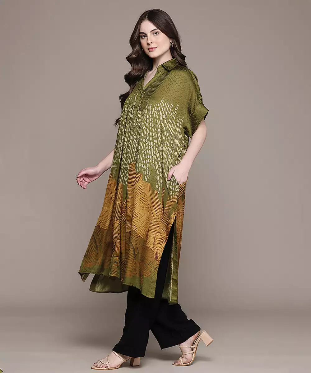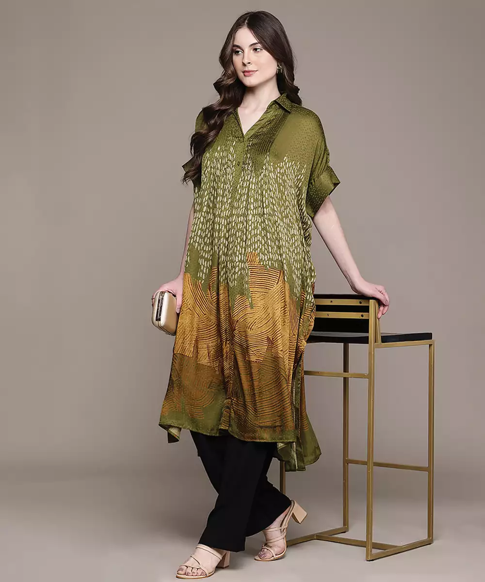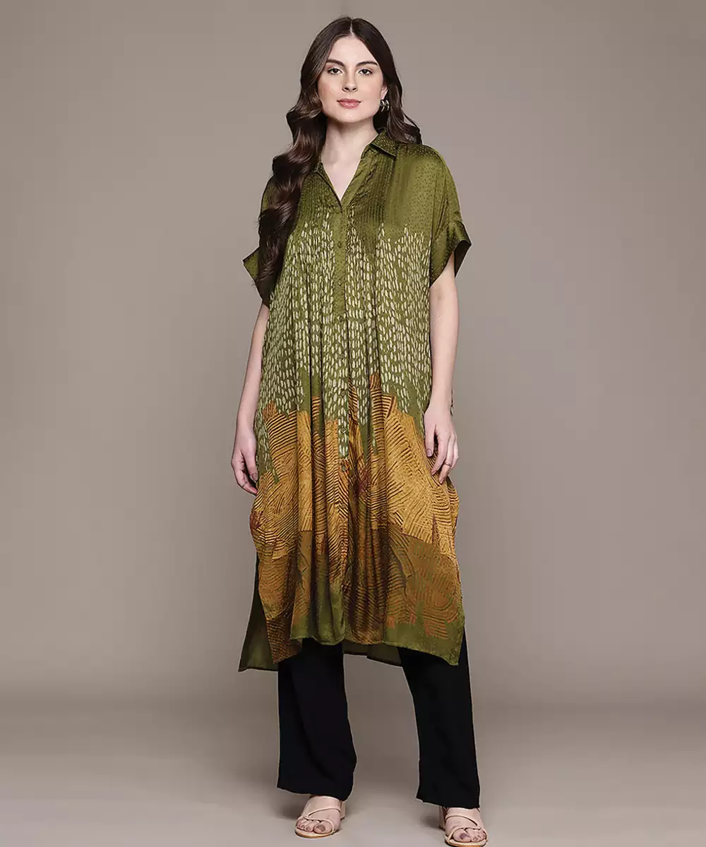 Green Printed Viscose Long Kurti