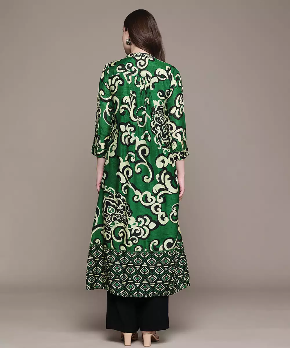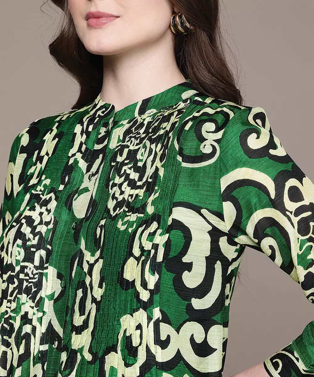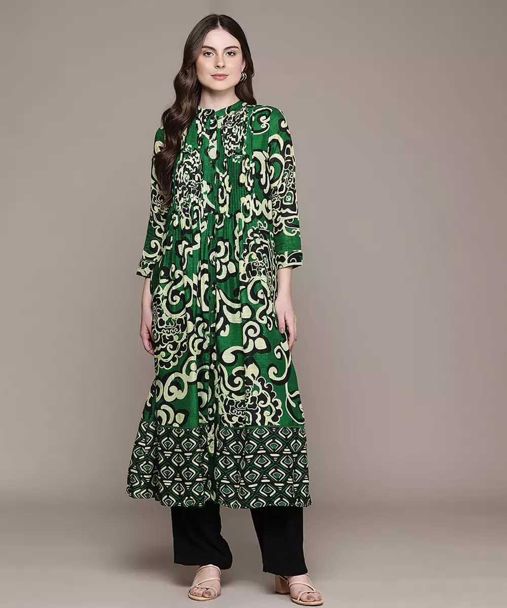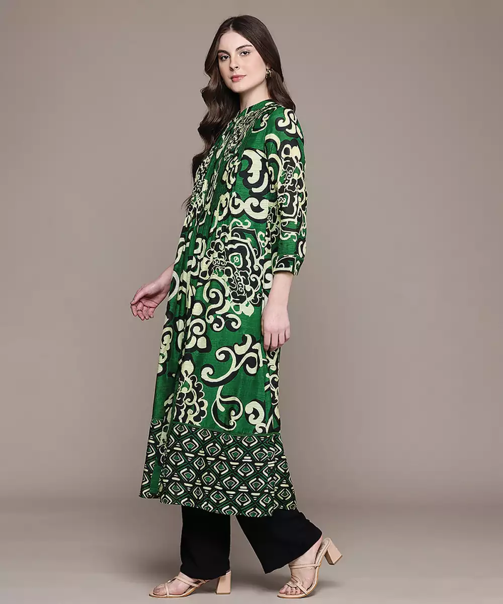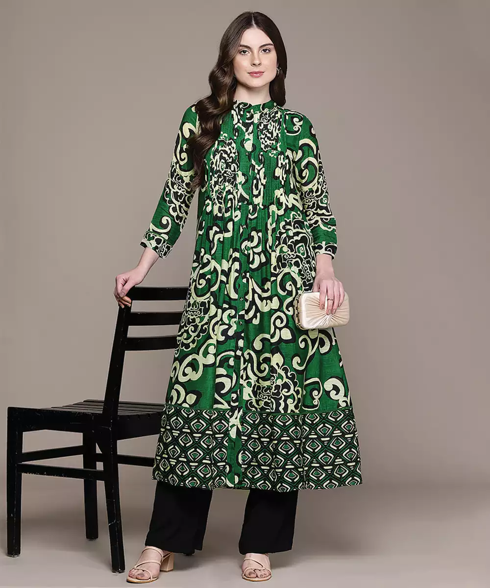 Green Printed Viscose Long Kurti