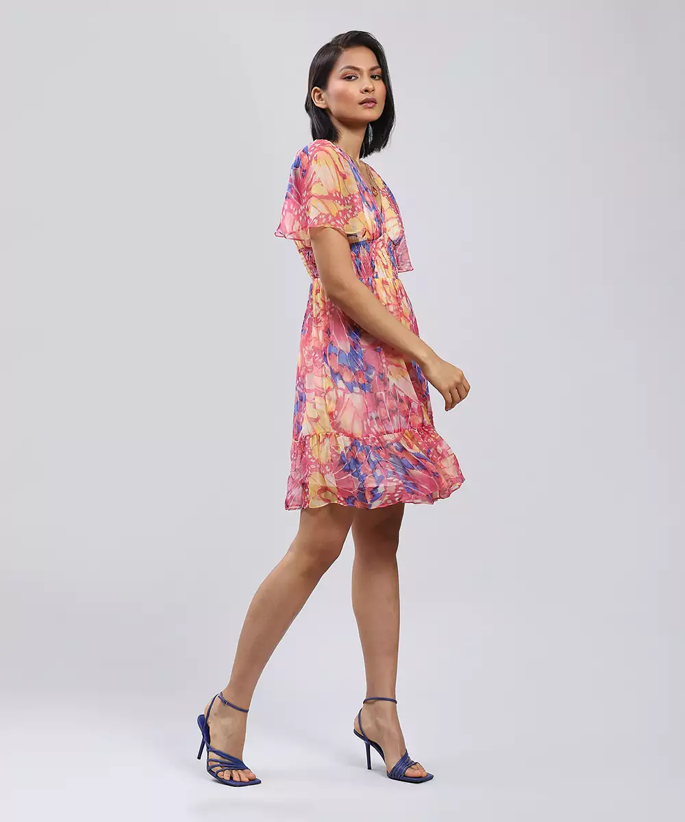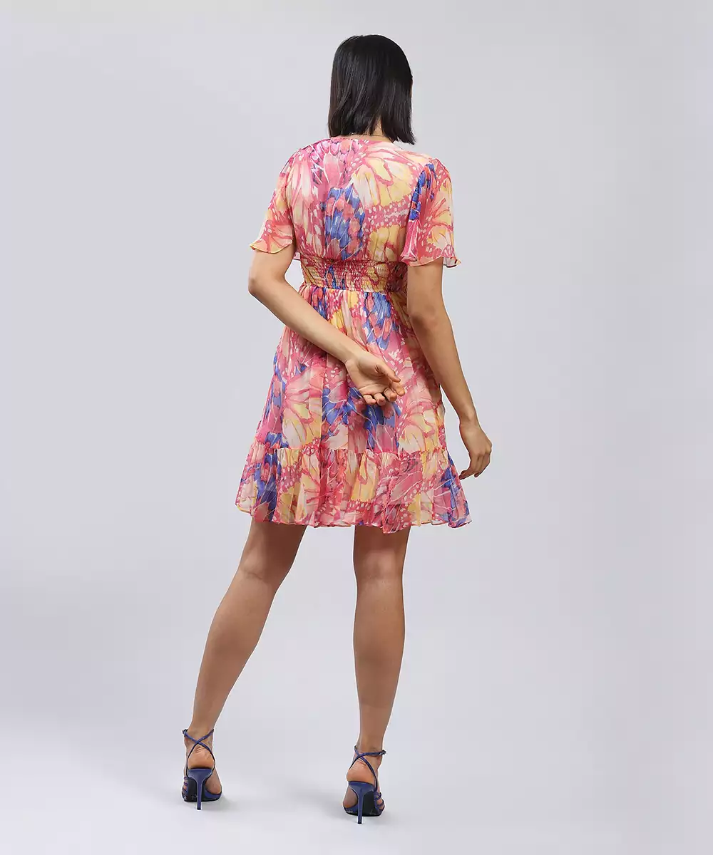 Featuring V Neck Short Sleeves Printed Long Dress. Colour :Pink Fabric :Cotton Components : 1 (Dress) Work : Printed