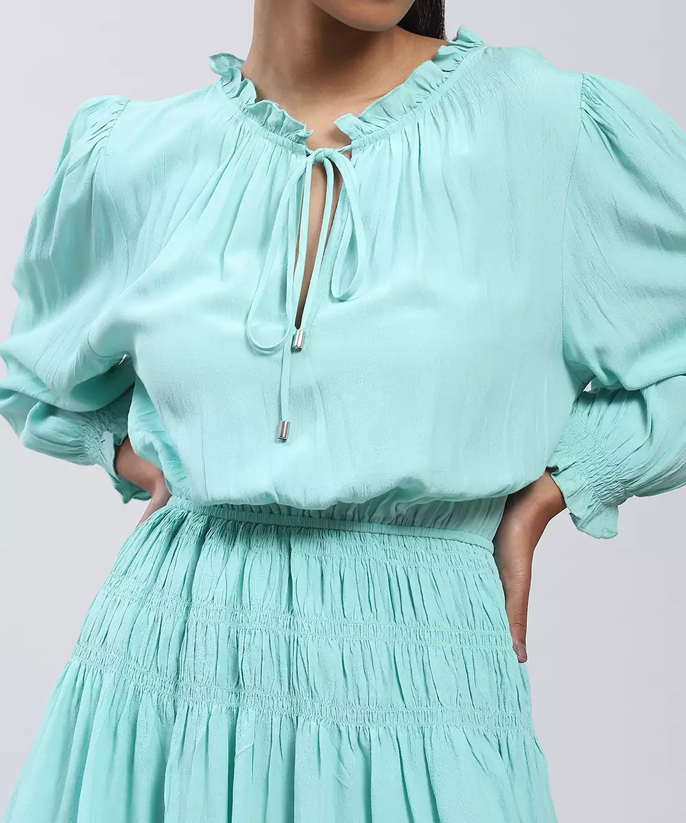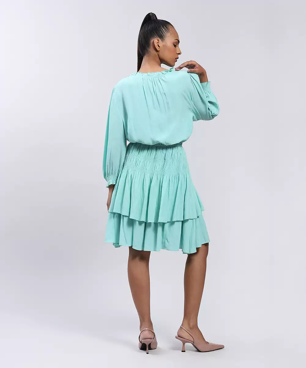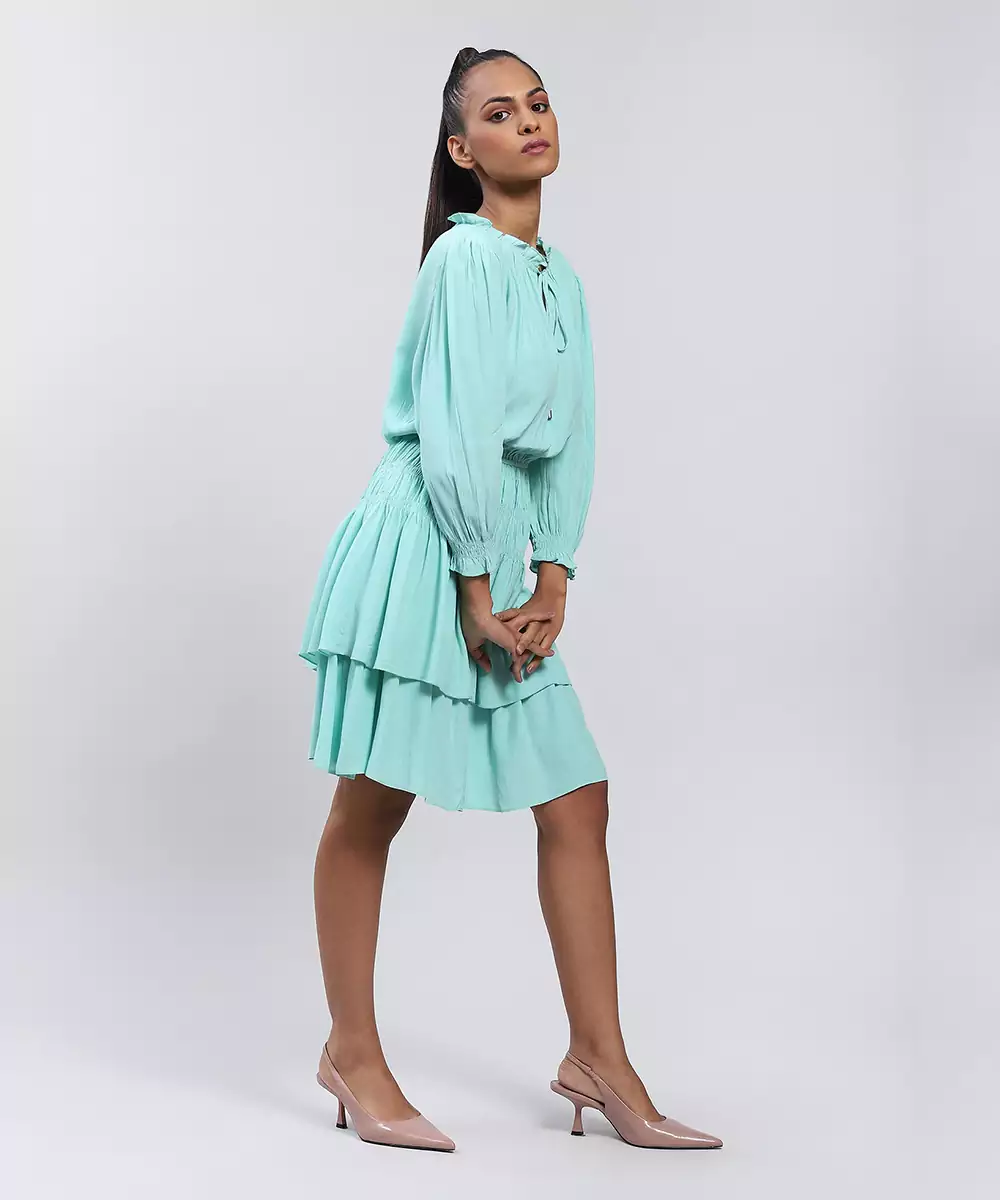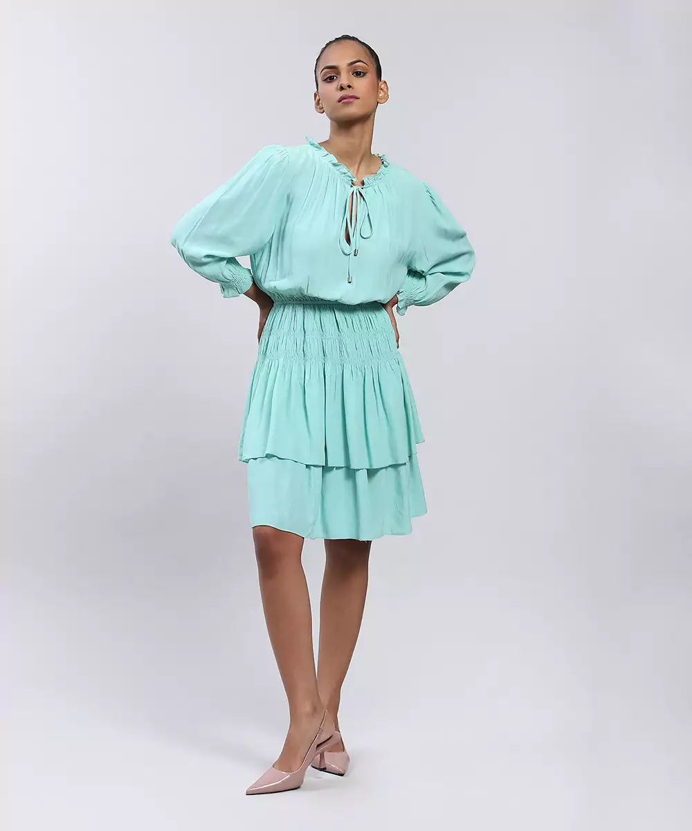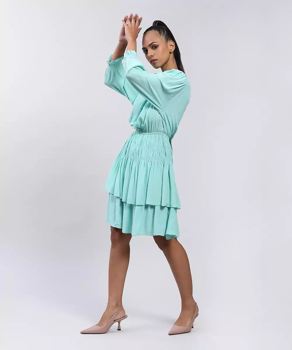 Featuring Mint Short Dress With Smocking.