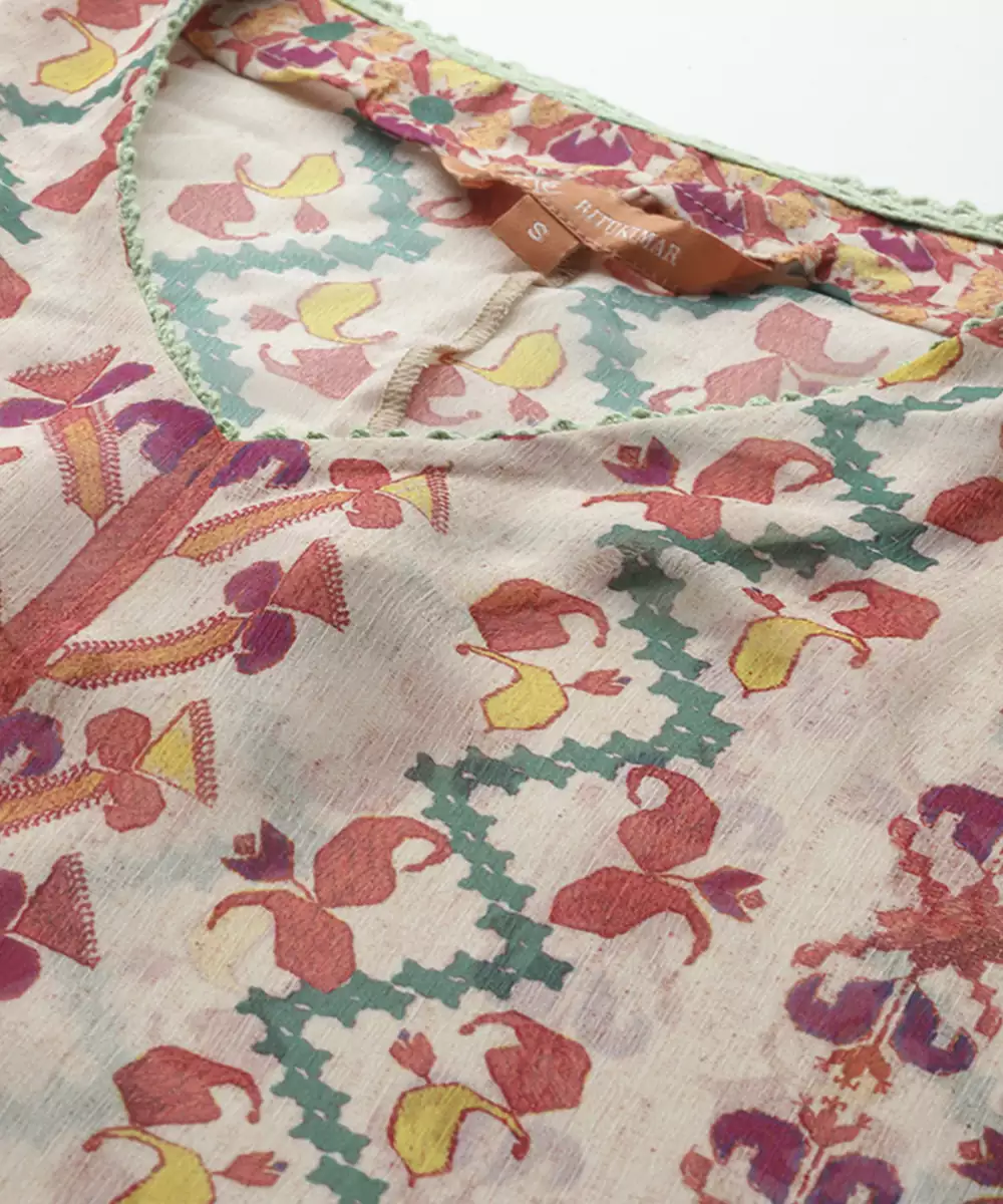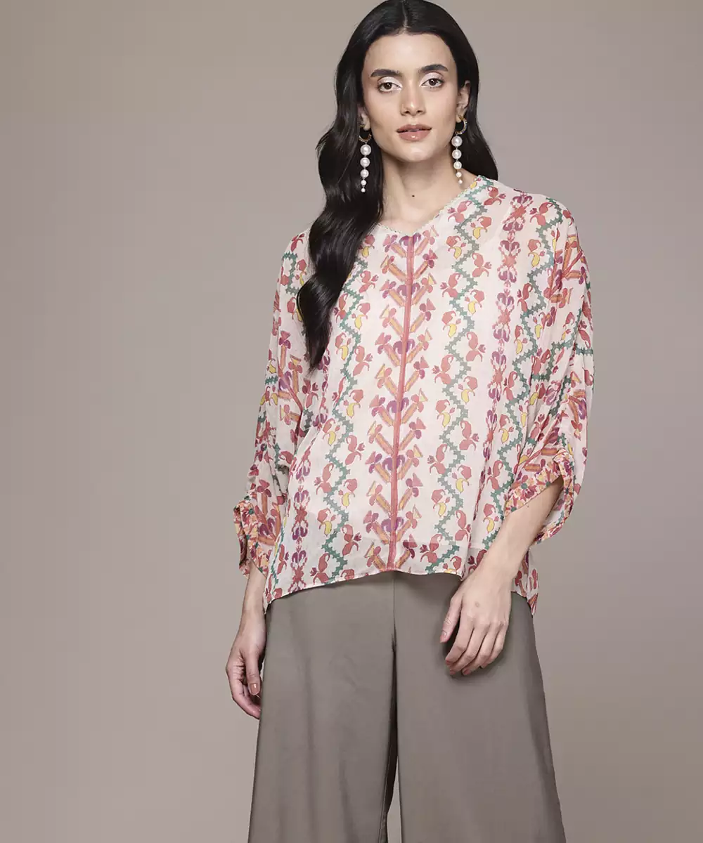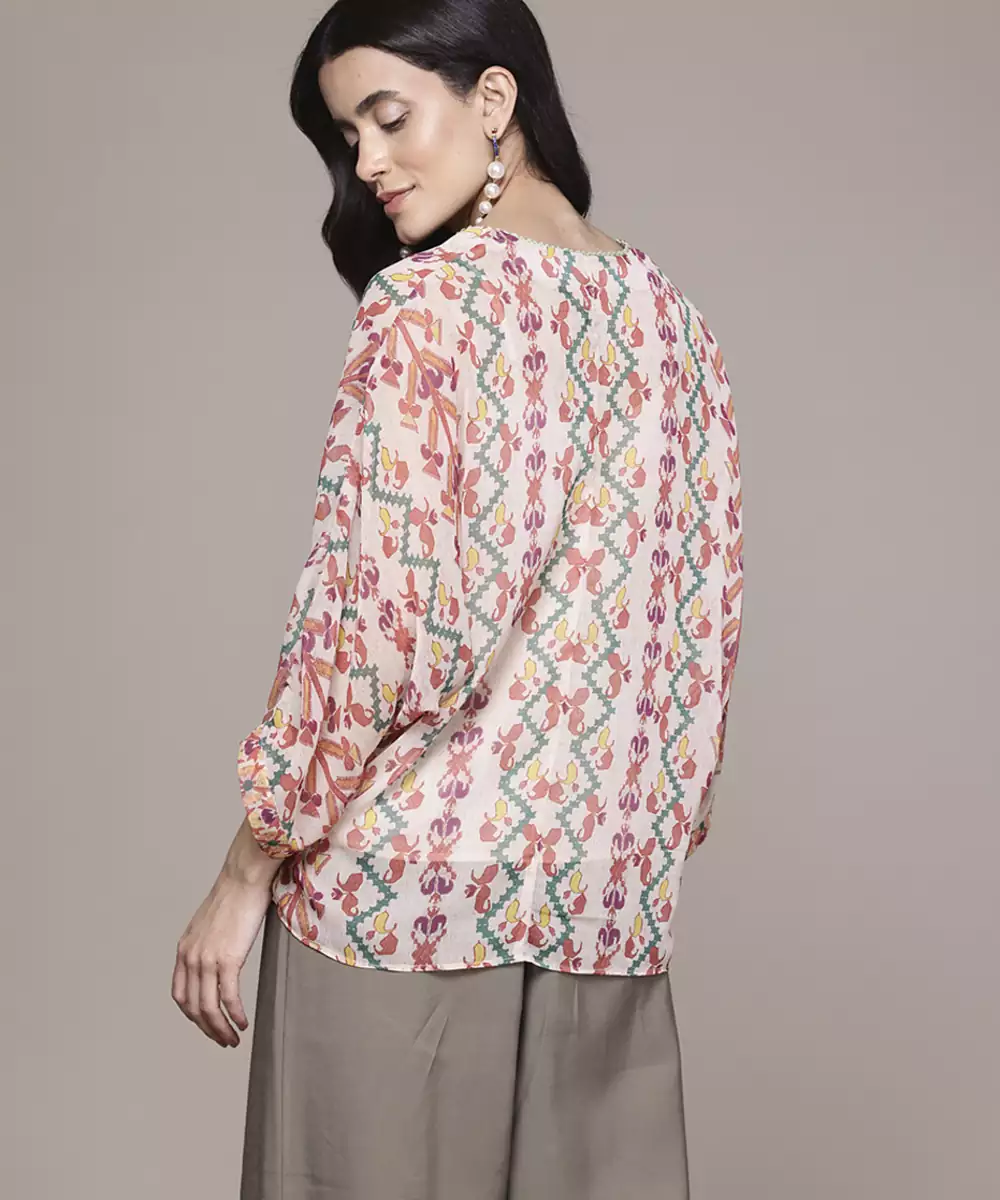 Multicolor Chiffon Top With Printed Work Design
