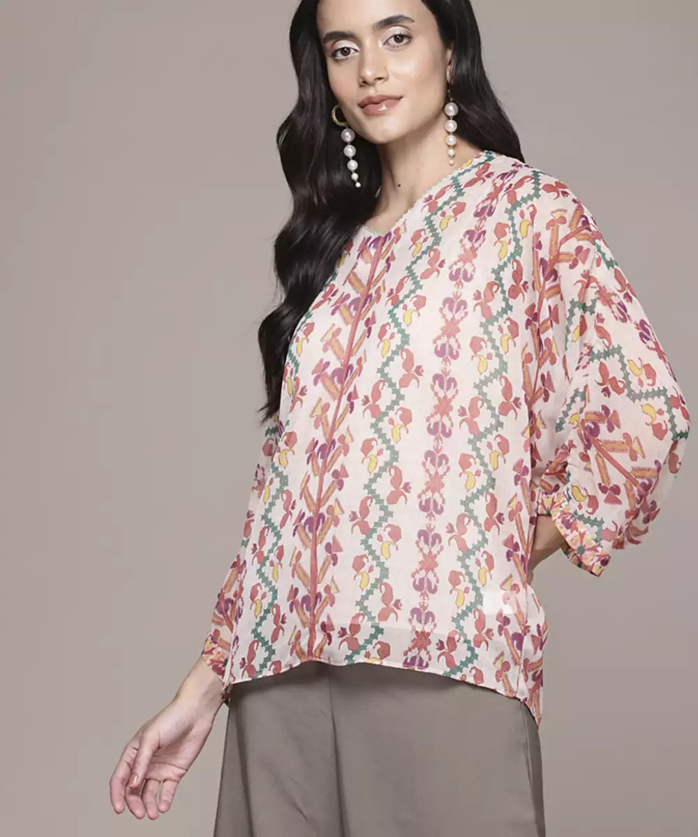 This Multicolor Chiffon Top Features Printed Work Across A Lightweight And Flowy Fabric. The Chiffon Material Supports Comfortable Wear, Making It Suitable For Casual Outings And Festive Occasions. The Printed Design Adds Visual Variation While Maintaining A Structured Appearance. Designed With Full Sleeves, It Provides Coverage And A Balanced Fit. The Stitched Construction Ensures A Ready To Wear Option. The Multicolor Pattern Allows Flexible Styling With Different Bottoms. This Top Combines Breathable Fabric With Consistent Printed Detailing For Everyday And Occasional Wear.