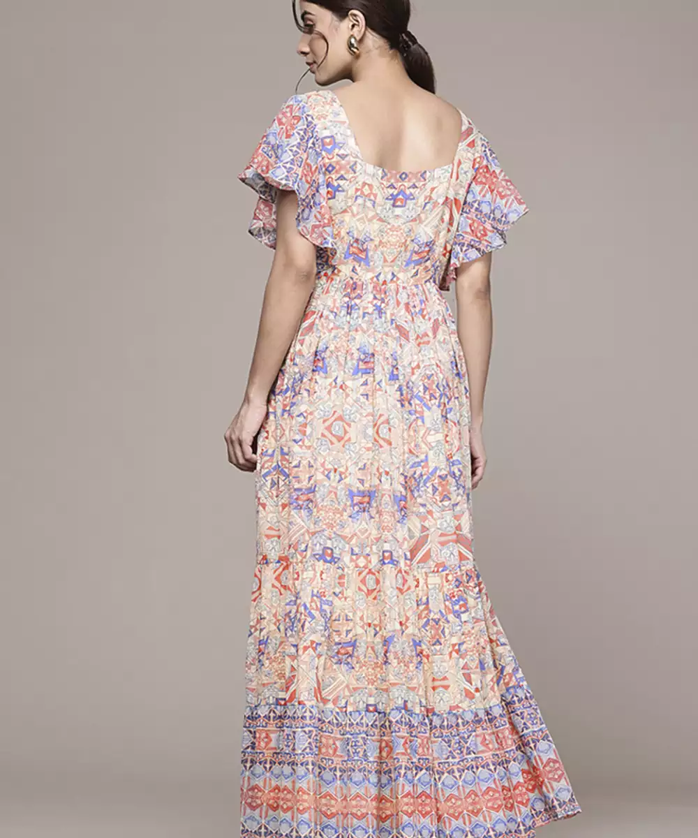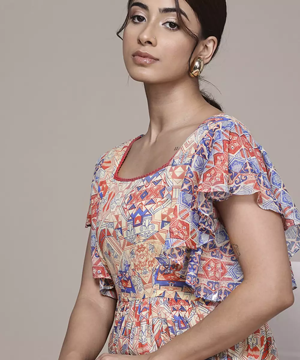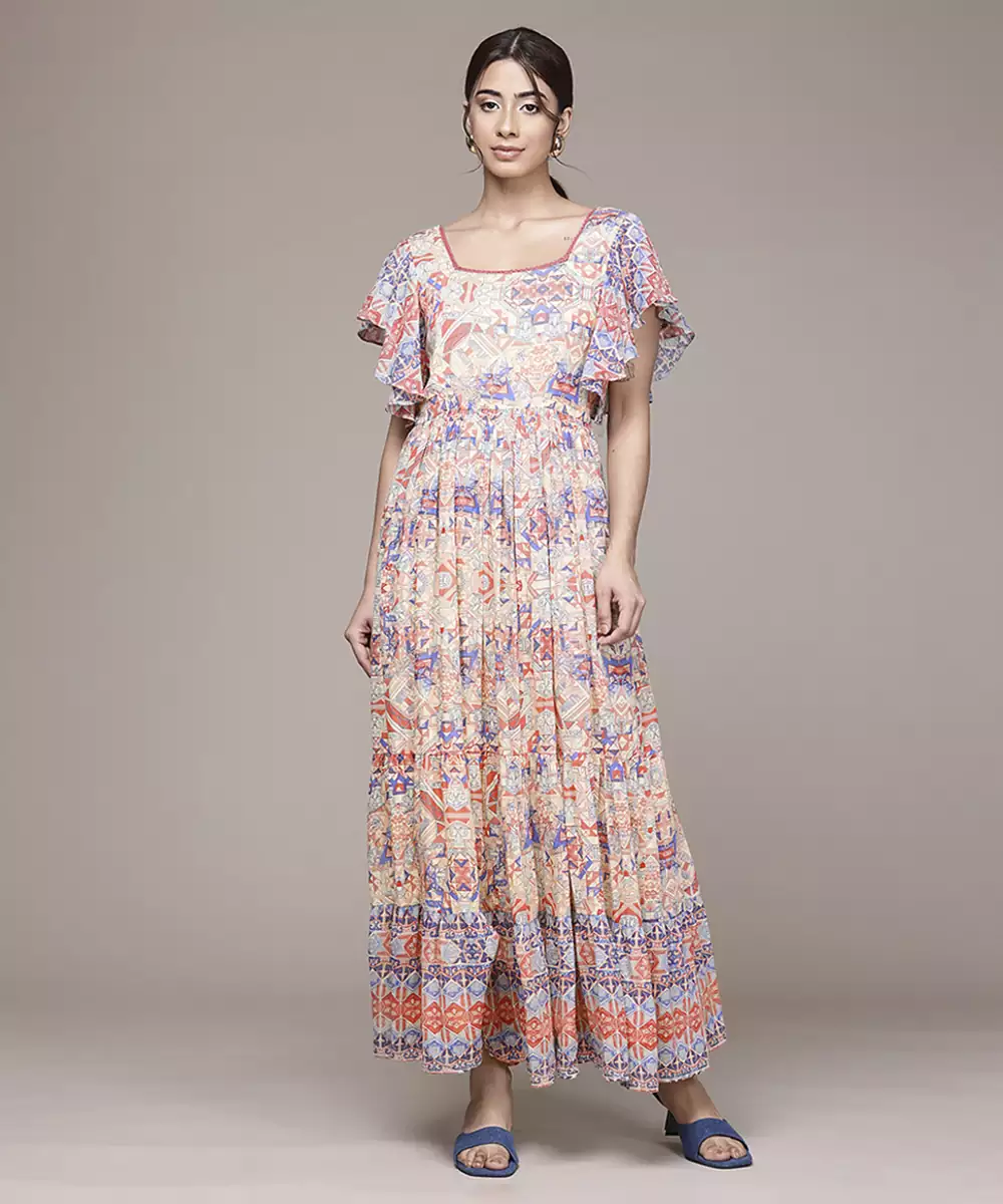 This Multicolor Cotton Dress Features An Allover Printed Pattern With A Lightweight And Breathable Feel. The Stitched Design Provides A Comfortable Fit. Suitable For Casual Wear, Summer Outings, And Everyday Occasions.