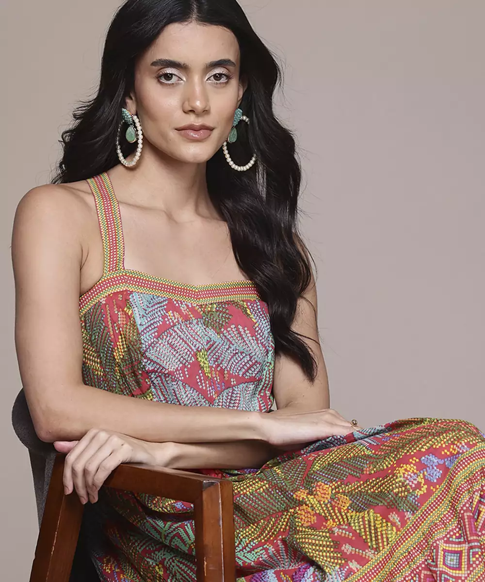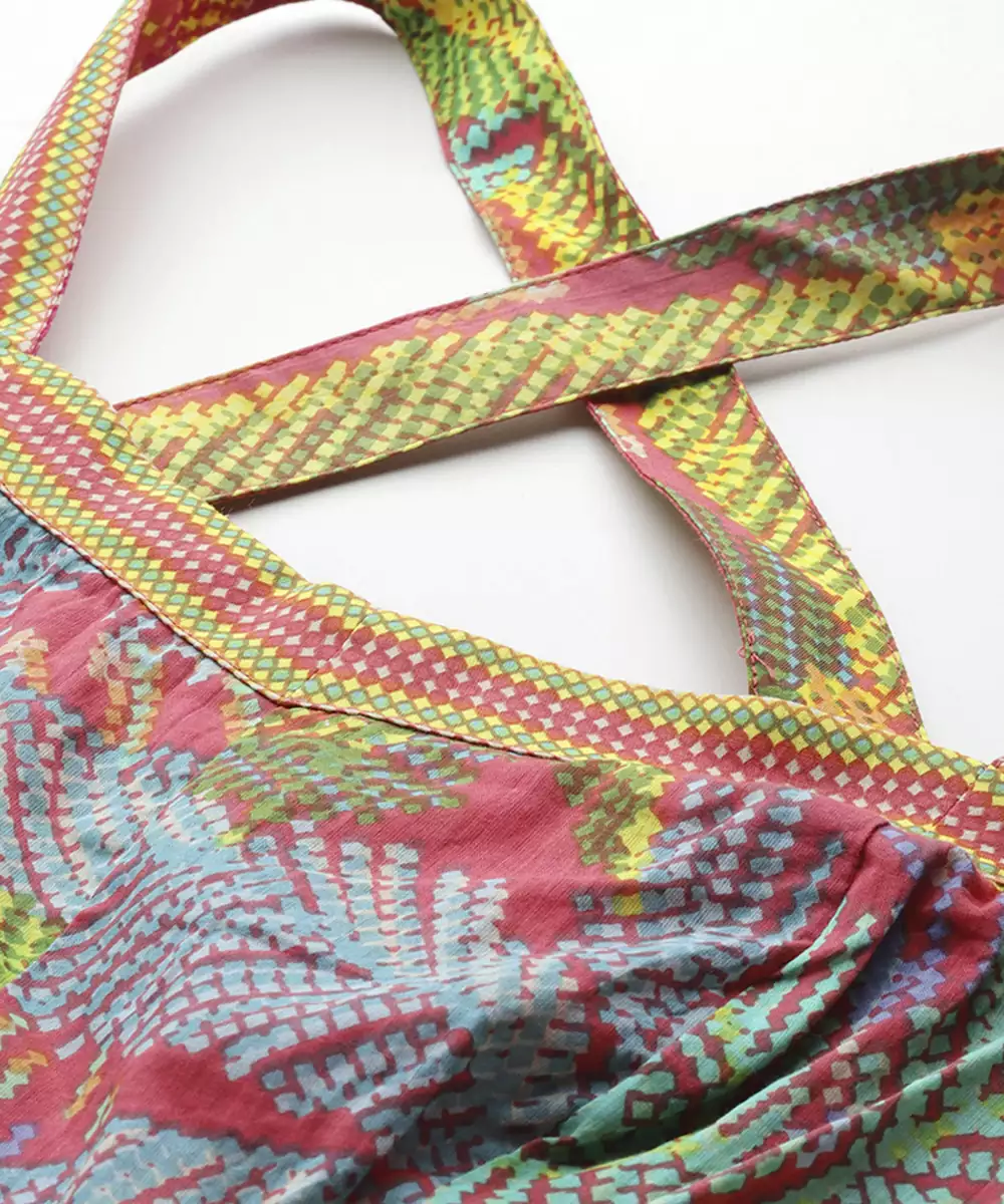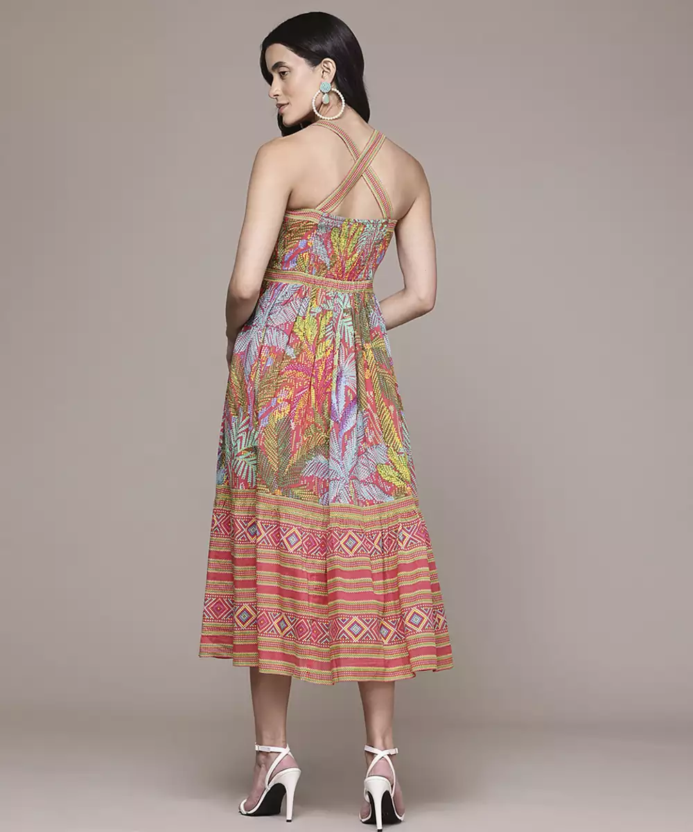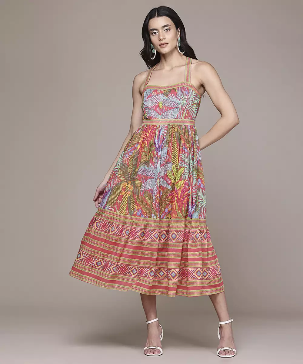 This Multicolor Cotton Dress Features A Printed Pattern Design With A Sleeveless Style And A Lightweight Structure. The Breathable Fabric Offers Comfort For Extended Wear. Suitable For Casual Outings, Summer Days, Day Events, And Informal Gatherings.