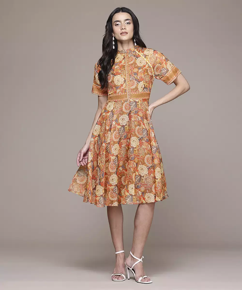 This Multicolor Cotton Dress Features Printed Work On Soft And Breathable Fabric. The Cotton Material Ensures Comfort For Everyday Wear And Summer Outings. Half Sleeves Provide A Relaxed And Balanced Silhouette. The Printed Design Adds Visual Detail While Maintaining A Clean And Consistent Appearance. The Stitched Construction Ensures A Ready To Wear Form. The Multicolor Shade Supports Versatile Styling With Different Accessories, Making It Suitable For Casual And Daily Wear.