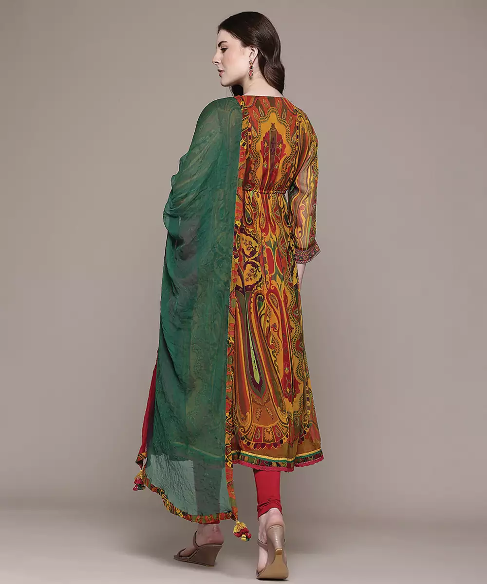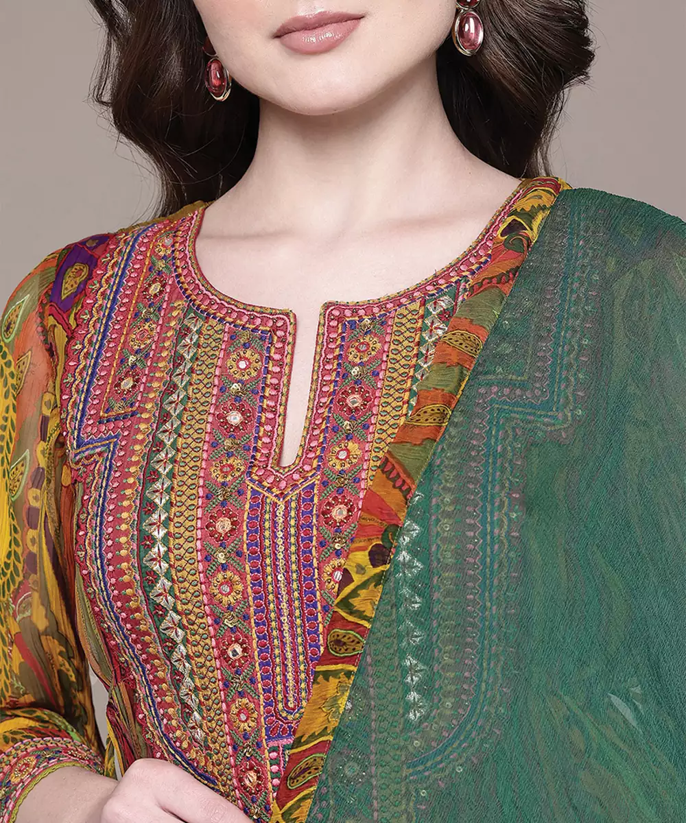 Multicolor Embroidered Chiffon Kurta Set