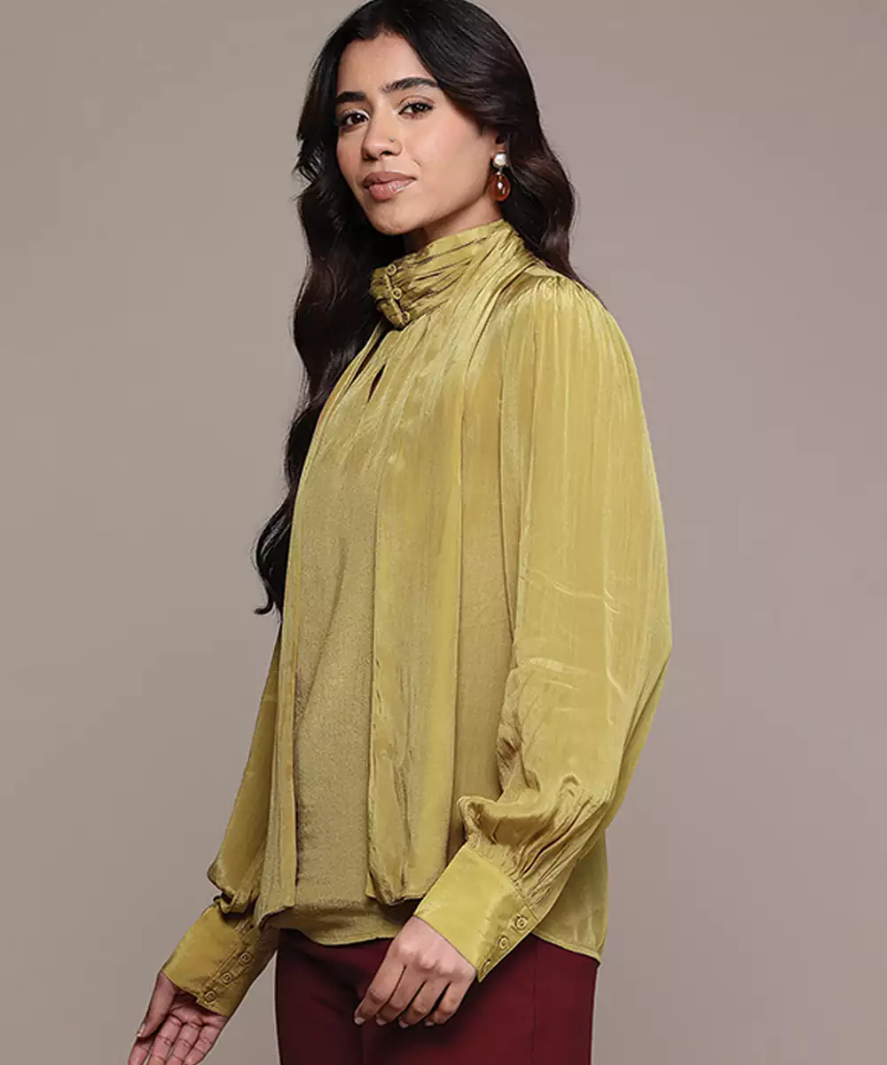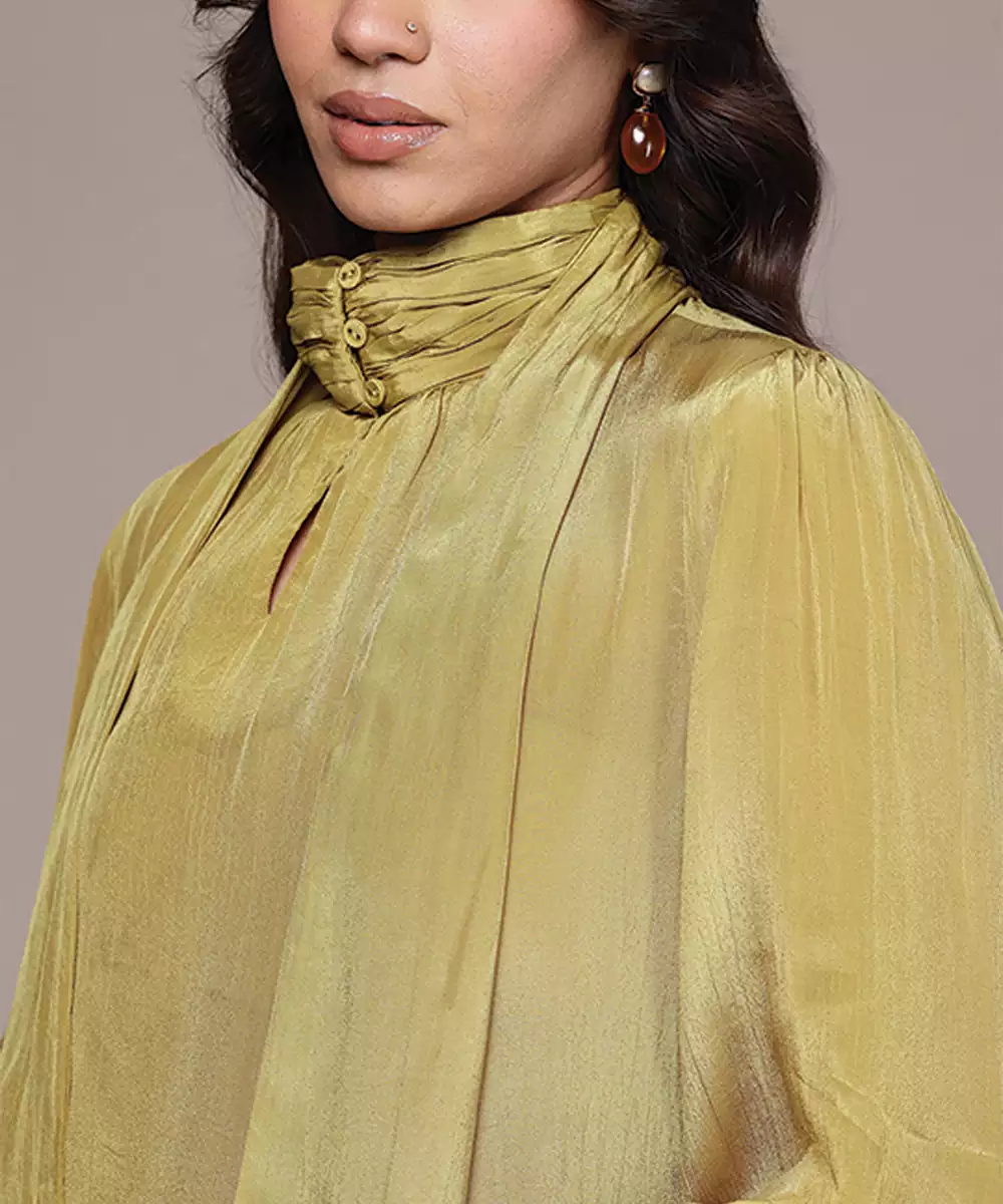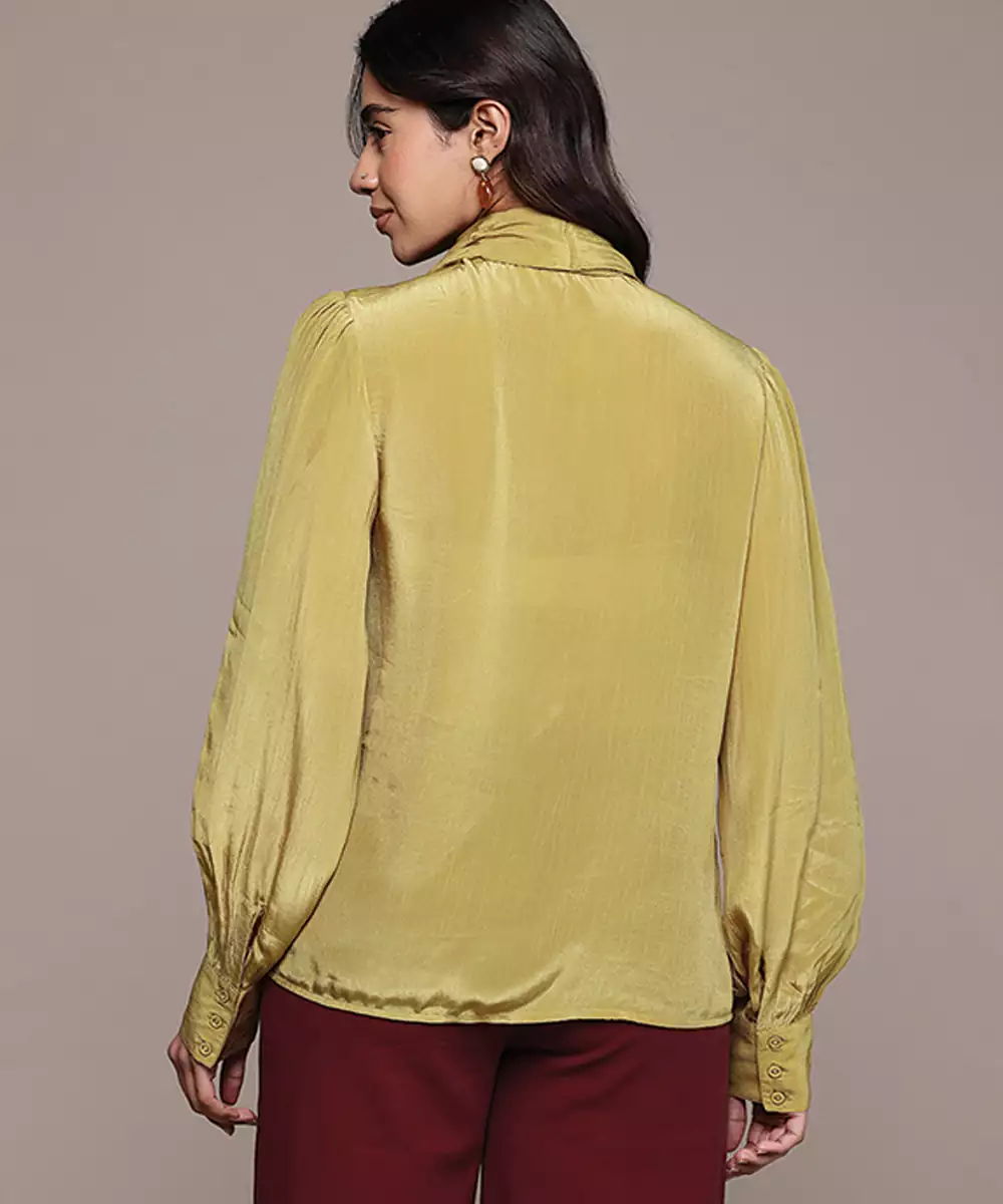 This Mustard Crepe Full Sleeves Top Features A Smooth, Lightweight Fabric With A Flattering Silhouette. The Vibrant Color Adds A Stylish Touch, While The Comfortable Fit Makes It Perfect For Everyday Wear. A Versatile Piece That Pairs Effortlessly With Both Casual And Semi Formal Outfits.