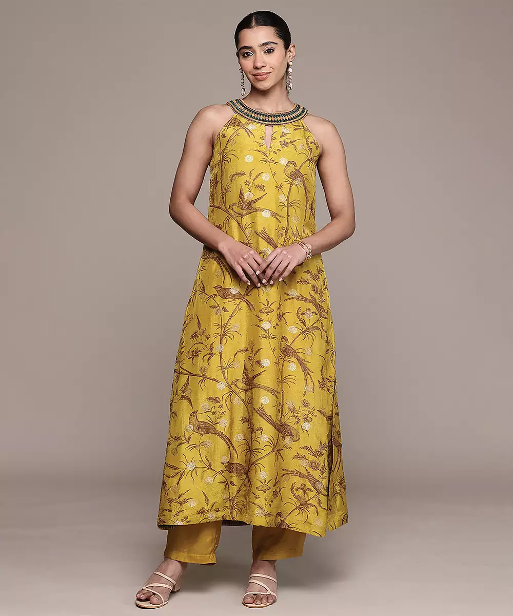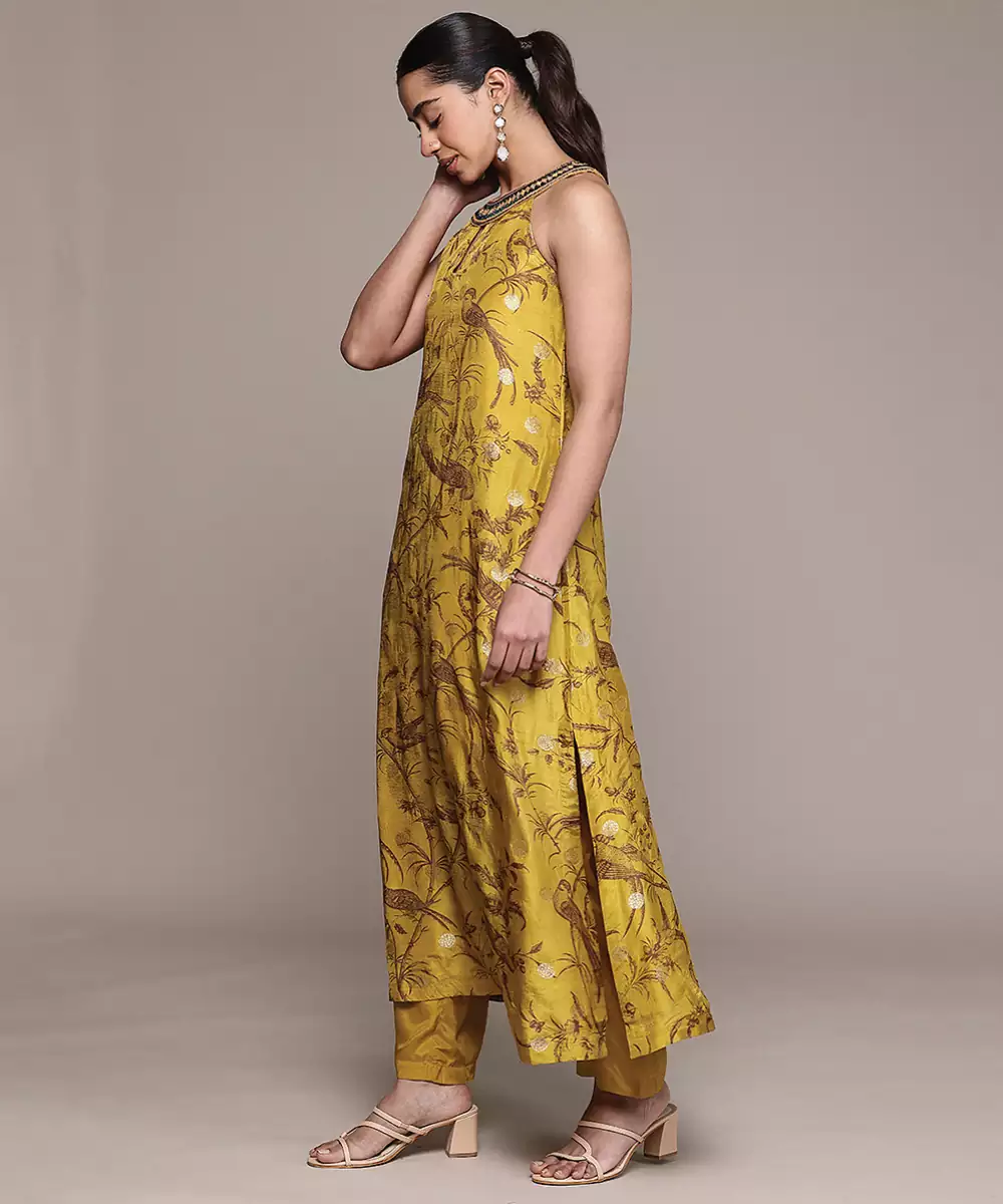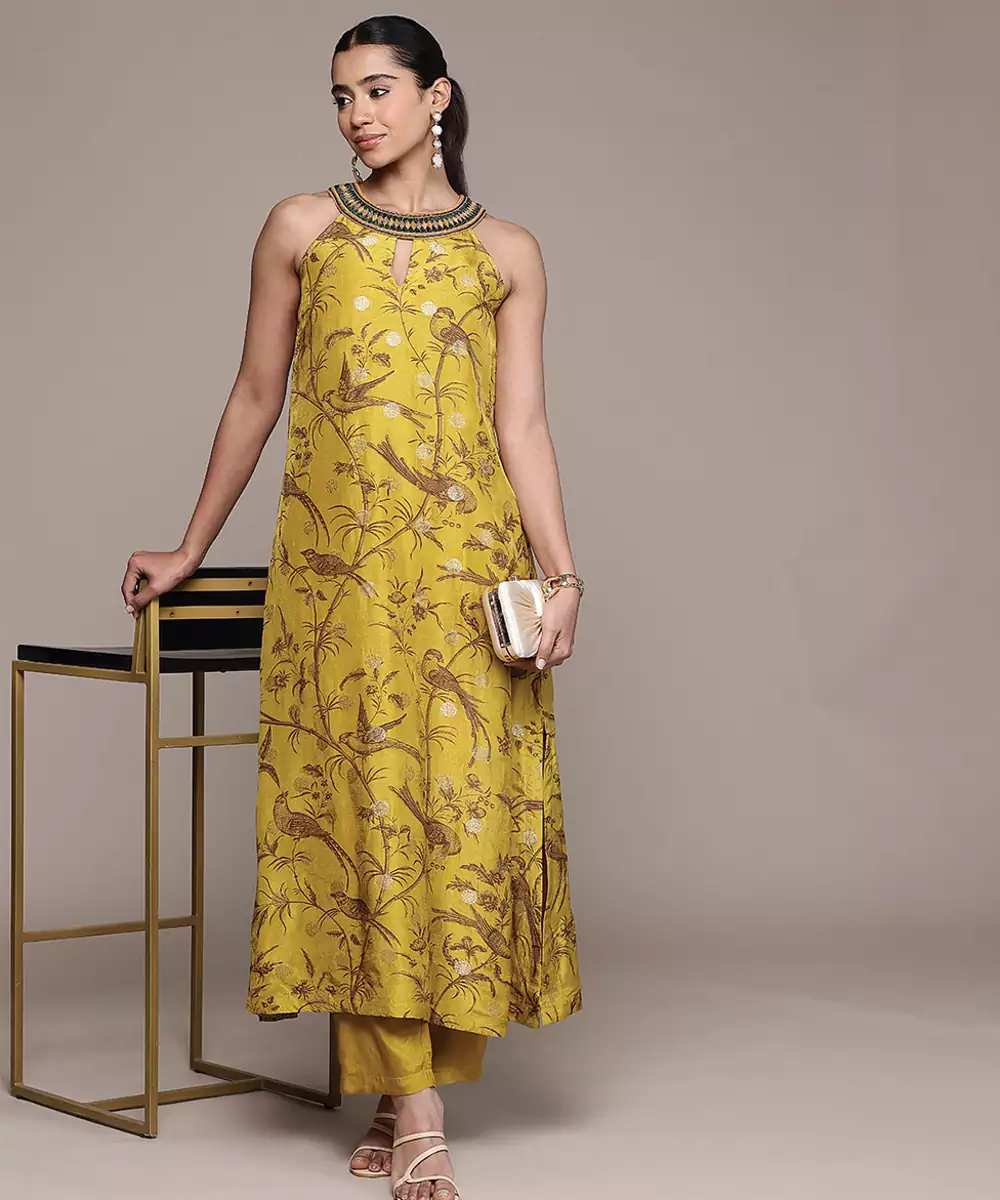 Mustard Printed Viscose Kurta Set