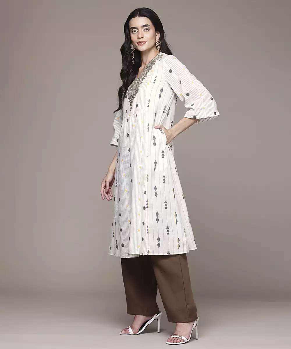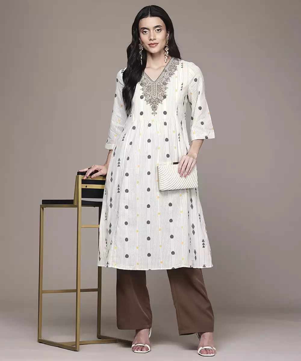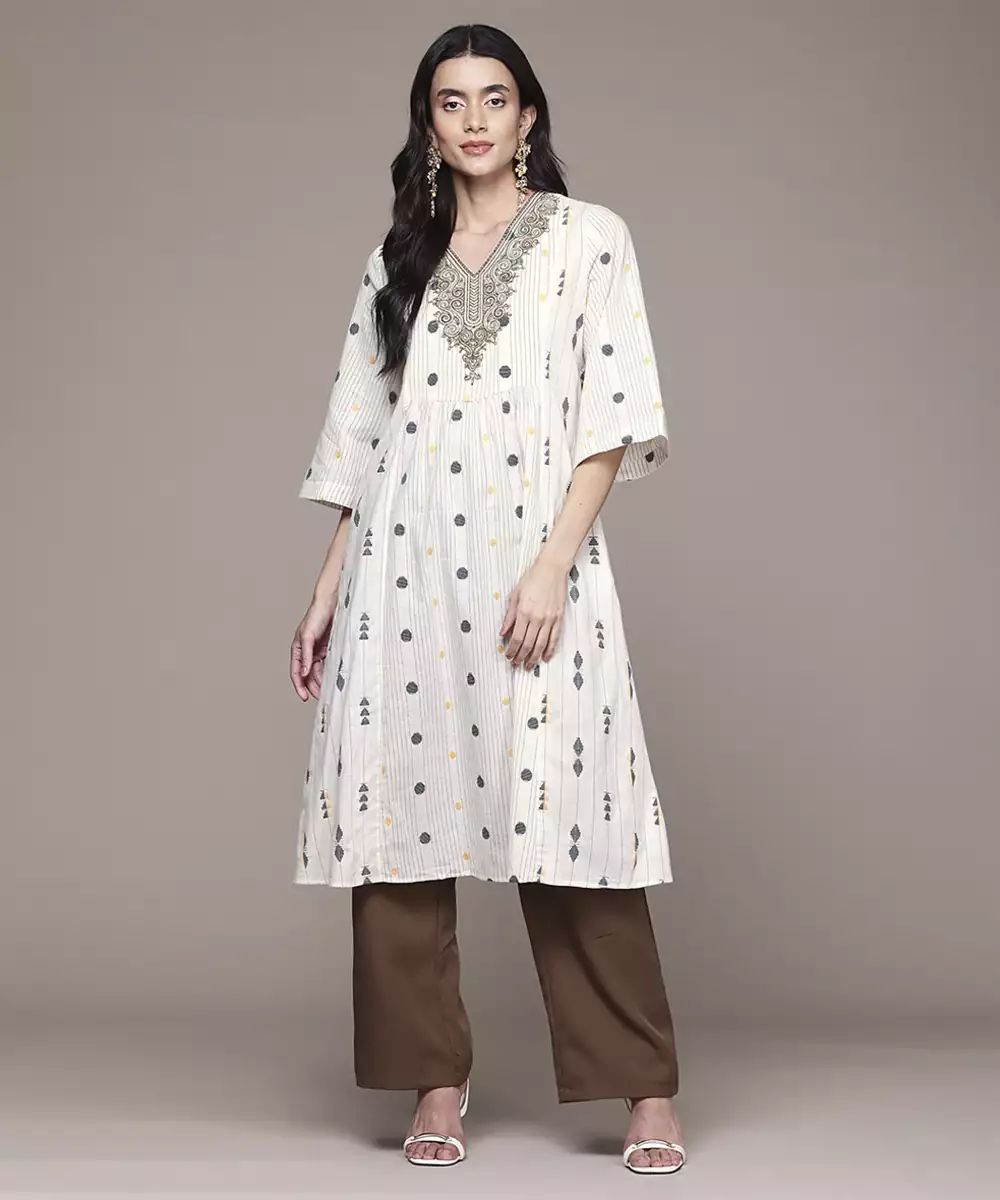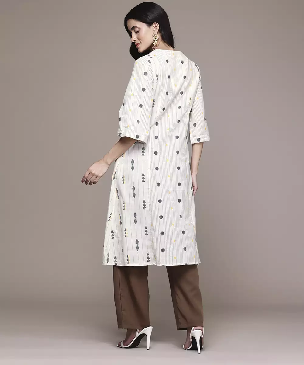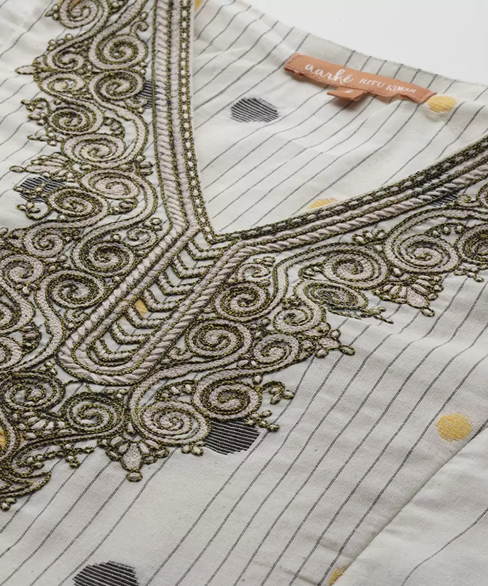 Add A Touch Of Elegance To Your Wardrobe With This Off White Woven Polyester Kurta. Lightweight And Wrinkle Resistant, It Offers All Day Comfort With A Sleek, Polished Look. Ideal For Both Festive Occasions And Formal Events, Its Timeless Design Blends Tradition With Easy Care Convenience For Effortless Style.