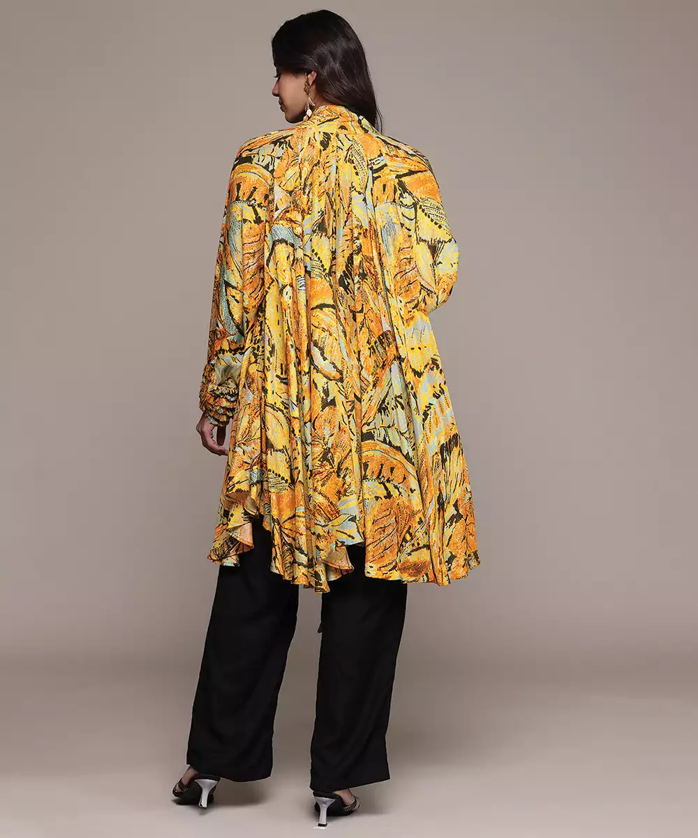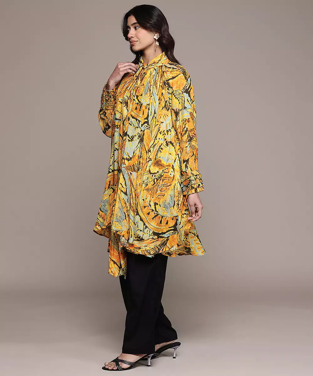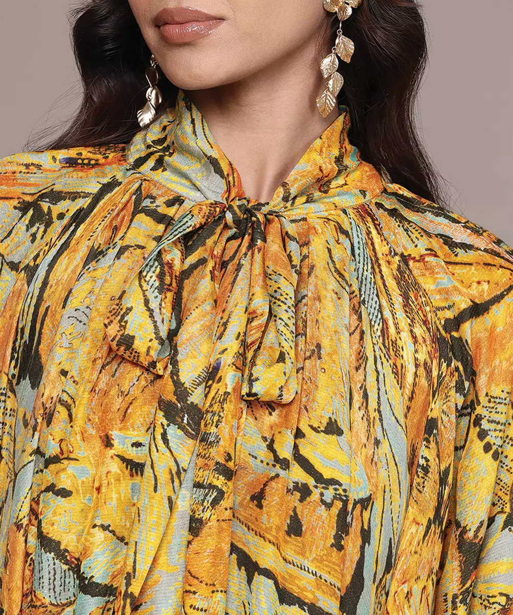 Orange Printed Lurex Kaftan