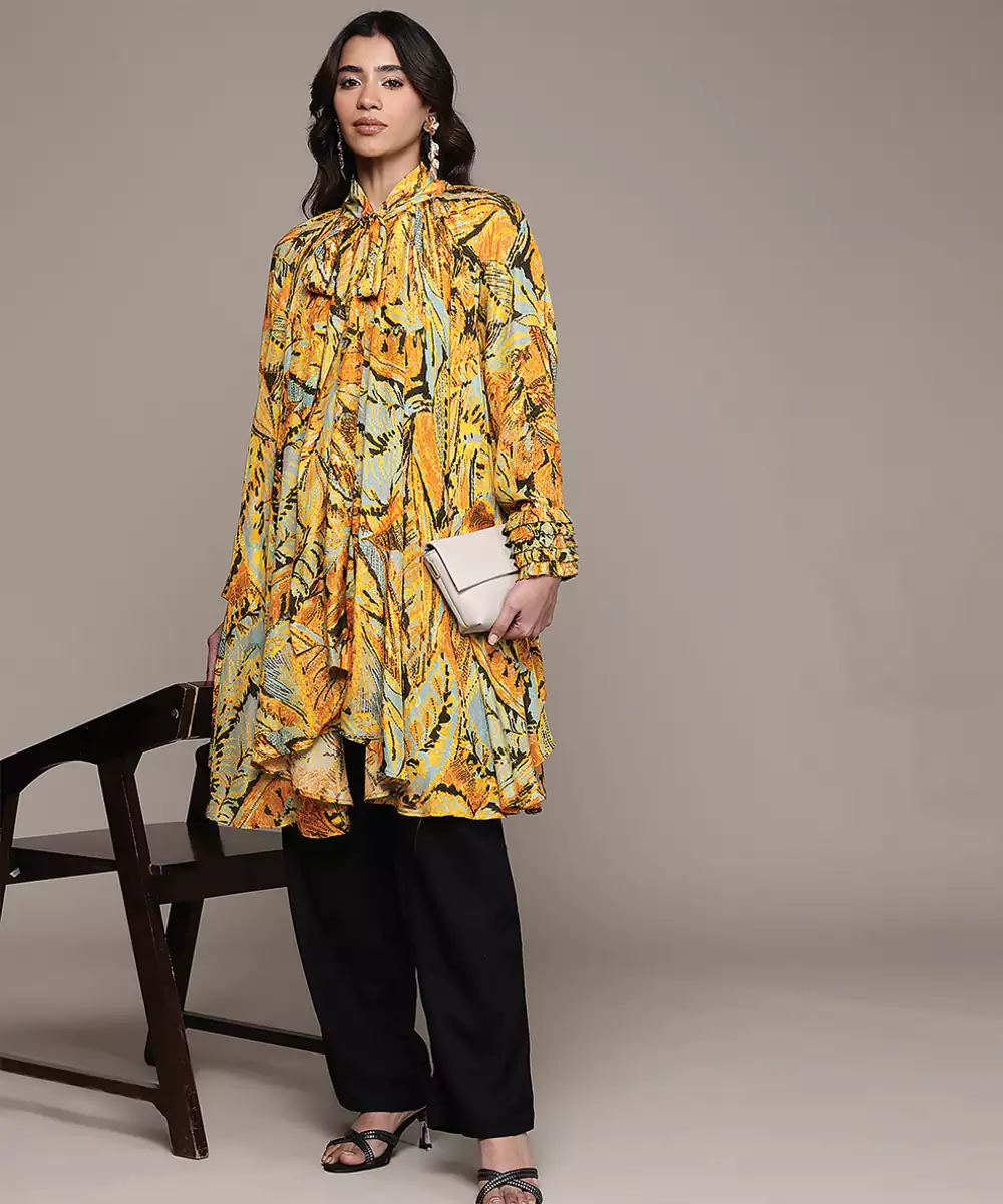 Bright And Stylish, This Orange Printed Lurex Kaftan Features A Subtle Shimmer With Elegant Patterns. The Flowy Silhouette Ensures Comfort And Ease Of Movement, Making It Perfect For Festive And Casual Occasions. A Statement Piece That Blends Relaxed Style With A Touch Of Glamour.