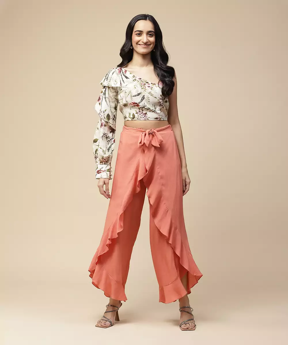 Oxidised Gold Garara Set With Velvet Dupatta Shawl