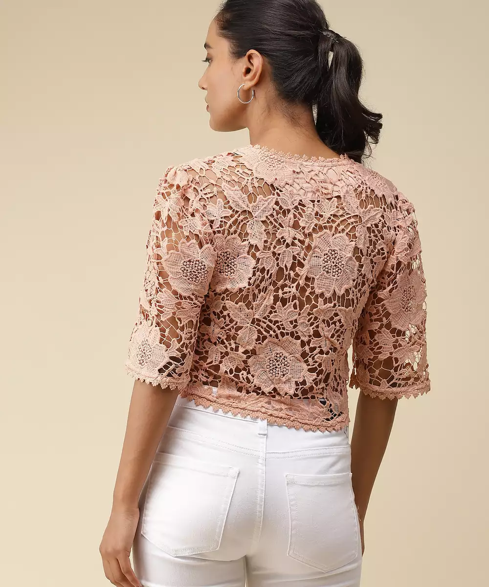 Pink Embroidered Mirror Work Georgette Yasir Kurta (Rani Pink)