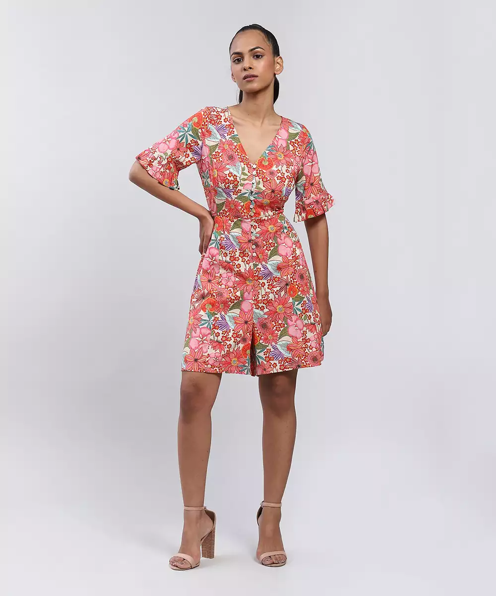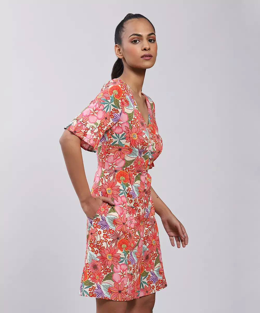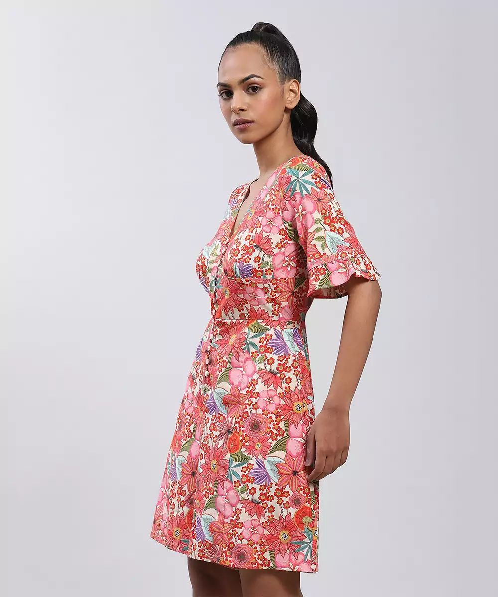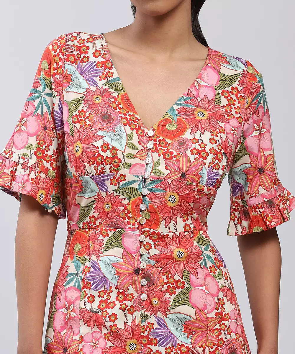 Pink Embroidered Mirror Work Georgette Yasir Kurta (Rani Pink)