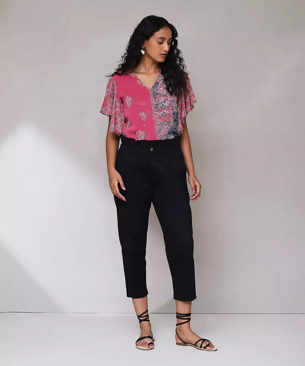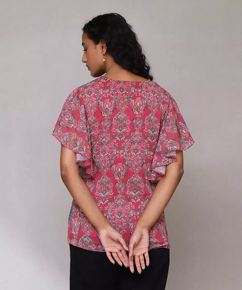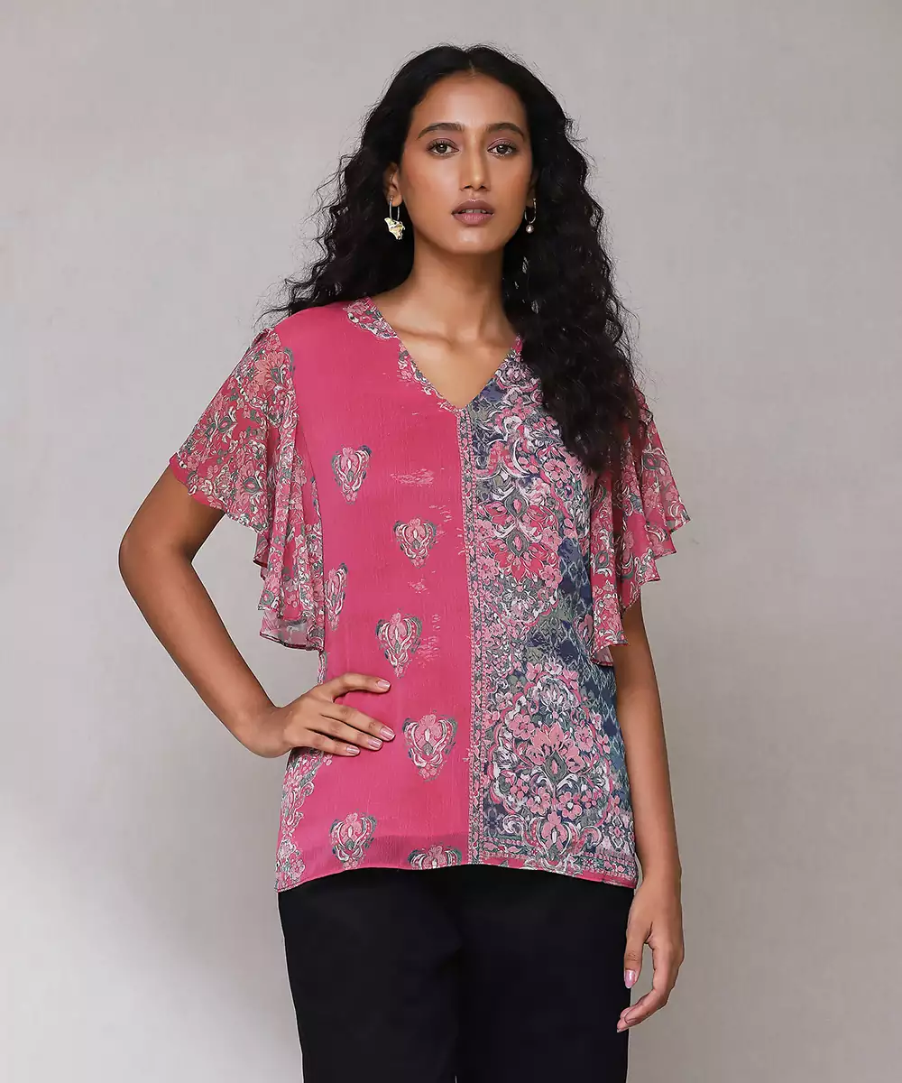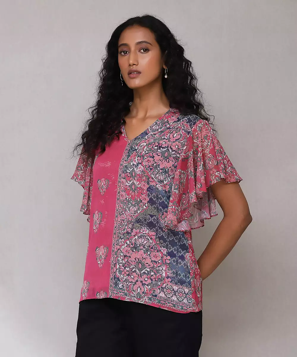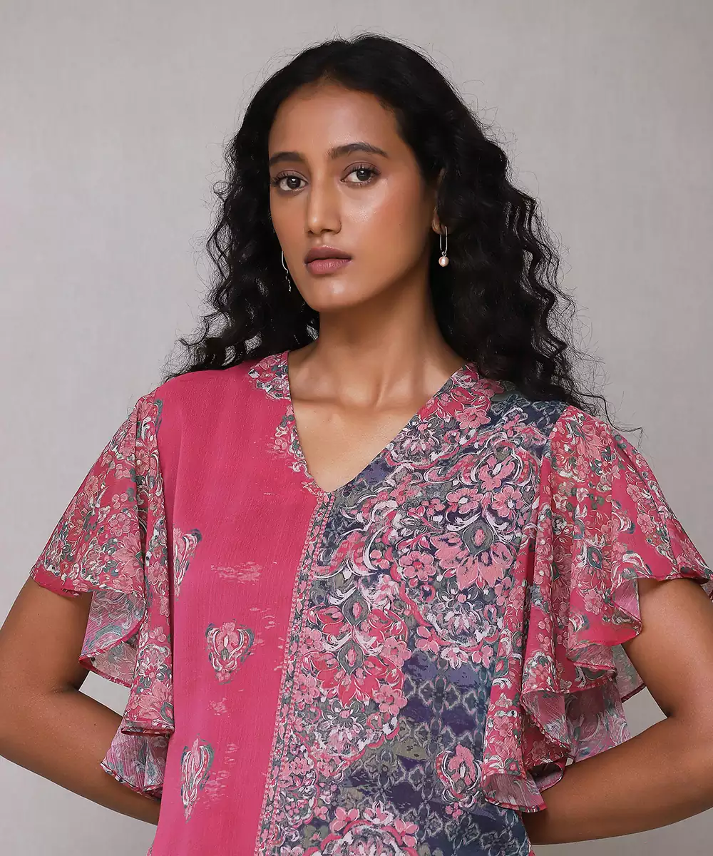 Pink Embroidered Mirror Work Georgette Yasir Kurta (Rani Pink)