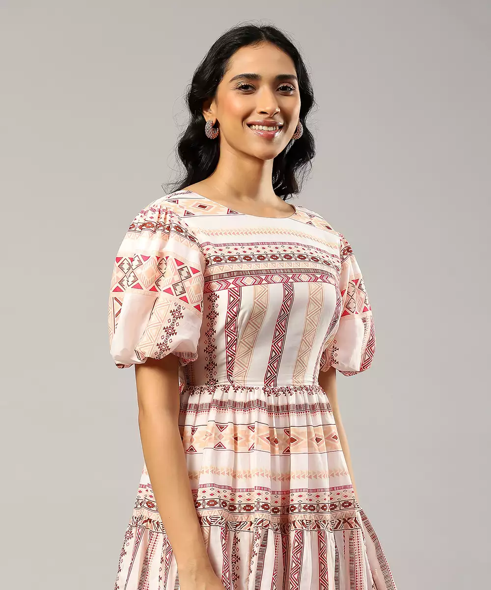 Featuring Pink Geometric Print Short Dress.