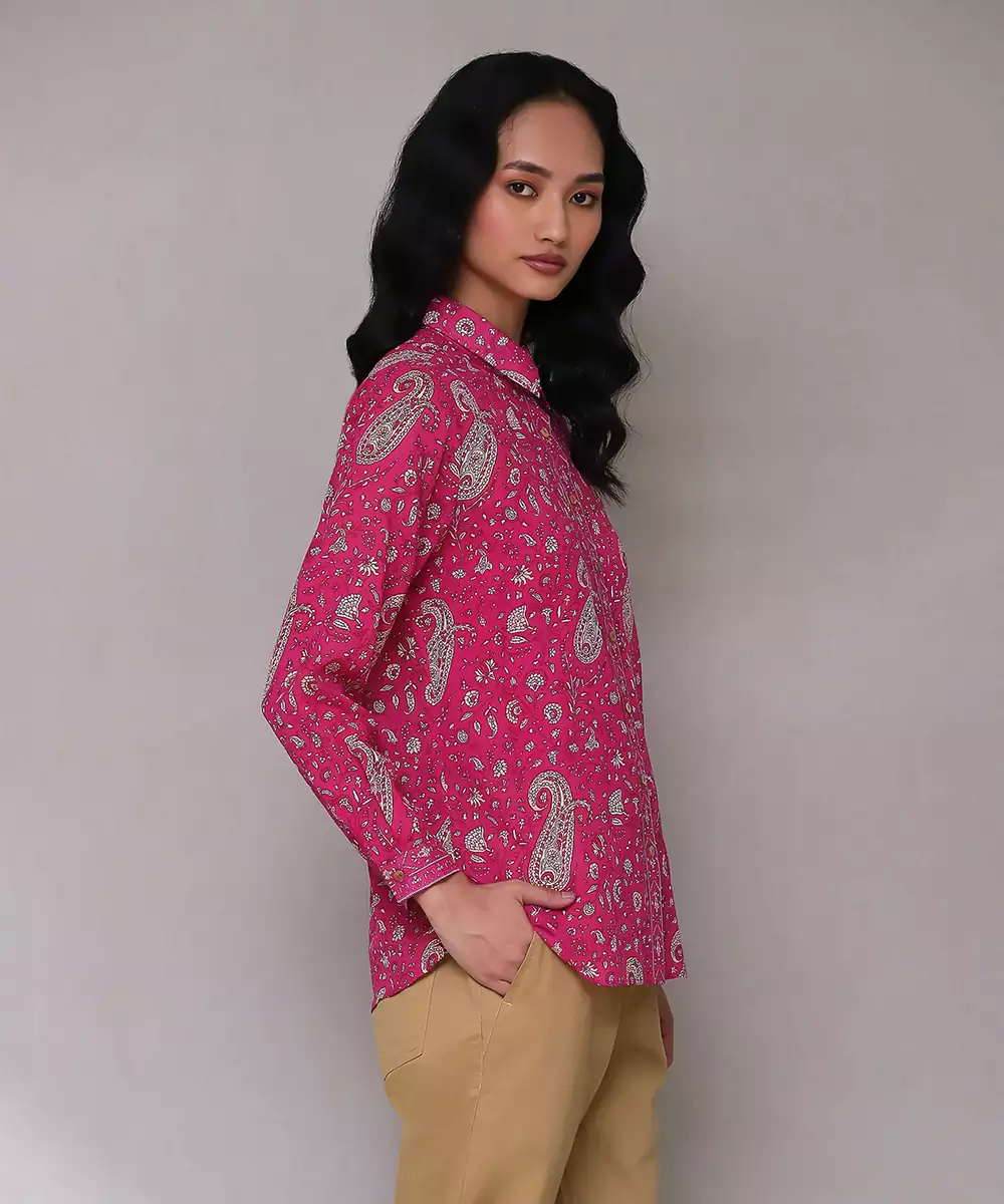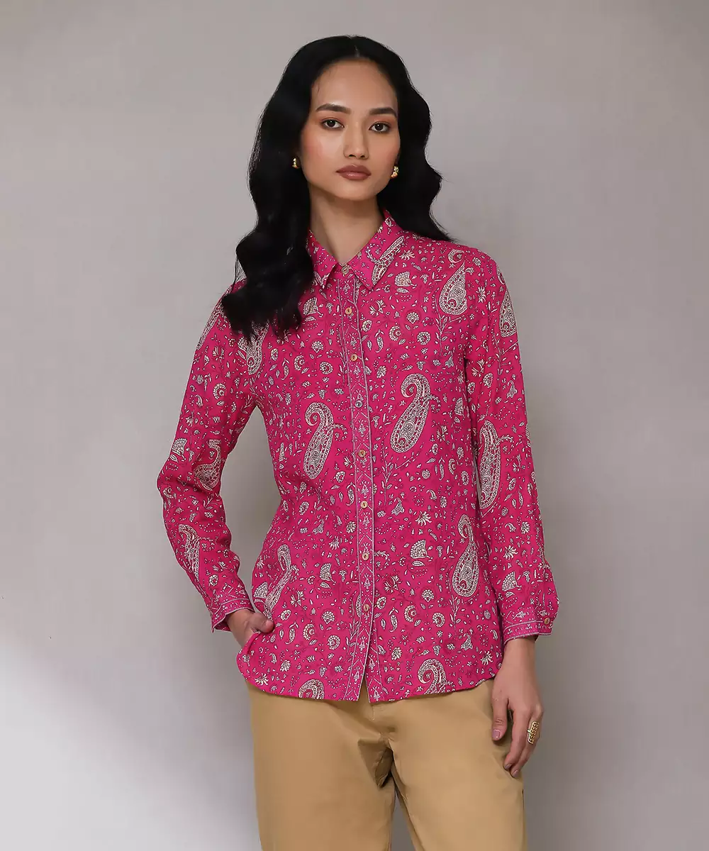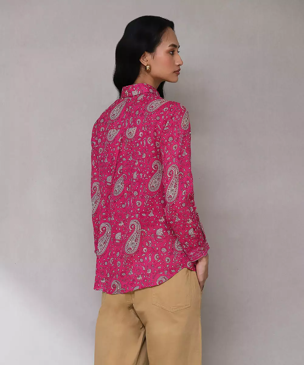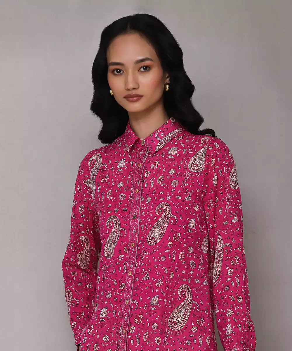 Pink Embroidered Mirror Work Georgette Yasir Kurta (Rani Pink)