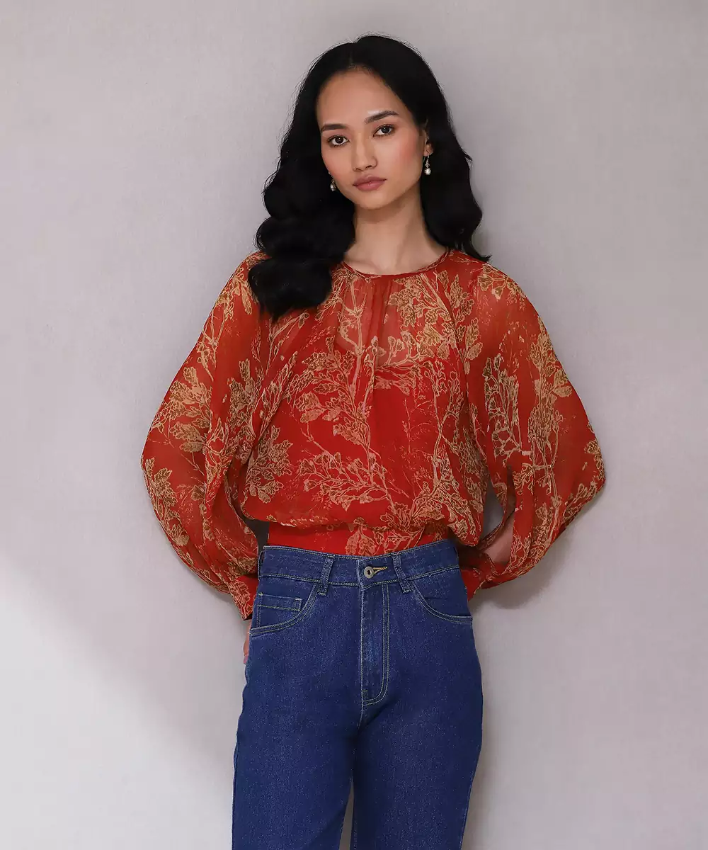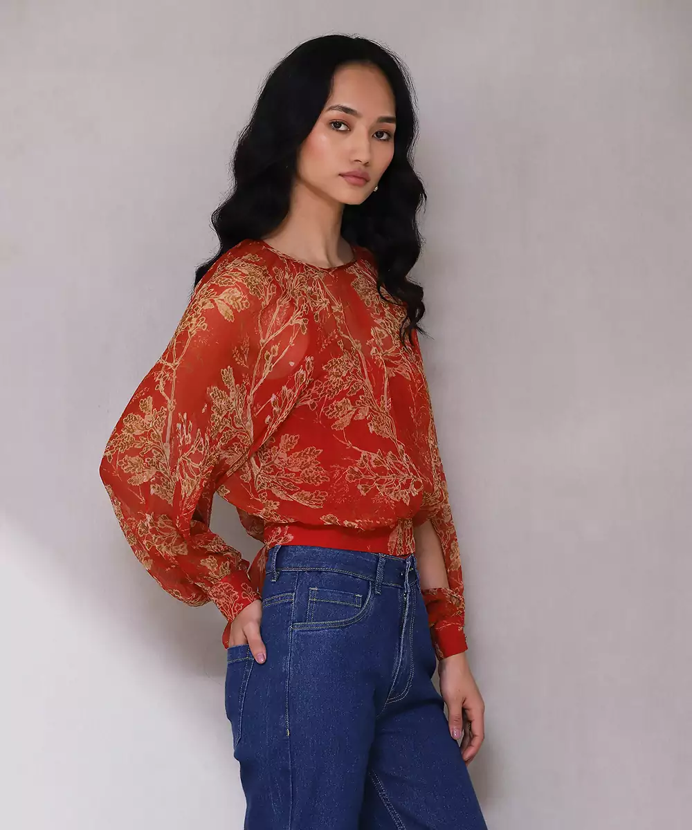 Peach Blouse With Peach And Navy Blue Ombre Saree