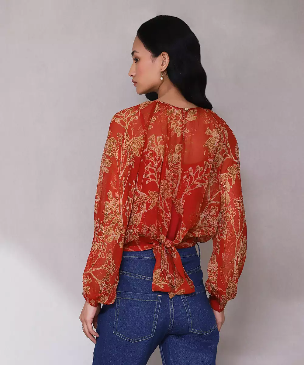 Pink Embroidered Mirror Work Georgette Yasir Kurta (Rani Pink)