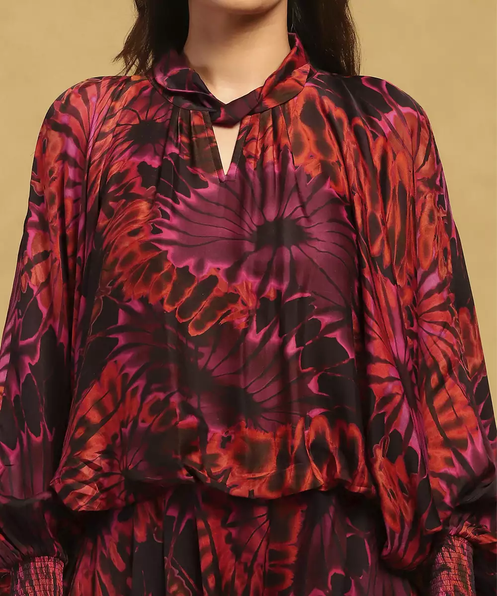 Red Hriday Top With Pant Co Ord Set Colour: Maroon Fabric: Satin Components : 1 Top / 1 Pants