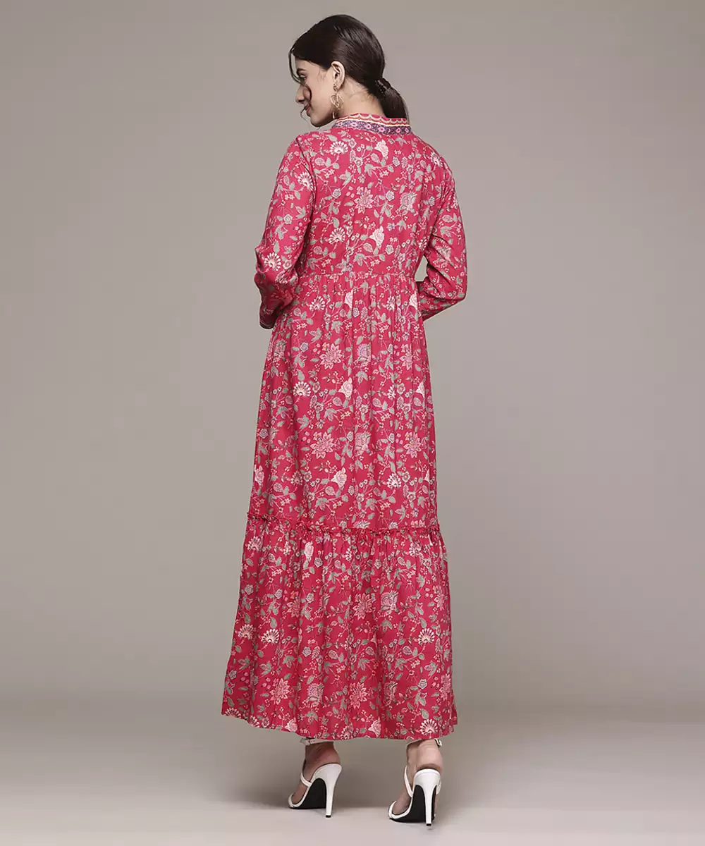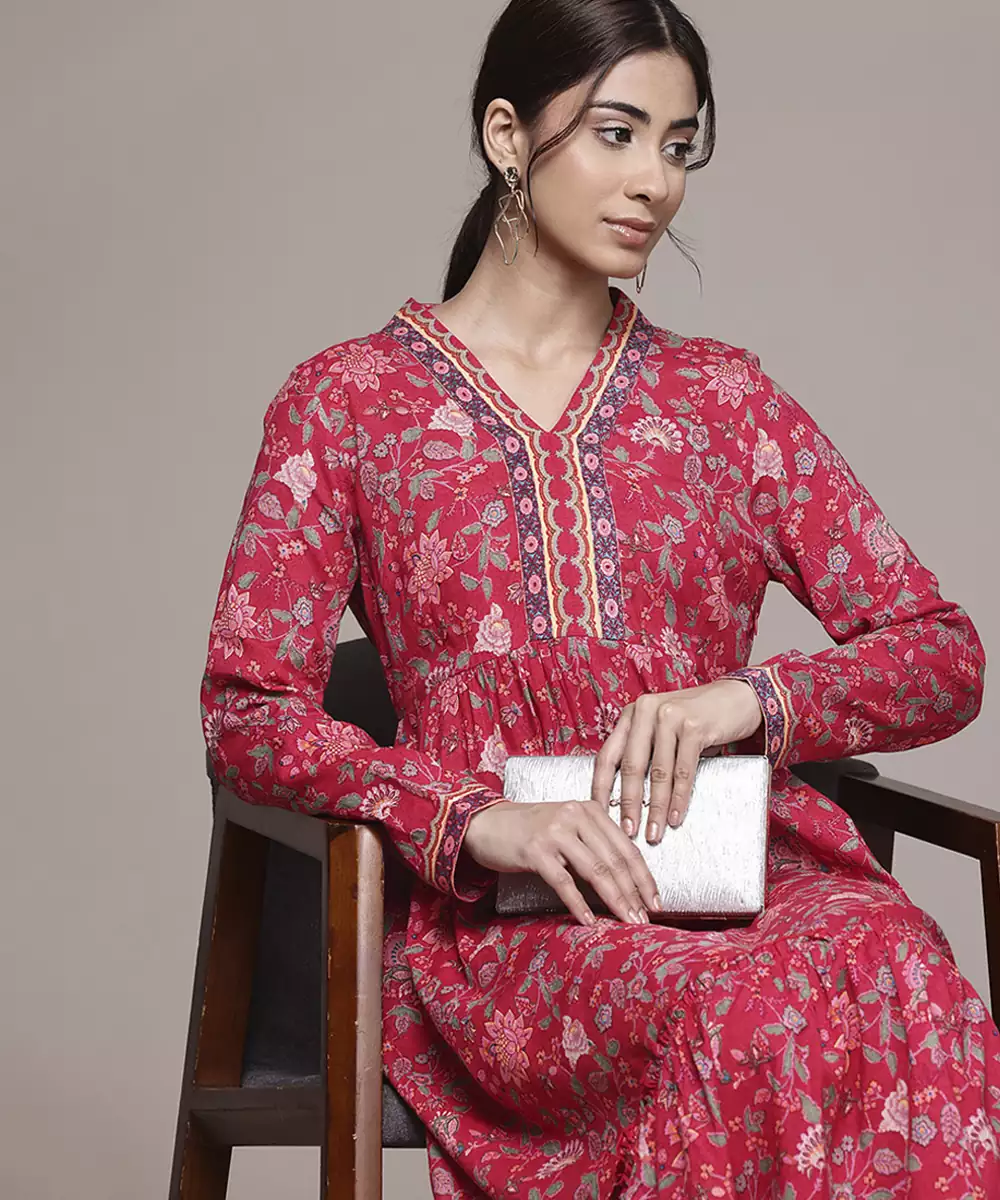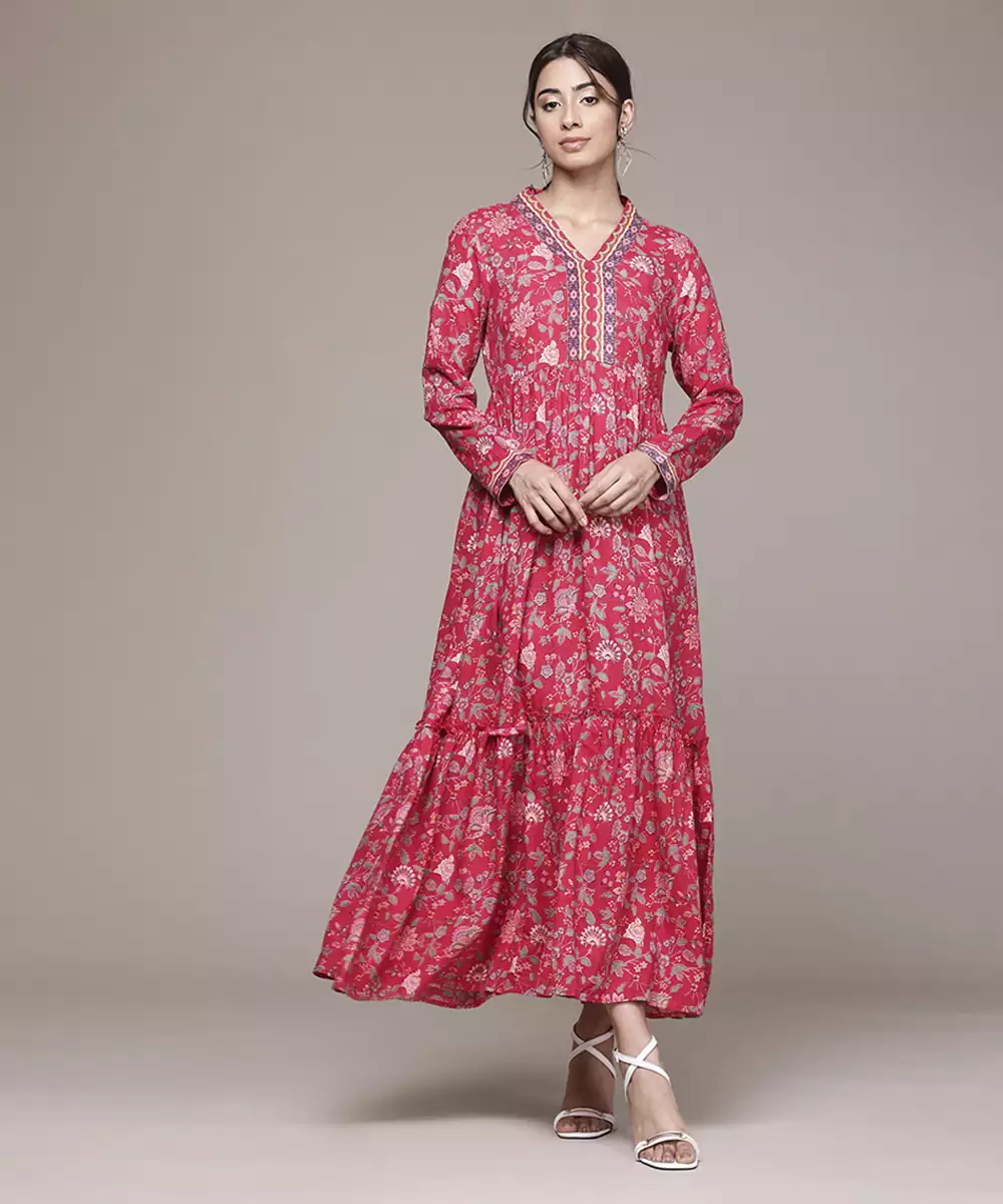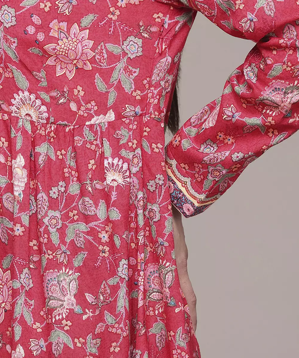 This Red Rayon Dress Features A Printed Pattern Design With Full Sleeves And A Comfortable Stitched Fit. The Soft And Breathable Fabric Ensures Ease Of Wear. Its Vibrant Print Makes It Suitable For Casual Outings, Festive Occasions, Day Events, And Social Gatherings.