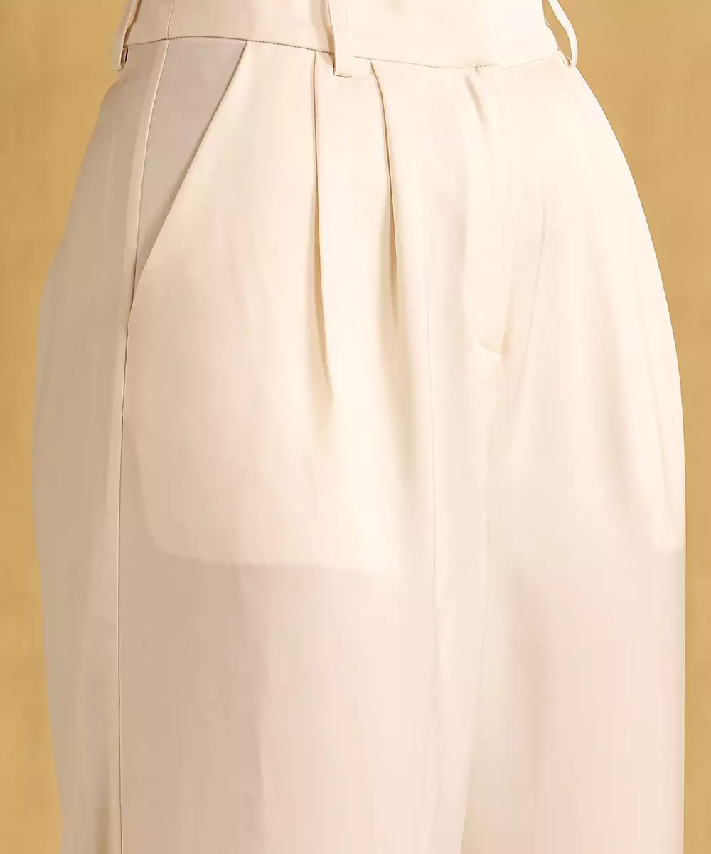 Featuring Beige Wide Leg Trousers. Colour : Beige Fabric :Polyester Components : 1 (Pant) Work : Plain