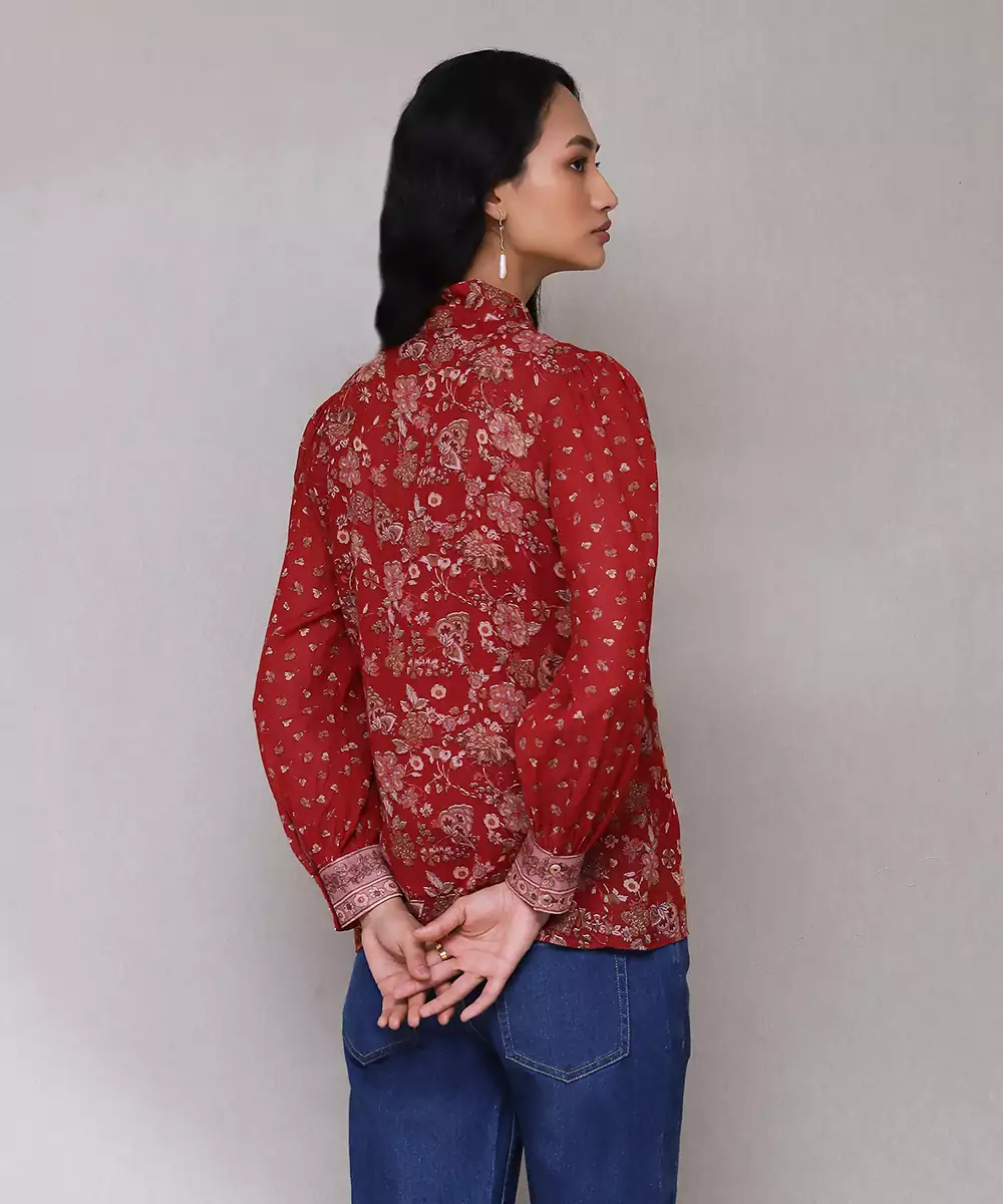 Cream Pure Linen Embroidered Thread Deer Shirt