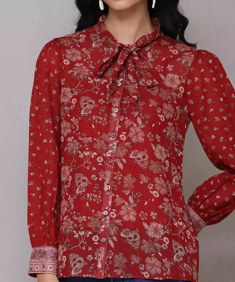 Pink Embroidered Mirror Work Georgette Yasir Kurta (Rani Pink)