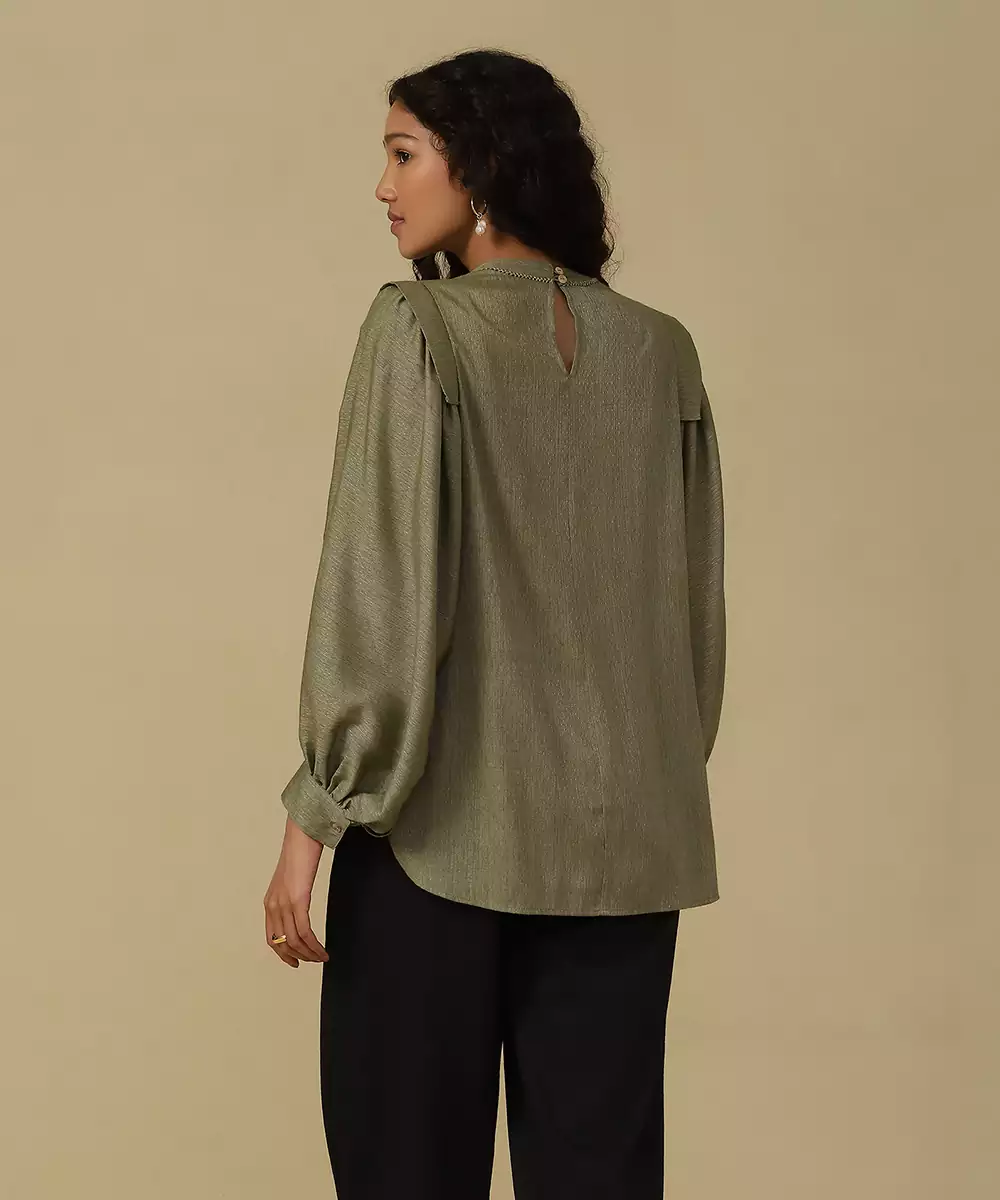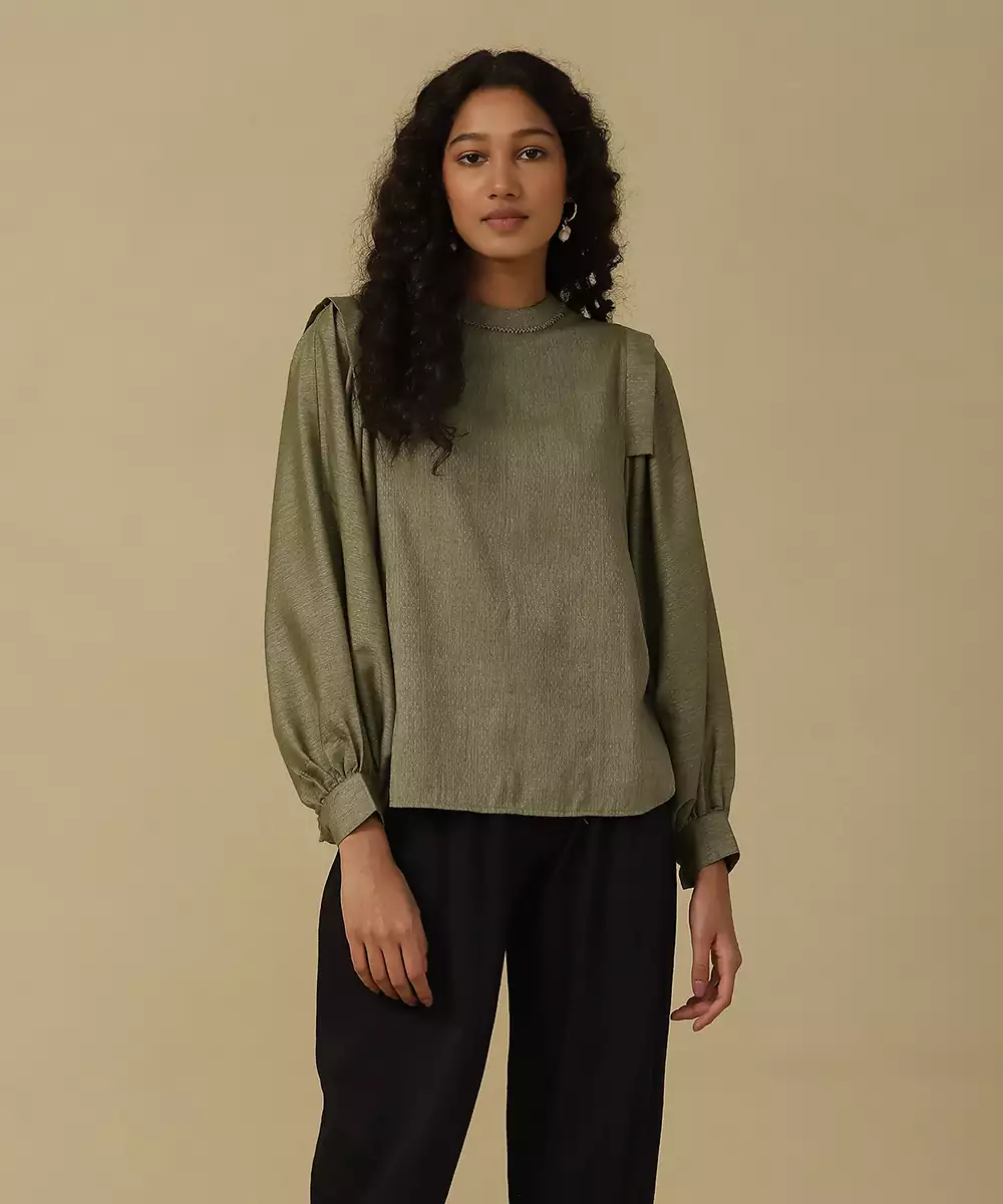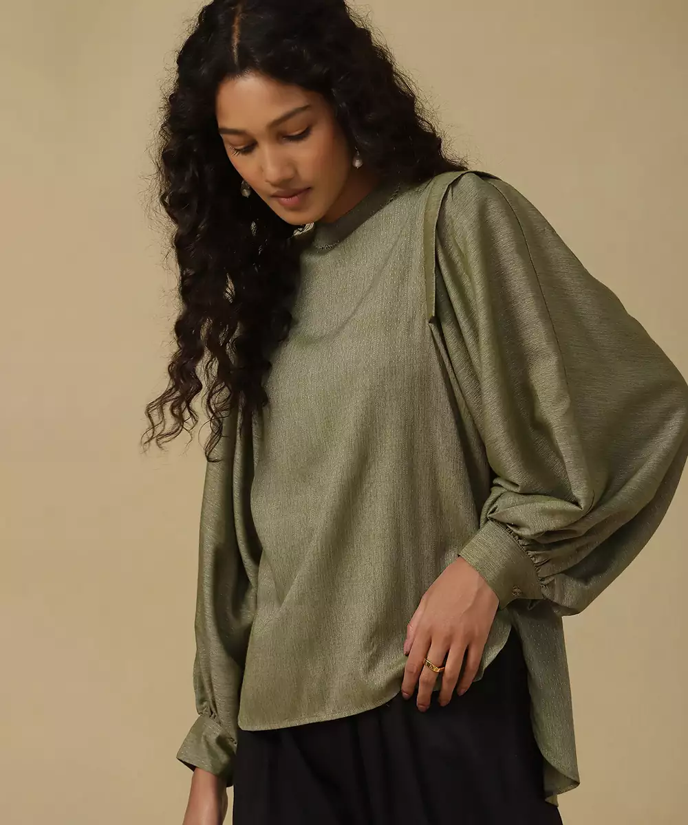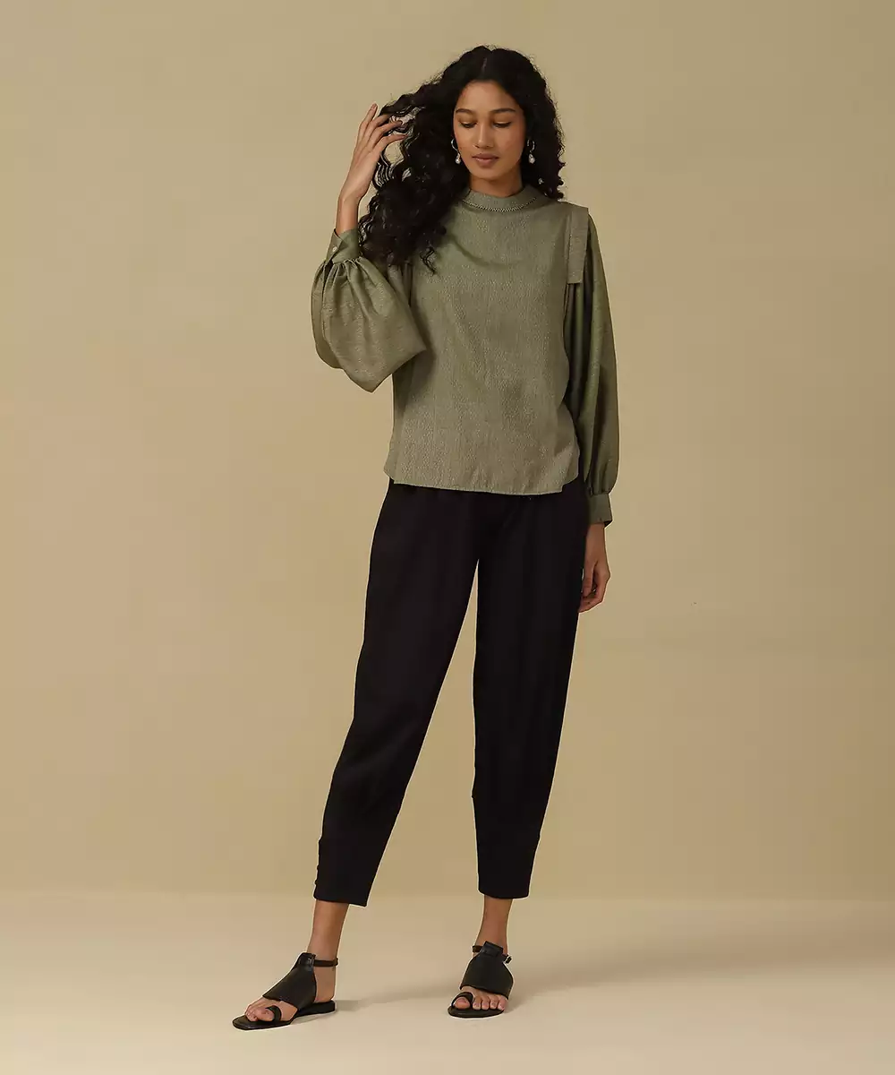 Olive Green Embroidered Jute Jacket With Kurta & Pant