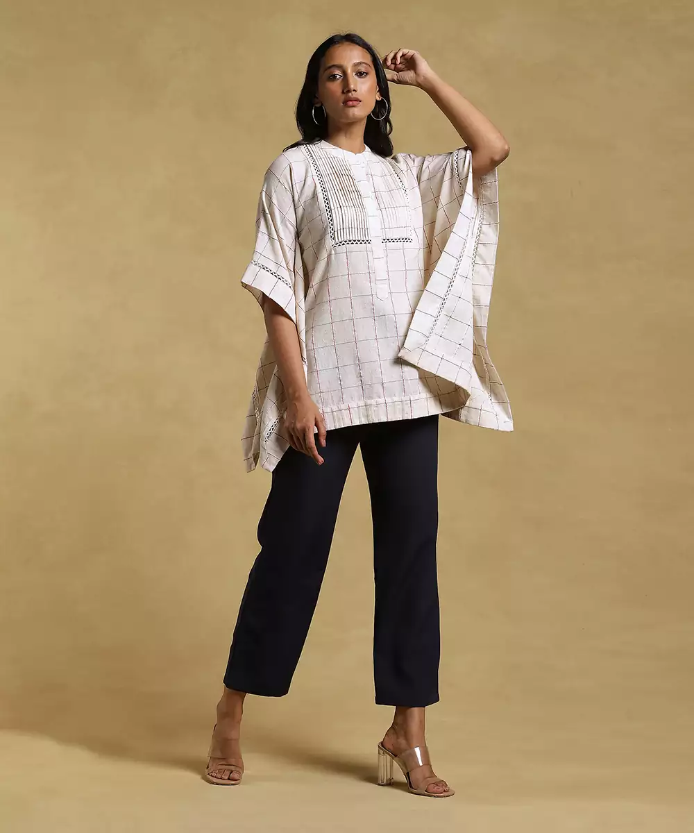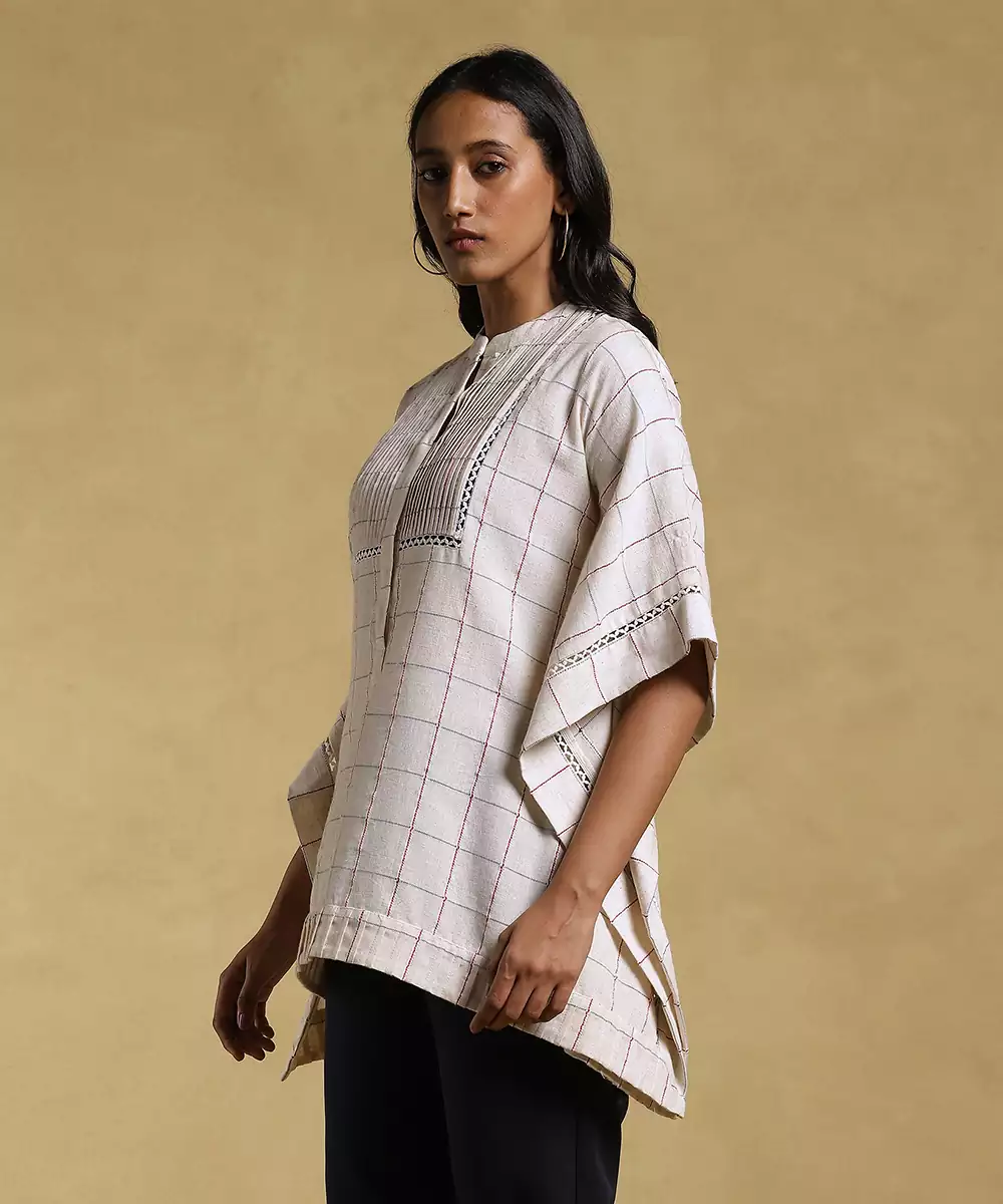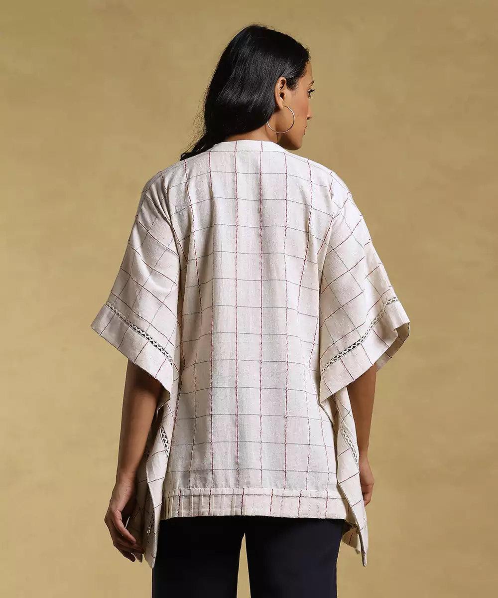 Cream Pure Linen Embroidered Thread Deer Shirt