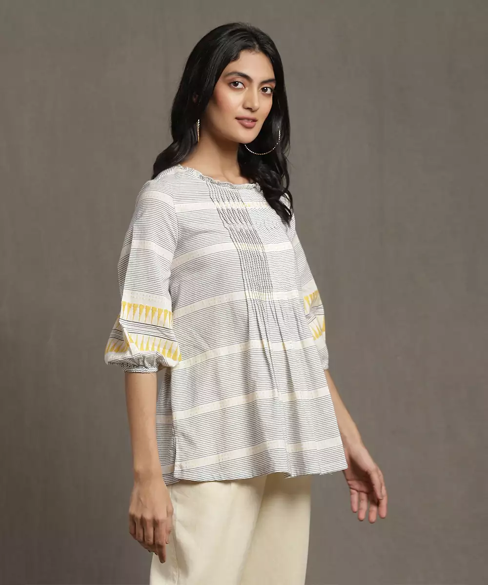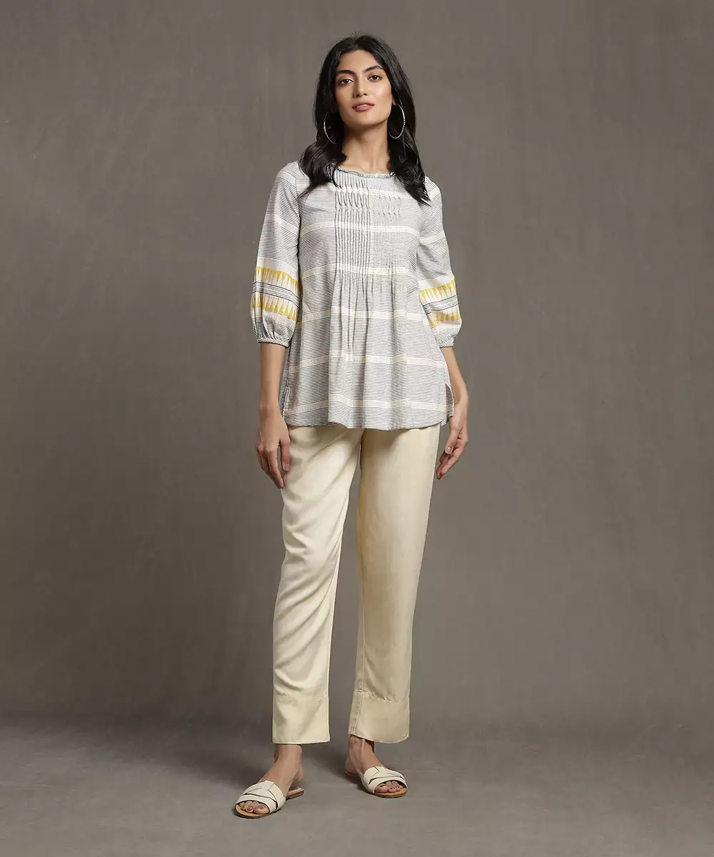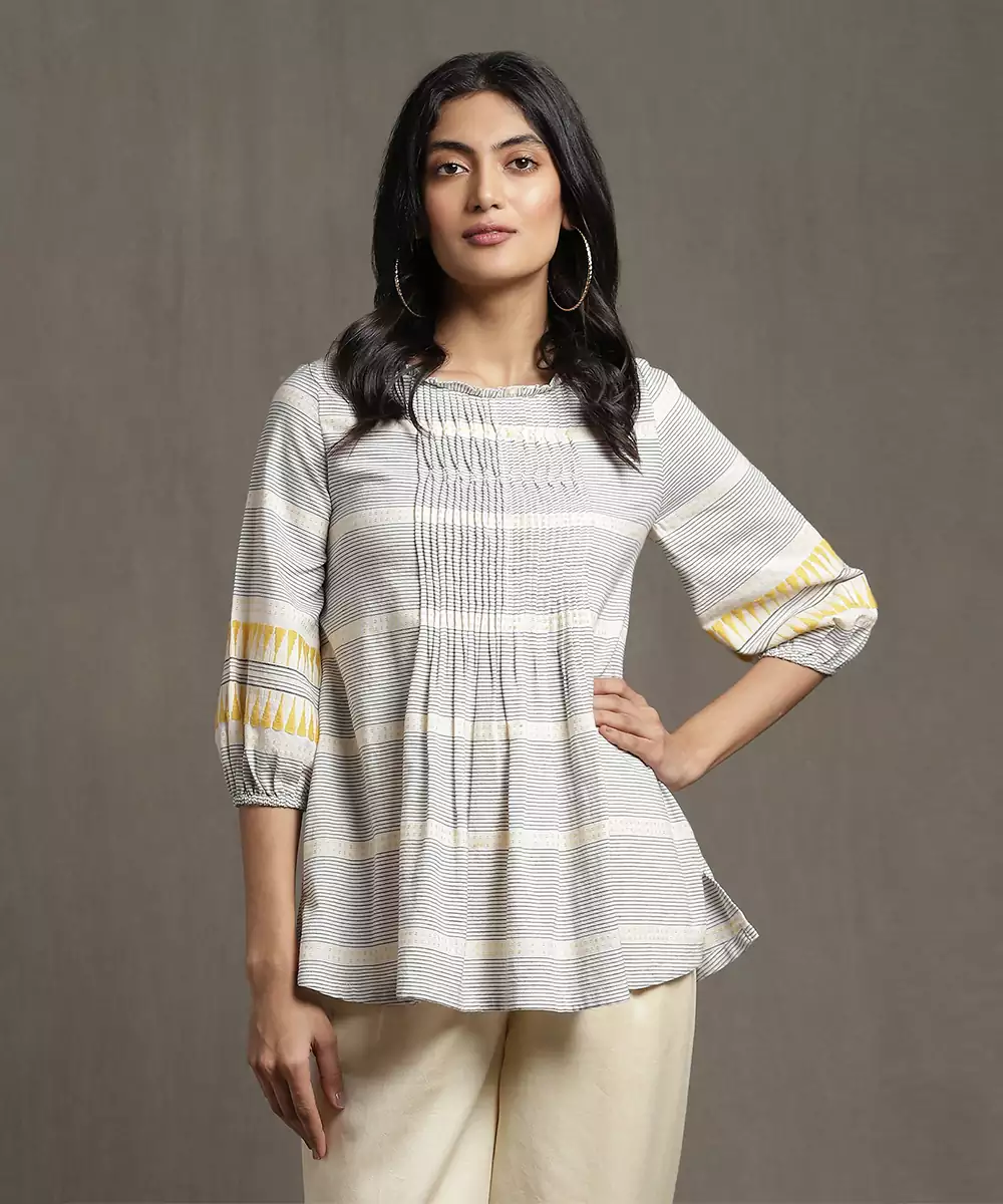 Featuring White Kurti With Pintuck Detail. Colour : White Fabric :Cotton Components : 1 (Kurta) Work : Plain