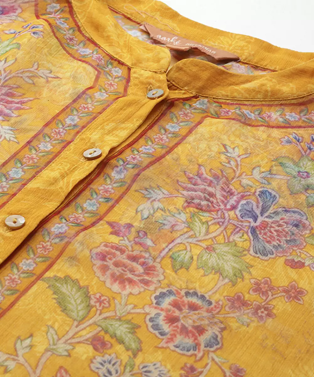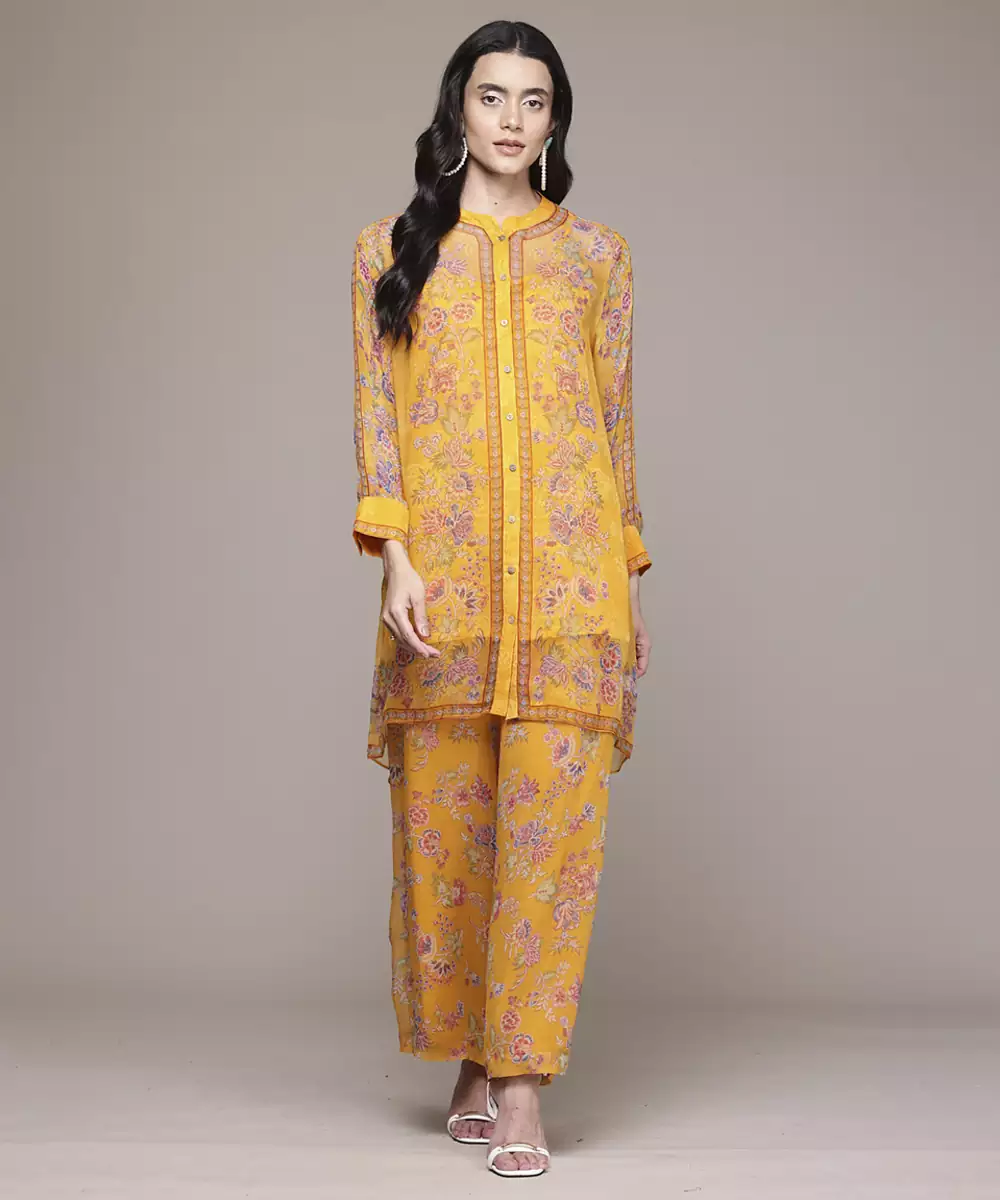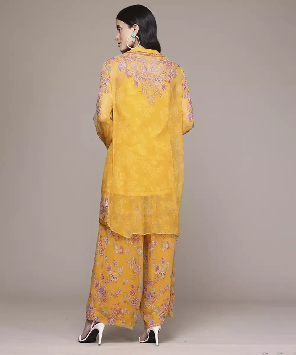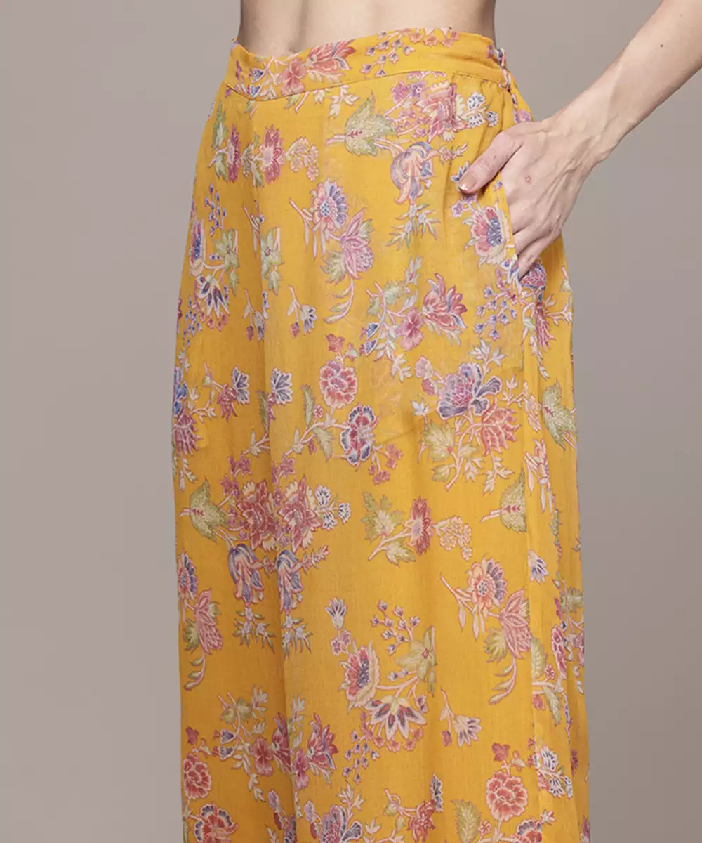 This Yellow Chiffon Kurta Set Features Printed Work Across A Lightweight And Flowy Fabric. The Chiffon Material Ensures Comfort And Breathability, Making It Suitable For Festive Occasions And Daytime Events. The Set Includes A Kurta, Matching Bottoms, And A Dupatta For Coordinated Styling. Full Sleeves Provide A Balanced And Structured Silhouette. The Printed Design Adds Visual Detail While Maintaining A Clean Appearance. The Stitched Construction Ensures A Ready To Wear Form. The Yellow Shade Enhances Styling Versatility For Traditional Occasions.