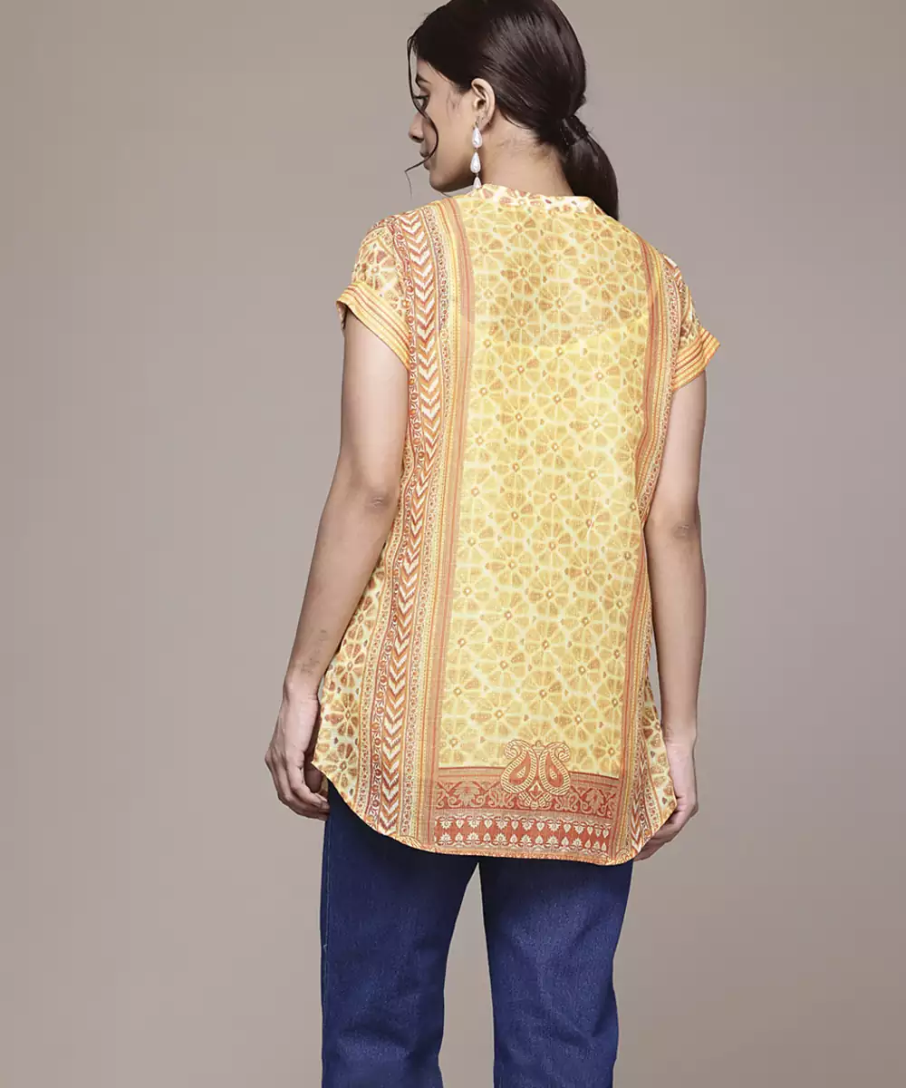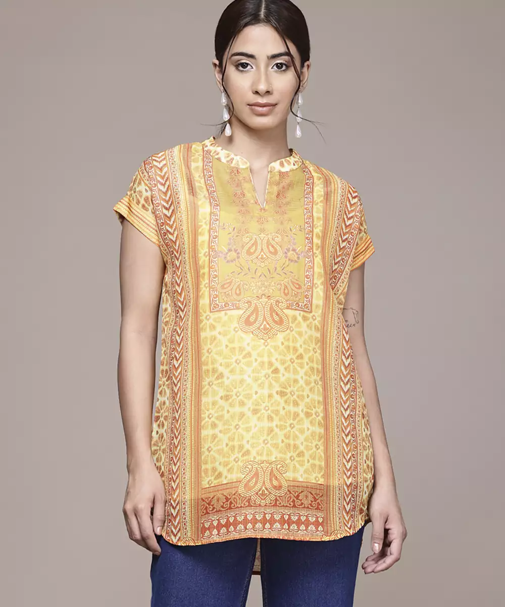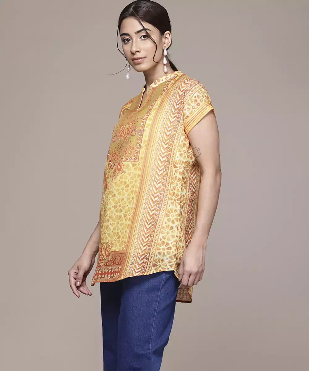 Yellow Cotton Top With Printed Work Design