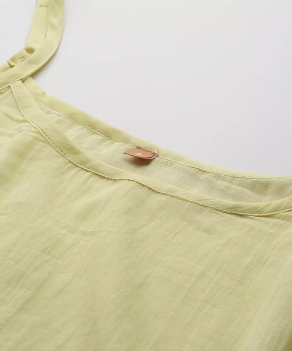 This Yellow Cotton Top Features Printed Work That Adds Visual Detail To A Soft And Breathable Fabric. The Cotton Material Ensures Comfort For All Day Wear, Making It Suitable For Casual Outings And Everyday Use. The Half Sleeves Provide A Balanced And Relaxed Fit. The Printed Design Enhances The Overall Structure While Maintaining A Clean Appearance. It Comes With A Matching Camisole For Added Coverage And Layering. The Stitched Construction Ensures A Ready To Wear Form. The Yellow Color Brings Brightness And Pairs Well With Various Bottom Styles For Versatile Use.