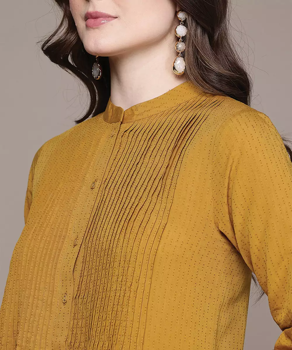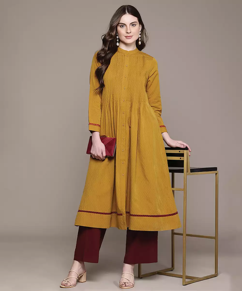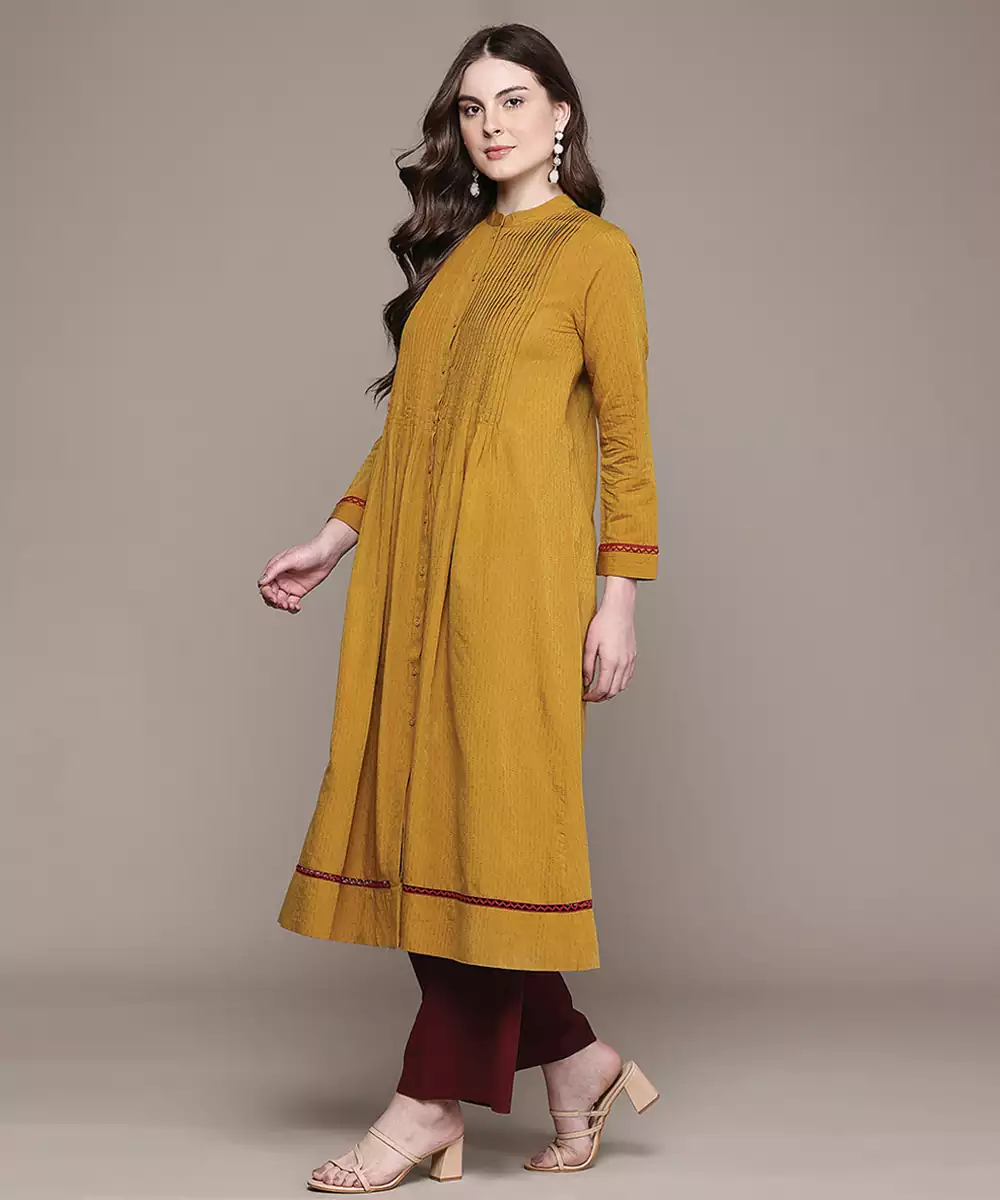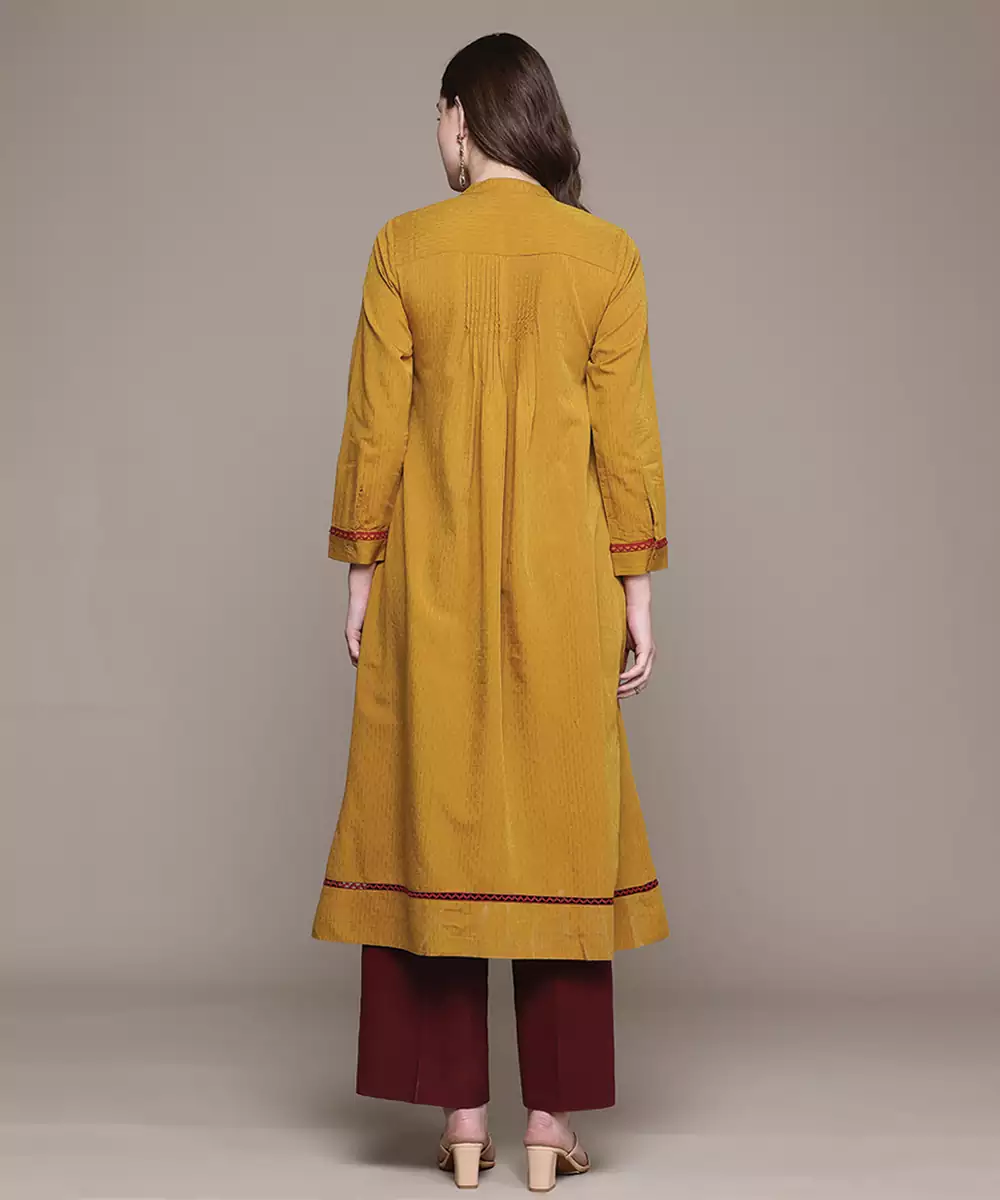 This Yellow Woven Cotton Blend Kurta Features A Breathable Texture With Subtle Woven Detailing. The Lightweight Fabric Ensures Comfort, Making It Ideal For Daily Wear. Its Bright Tone Adds Freshness, While The Minimal Design Offers A Versatile And Stylish Option For Casual And Semi Formal Occasions.