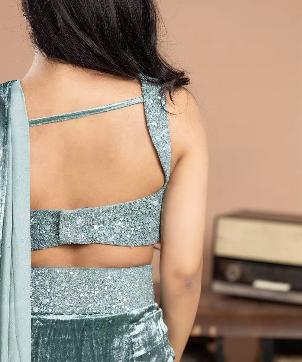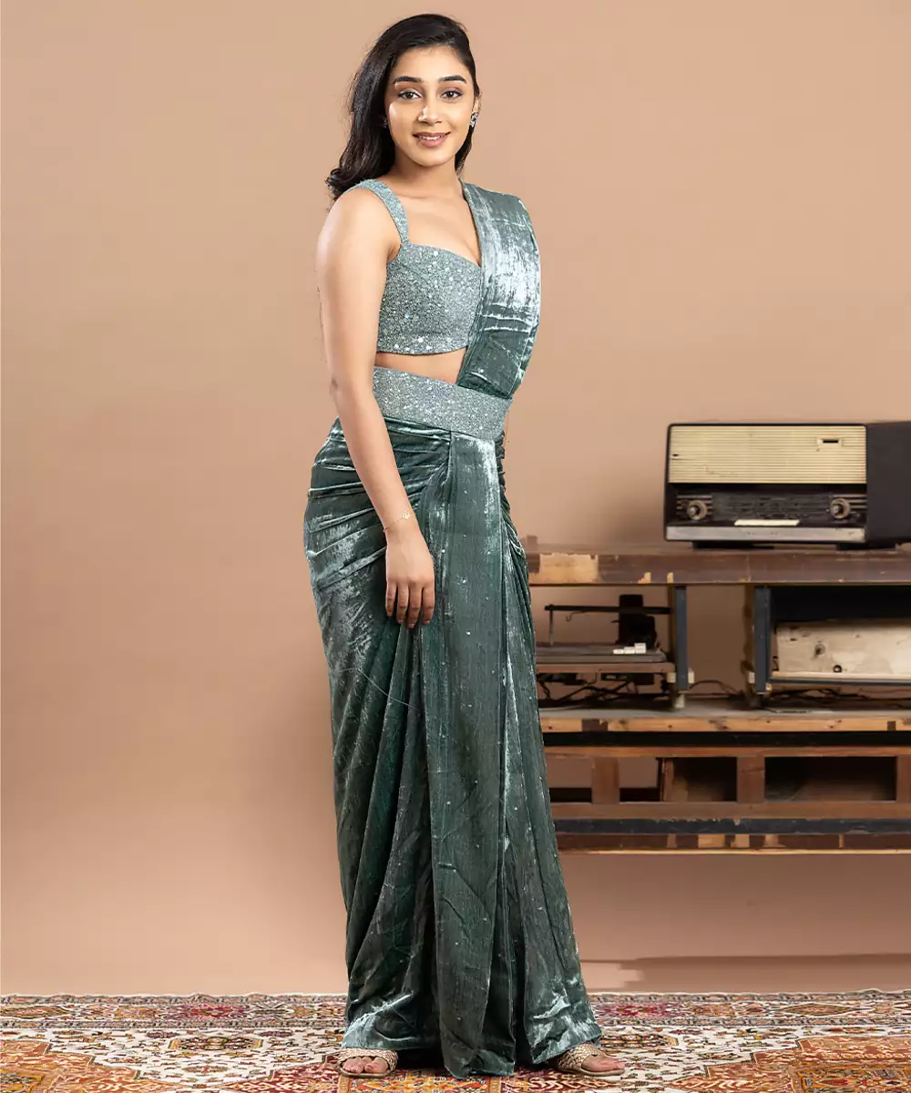 Blue Embroidered Velvet Saree Crafted For Royal Elegance And Festive Charm. Made From Rich Velvet, It Features Intricate Embroidery That Adds Depth And Sophistication. Perfect For Weddings, Receptions, And Special Occasions, This Saree Offers A Graceful Drape, Timeless Beauty, And A Majestic Traditional Appeal.