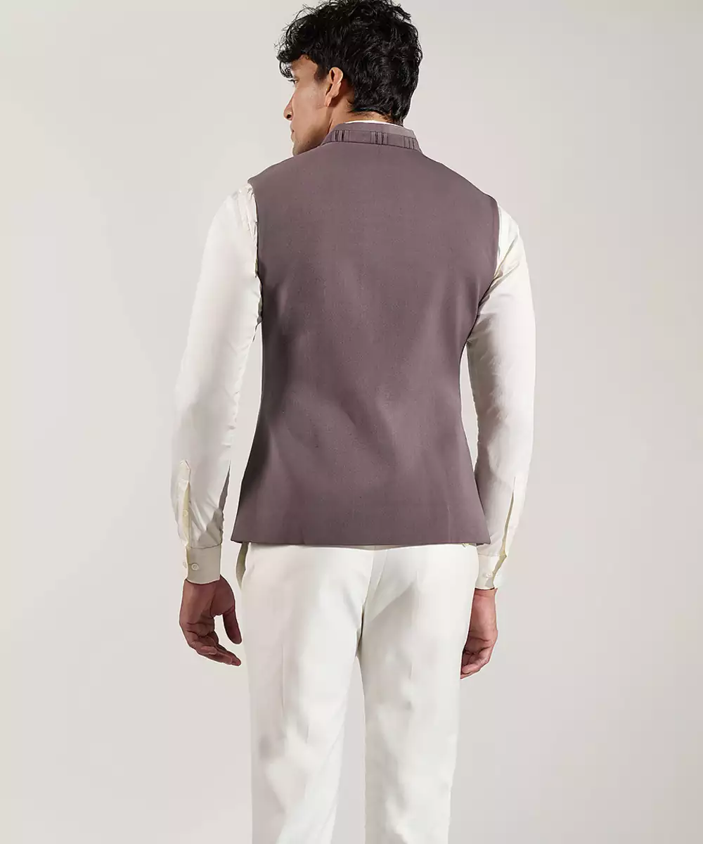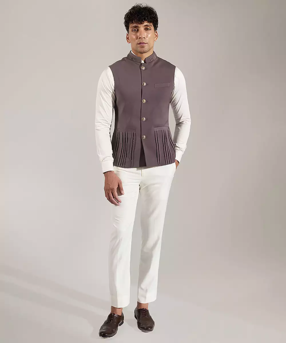 This Grey Plain Velvet Nehru Jacket Exudes Understated Elegance And Timeless Sophistication. Crafted From Rich, Plush Velvet, It Offers A Smooth Texture And Structured Silhouette. Its Minimalist Design Makes It Perfect For Pairing With Kurtas Or Shirts, Adding A Refined, Polished Touch To Festive Occasions Or Formal Gatherings.